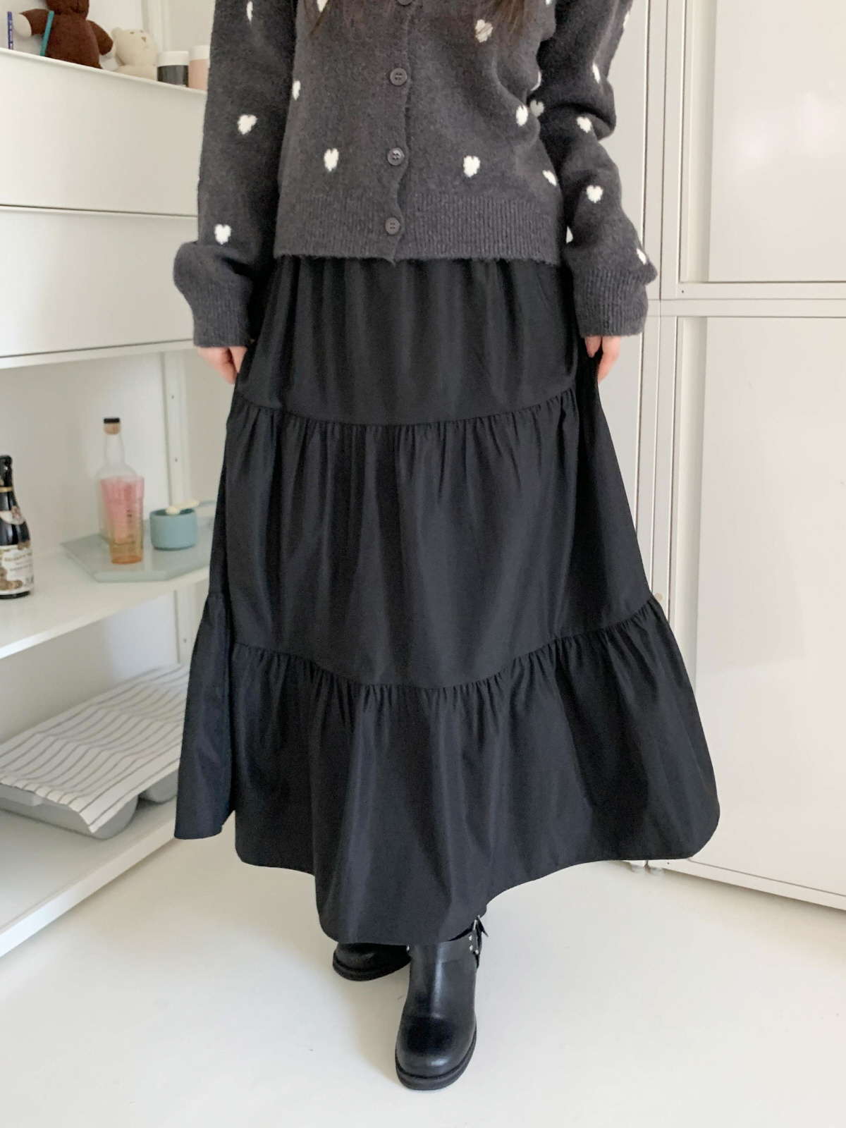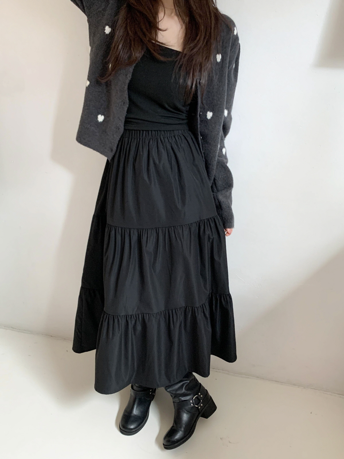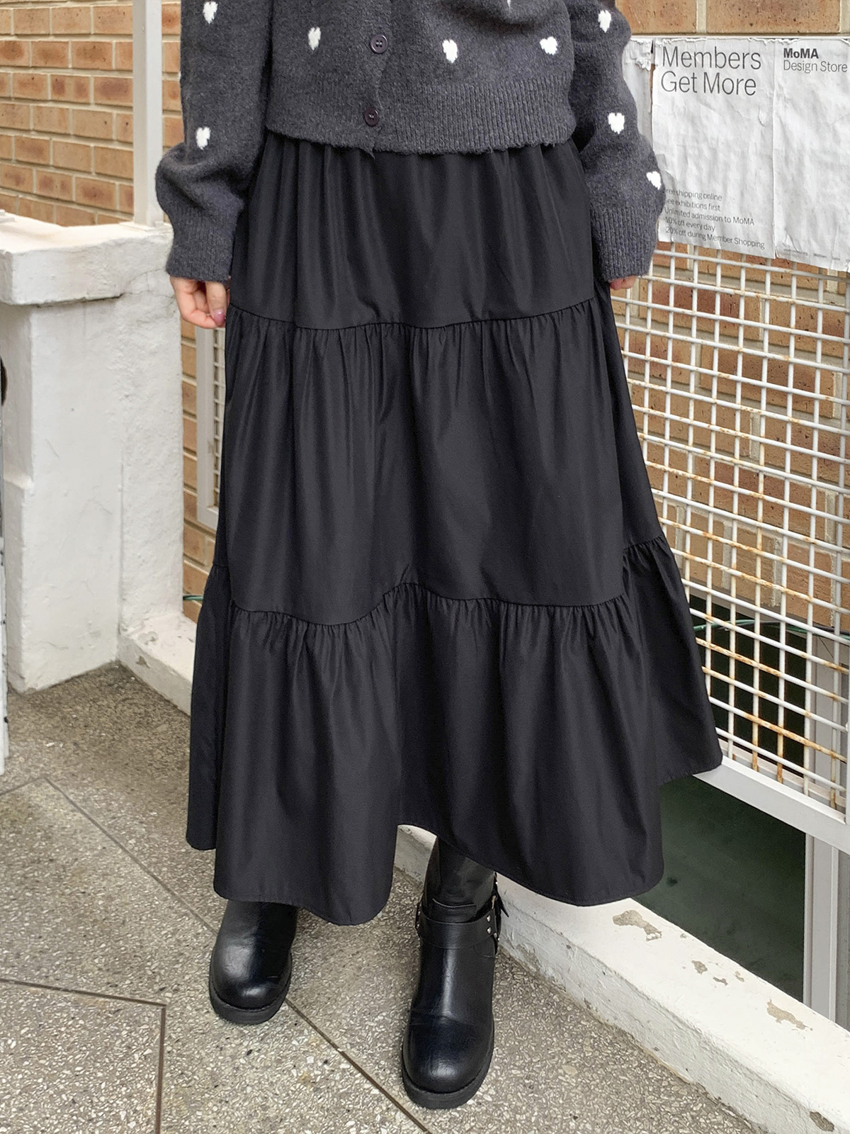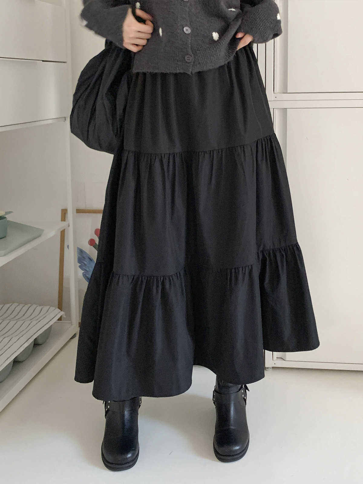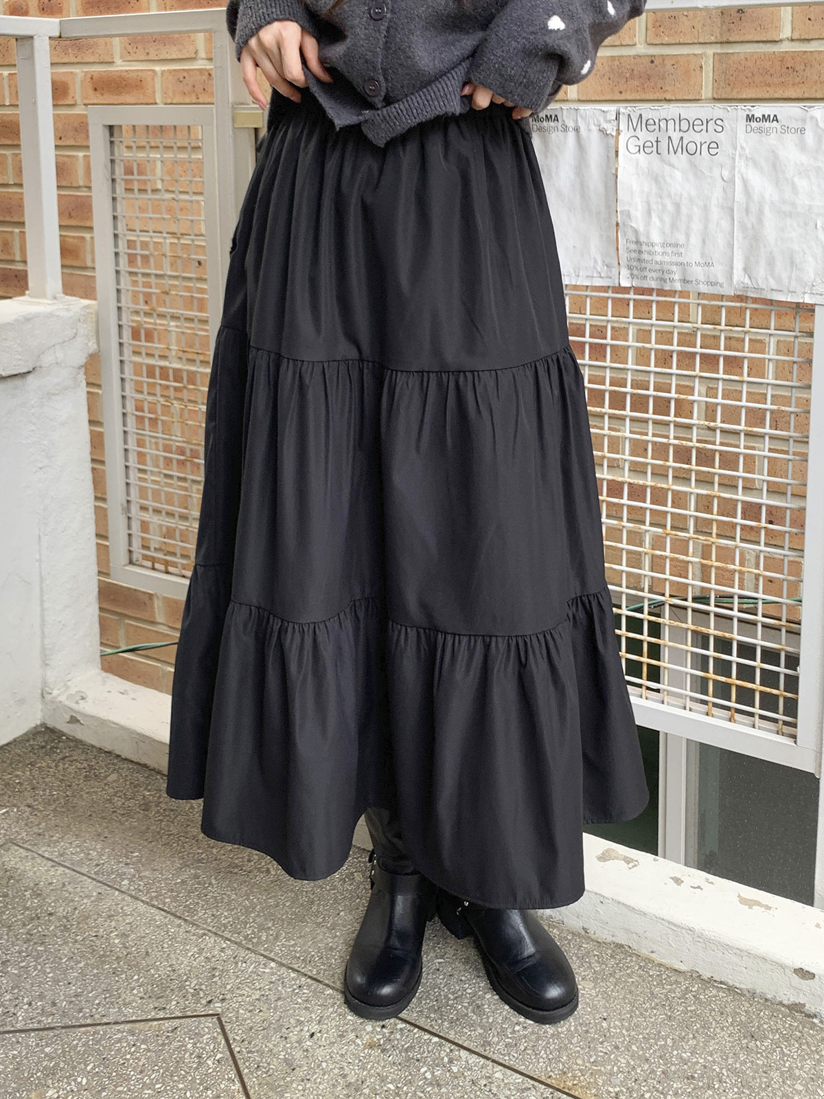 귀여운 캉캉 디자인으로 풍성한 볼륨감을 살린 플레어 롱 스커트