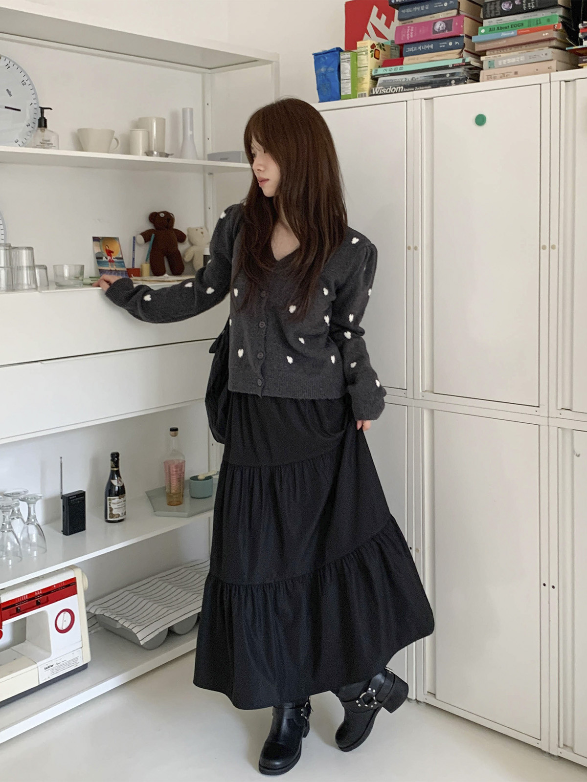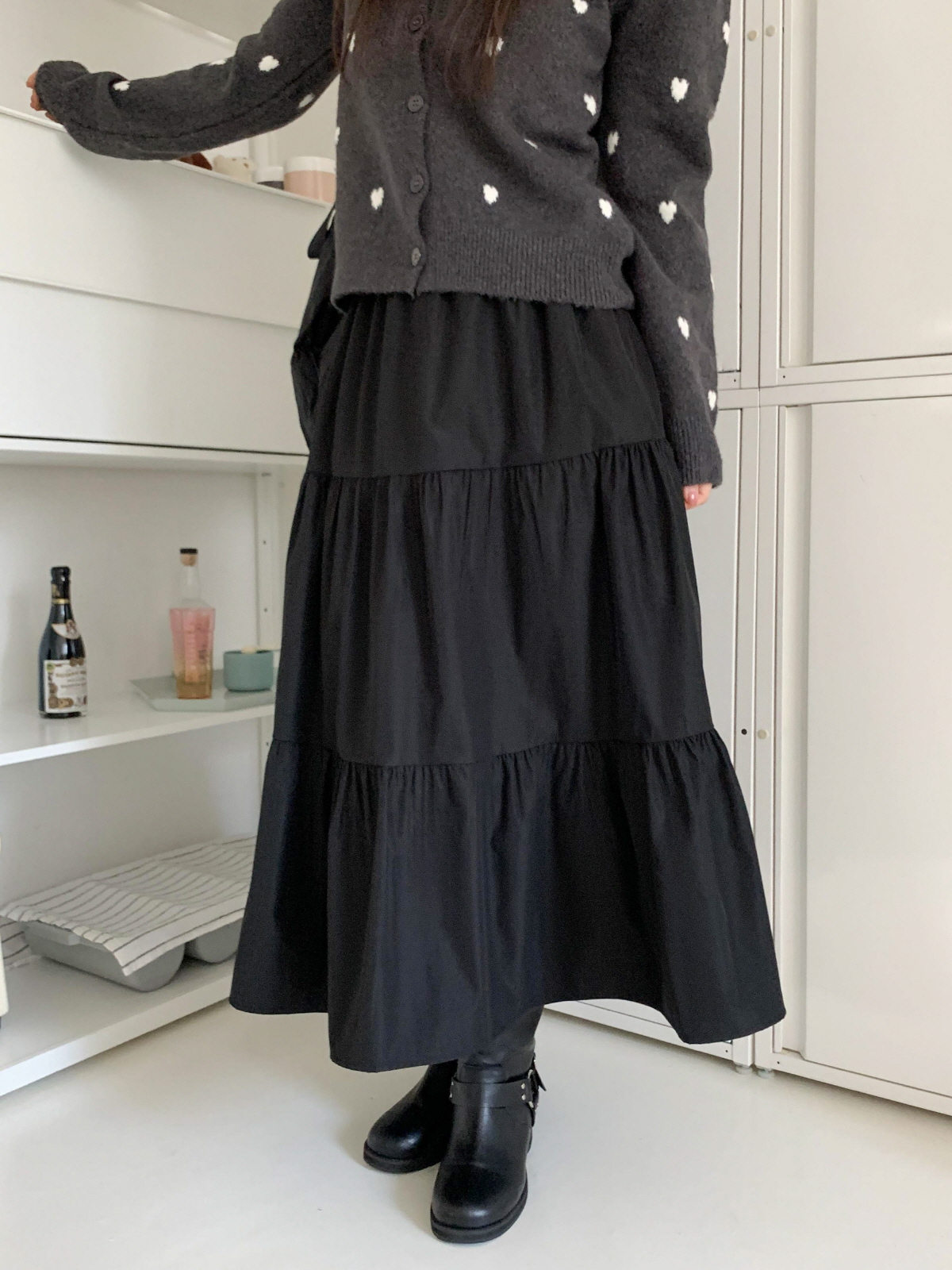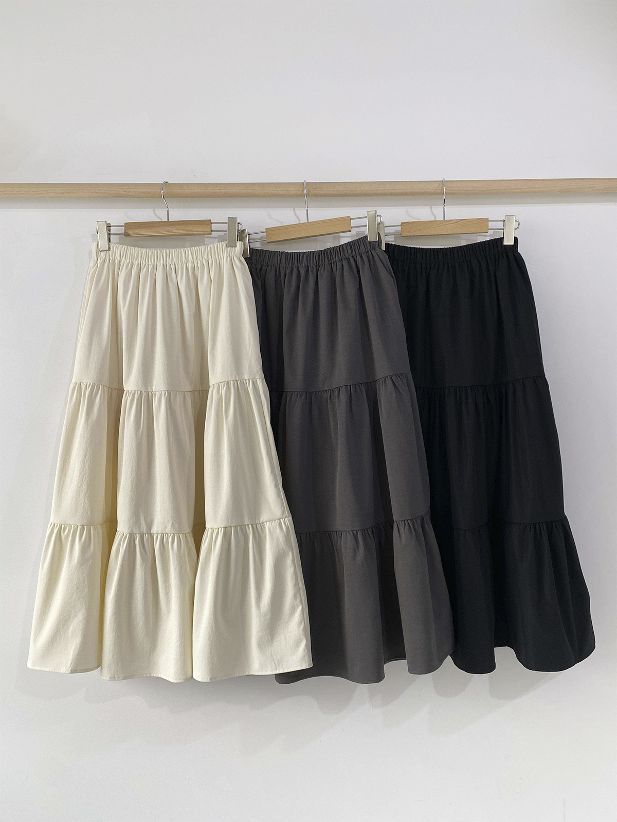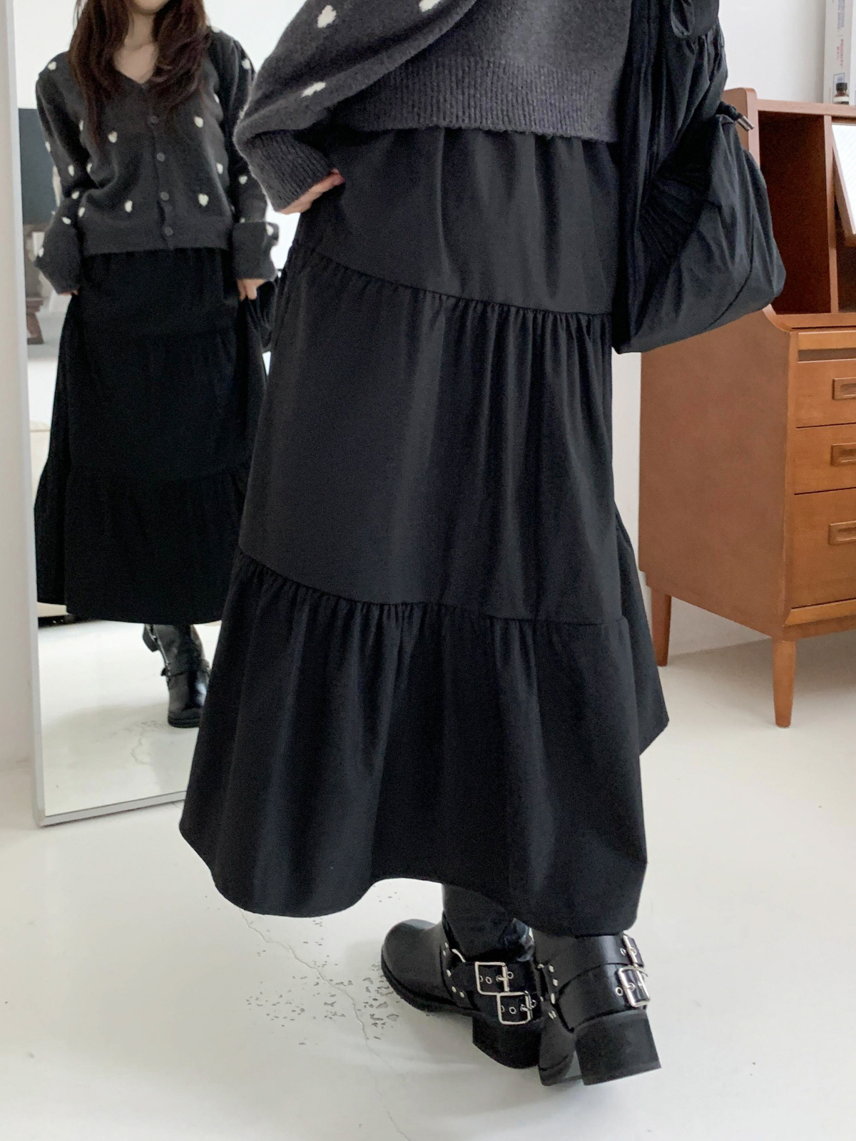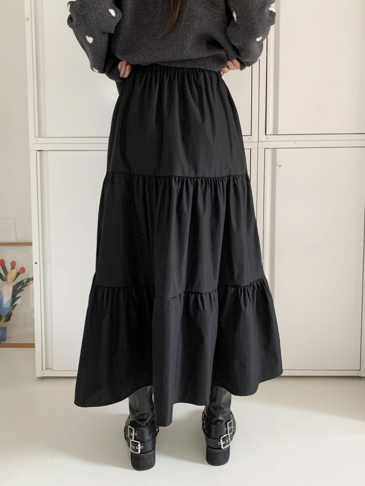 귀여운 캉캉 디자인으로 풍성한 볼륨감을 살린 플레어 롱 스커트