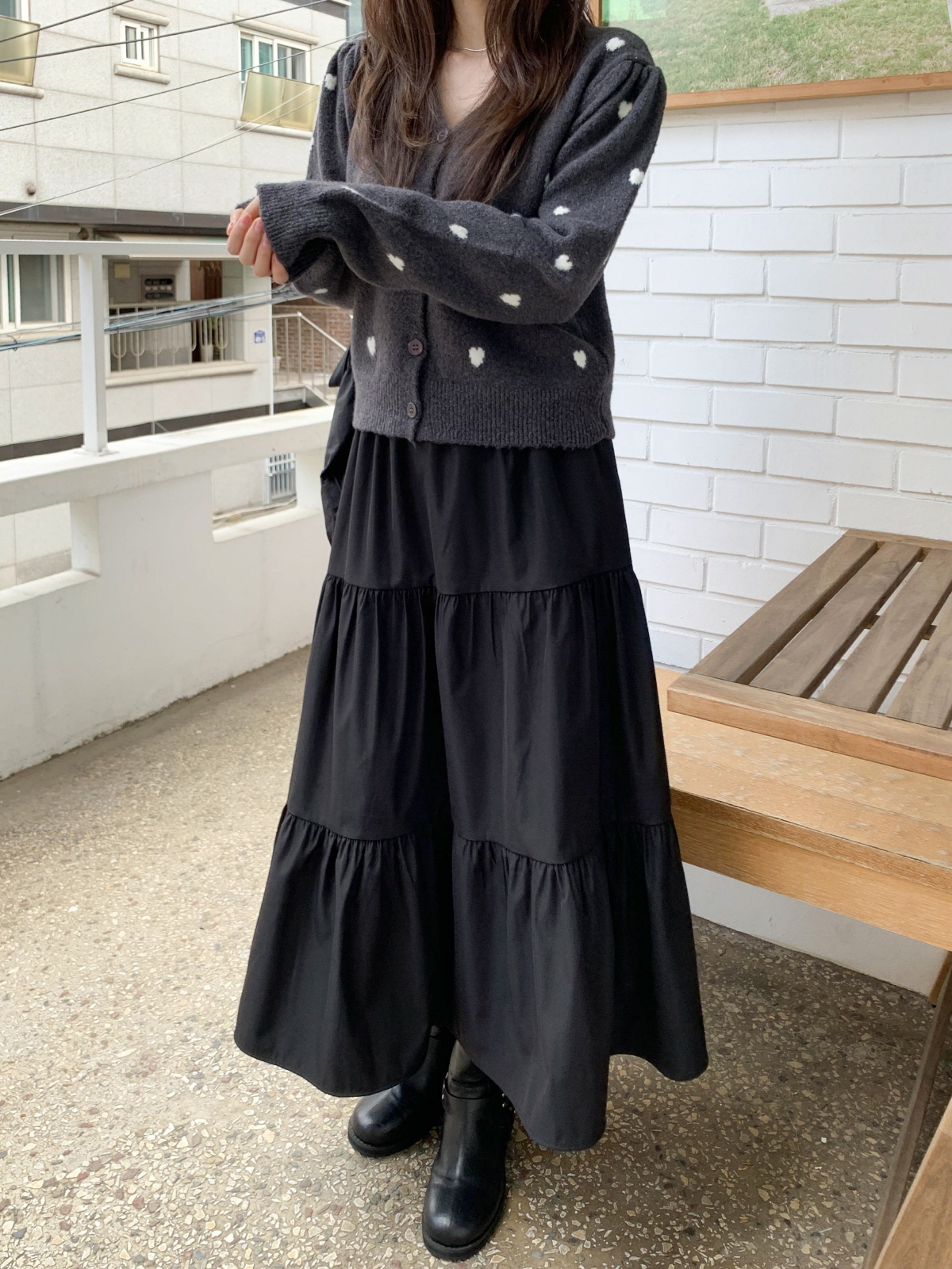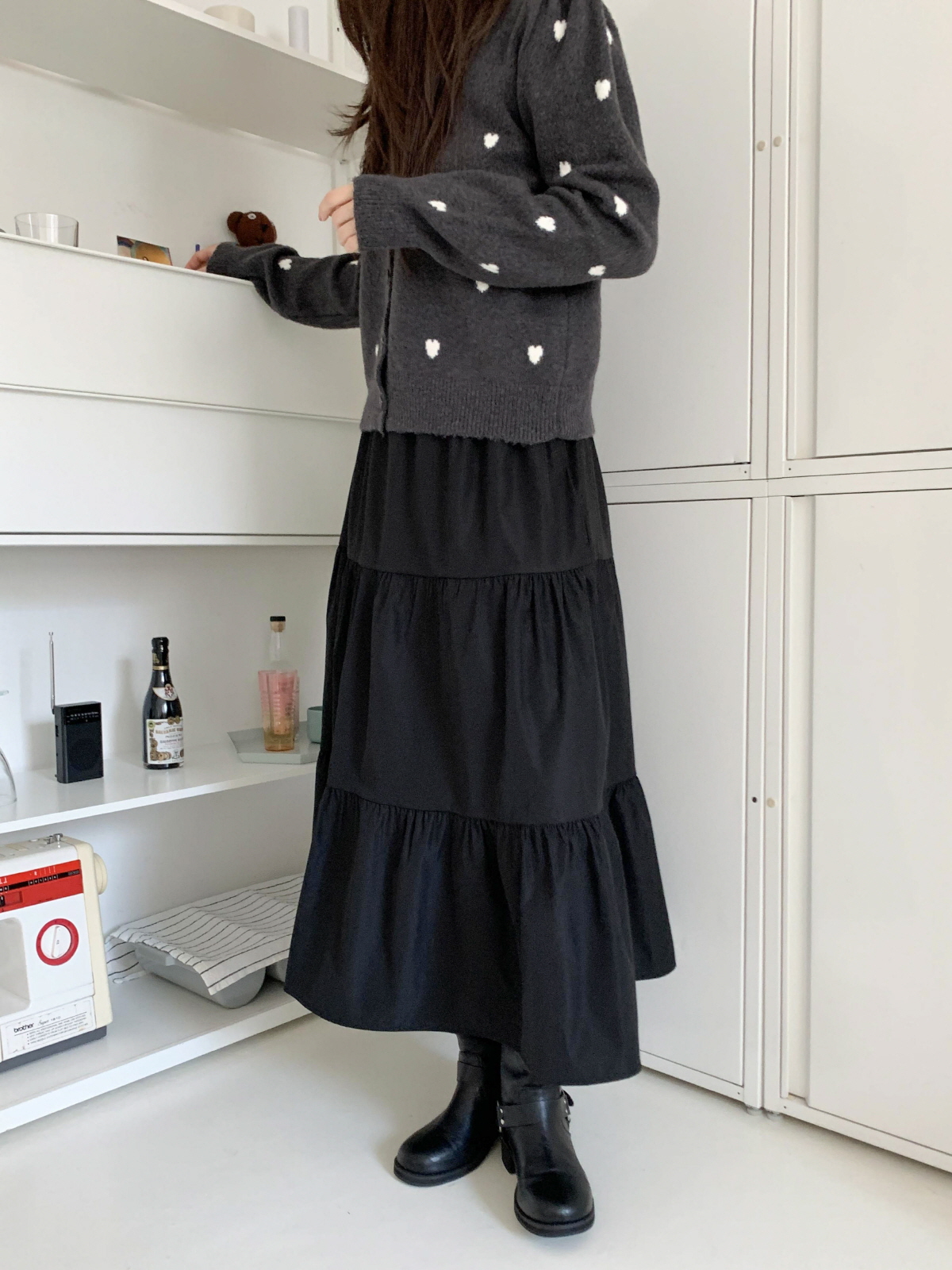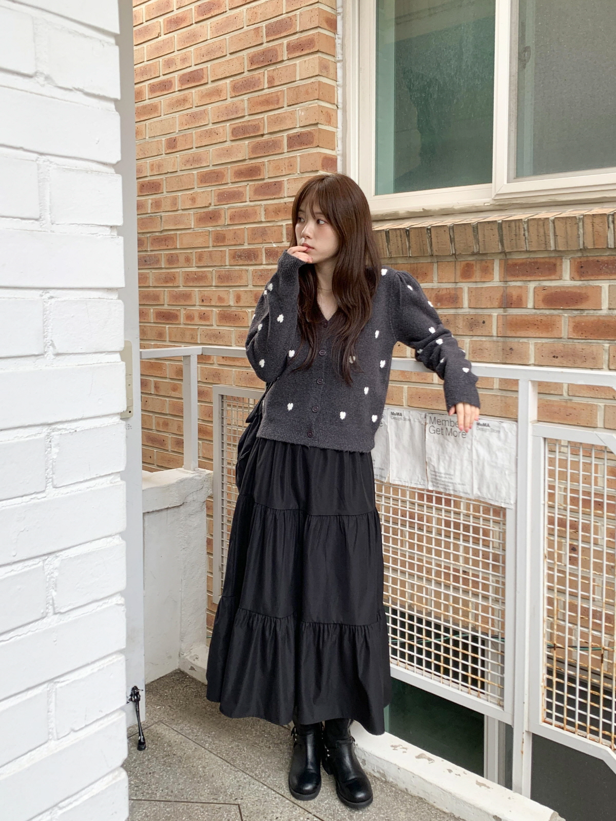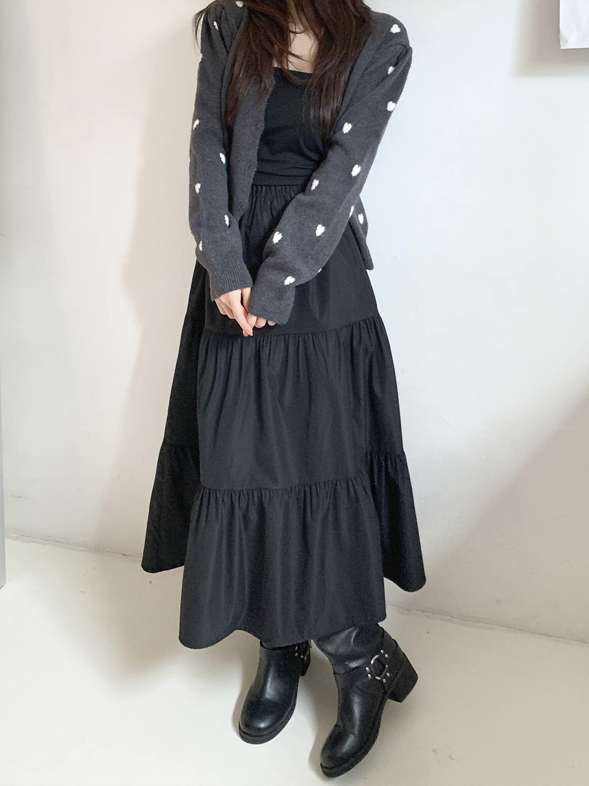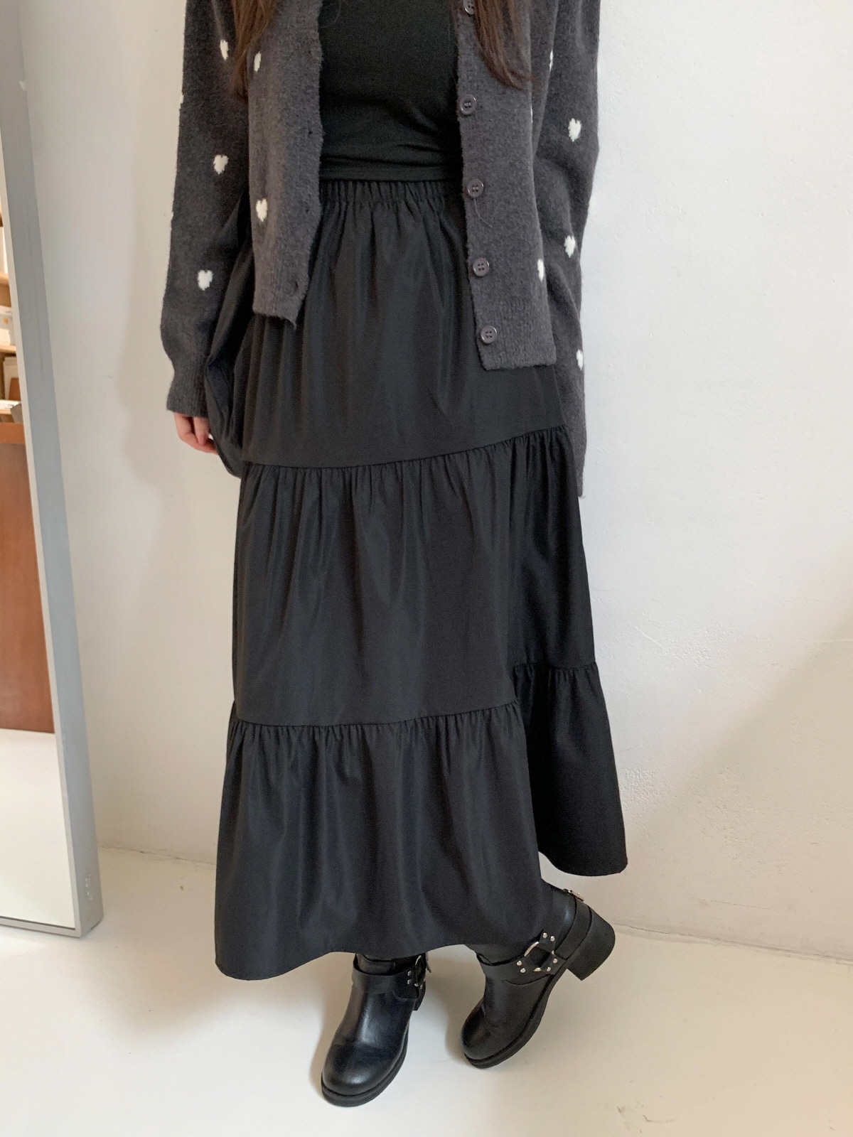 귀여운 캉캉 디자인으로 풍성한 볼륨감을 살린 플레어 롱 스커트