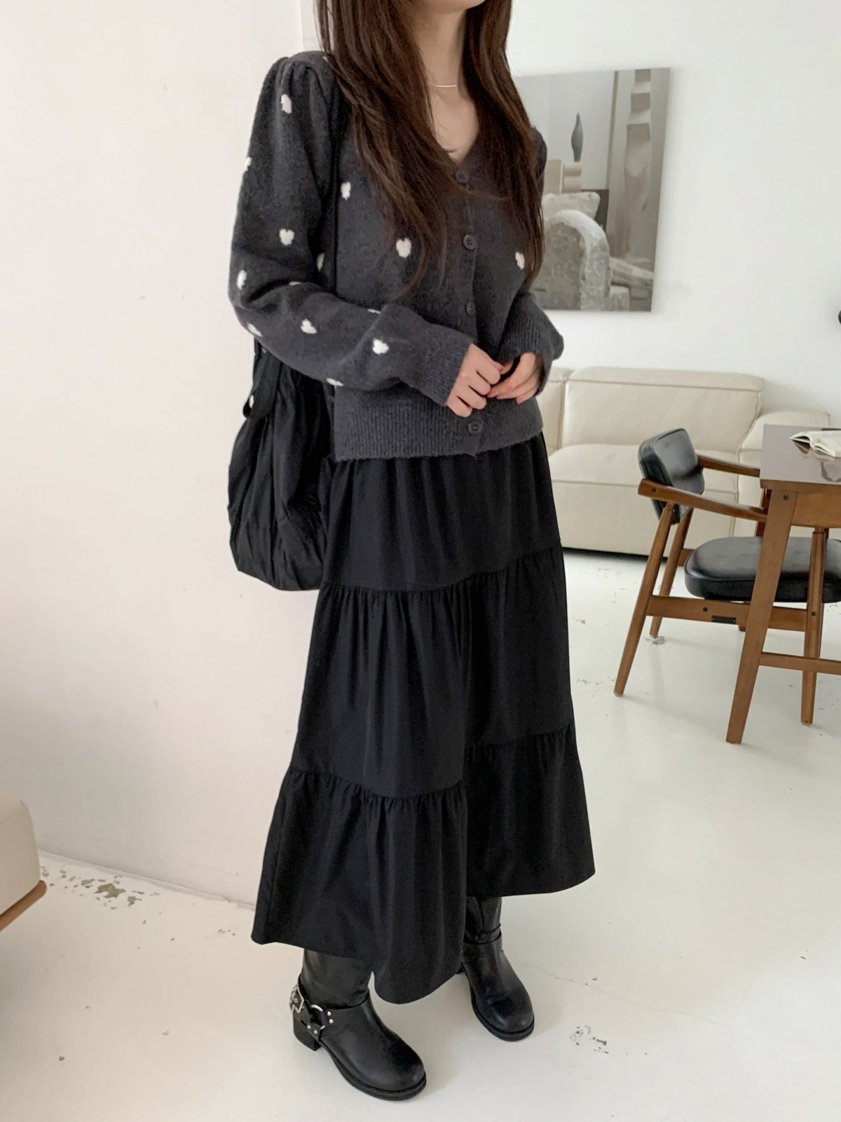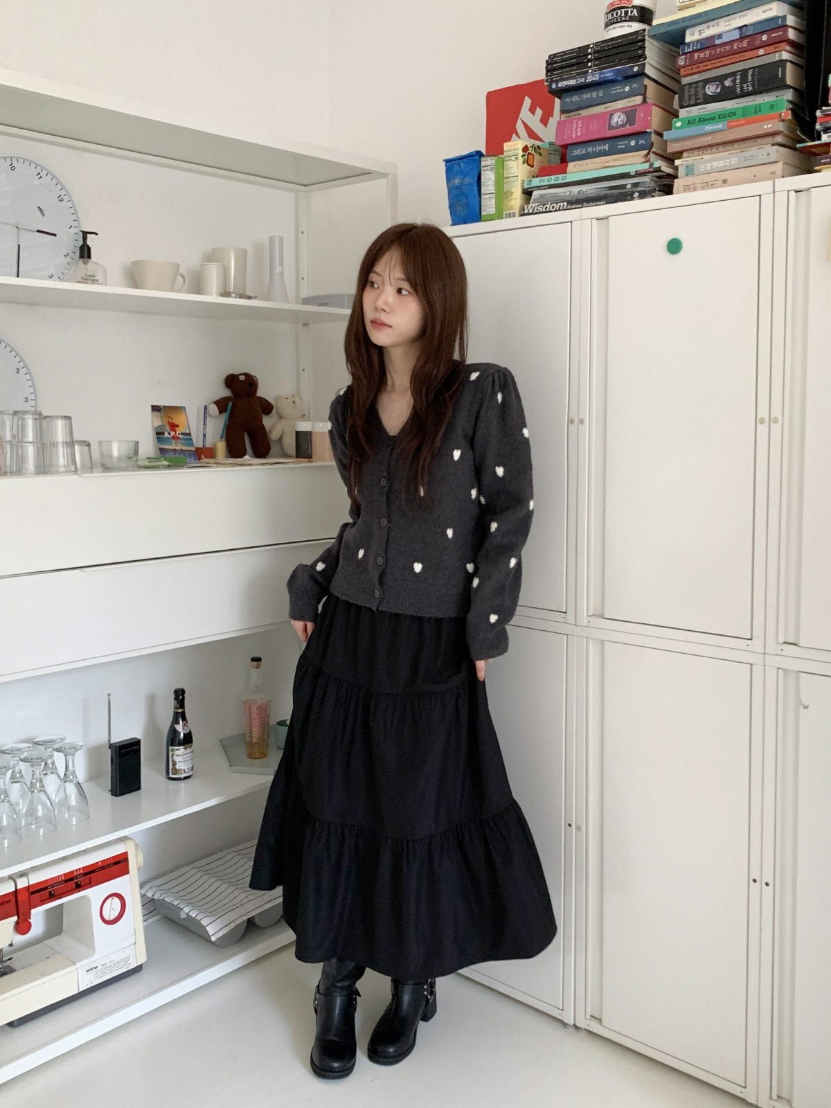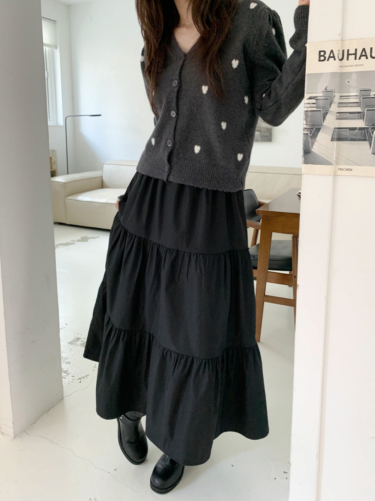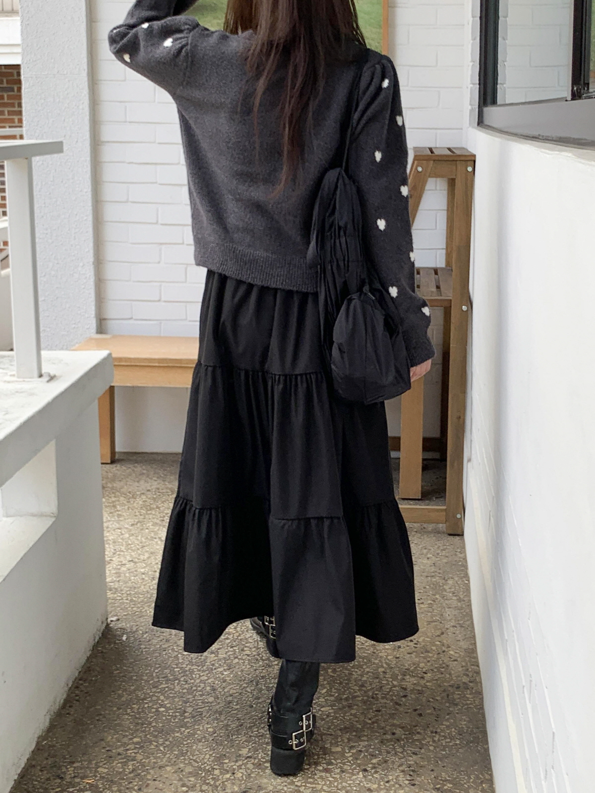 귀여운 캉캉 디자인으로 풍성한 볼륨감을 살린 플레어 롱 스커트