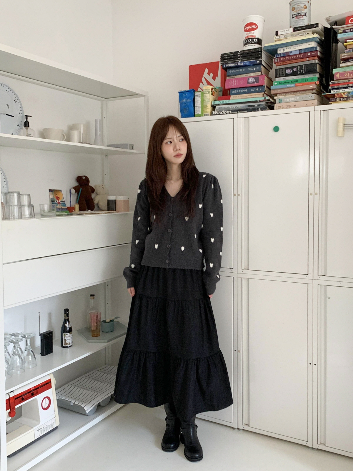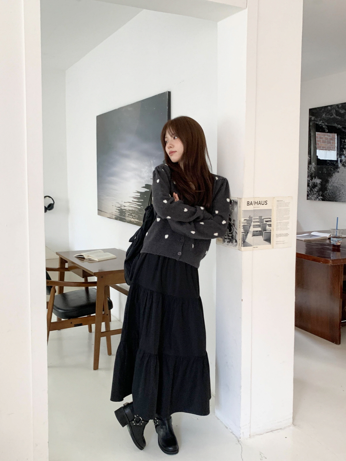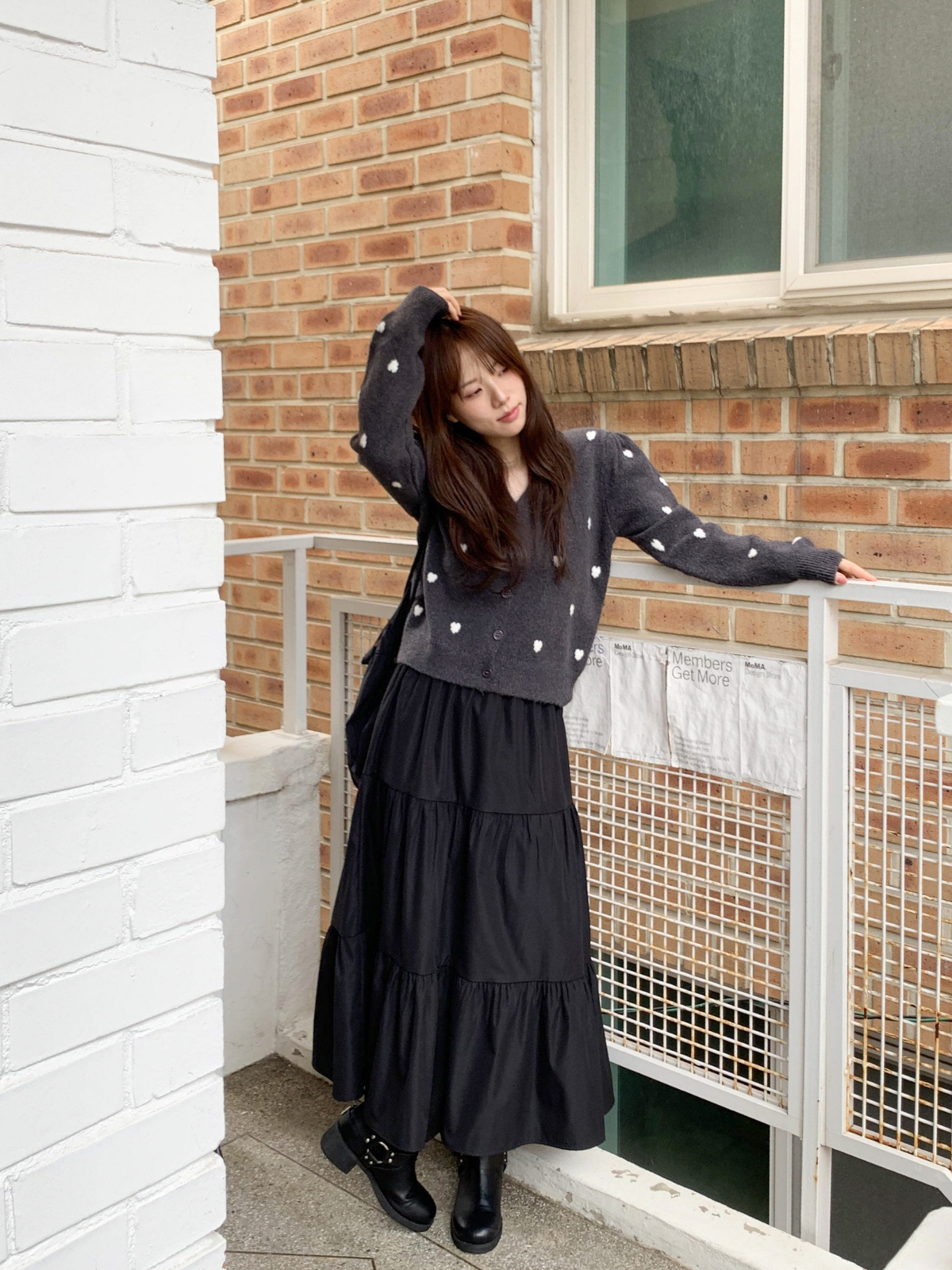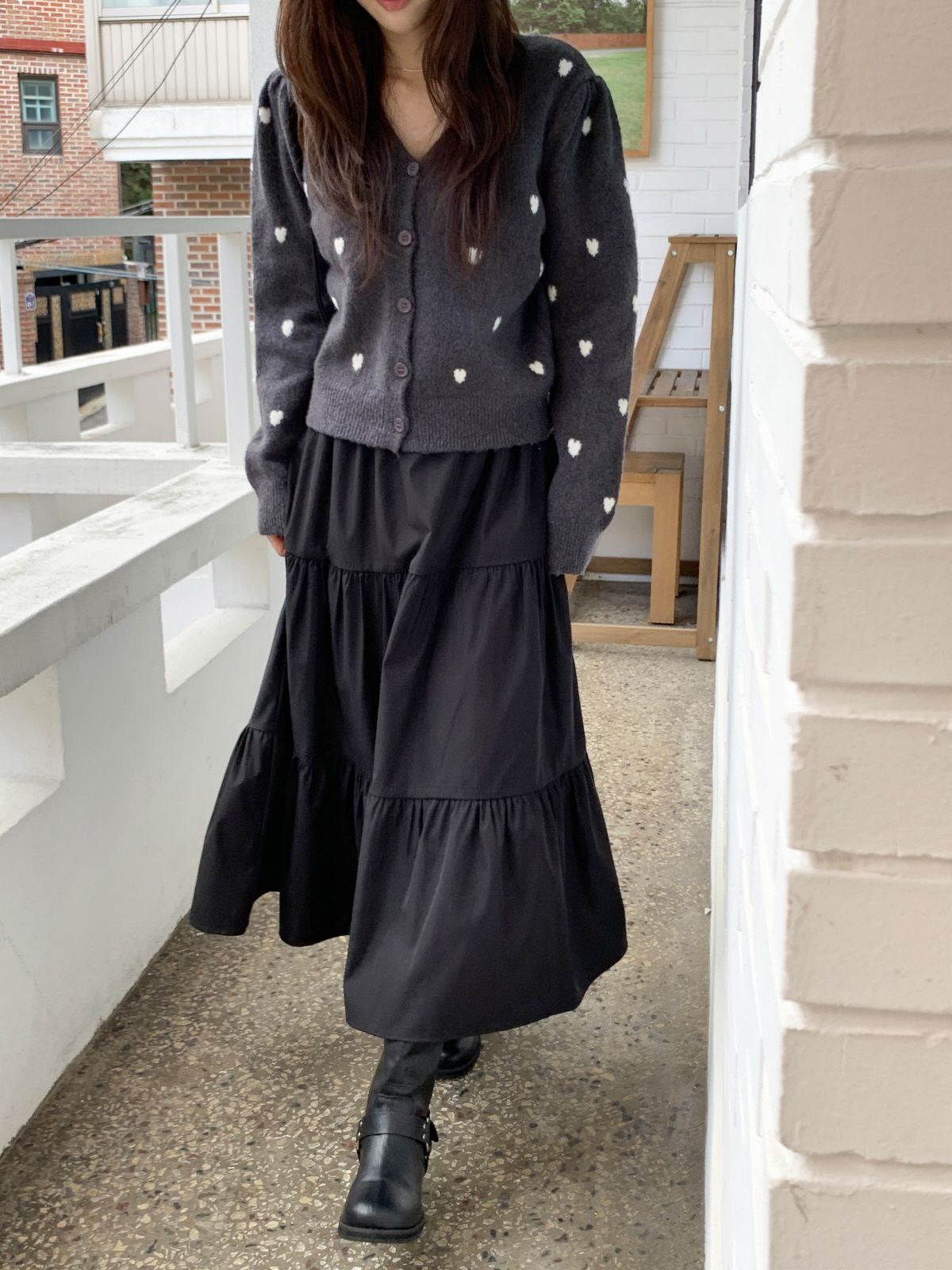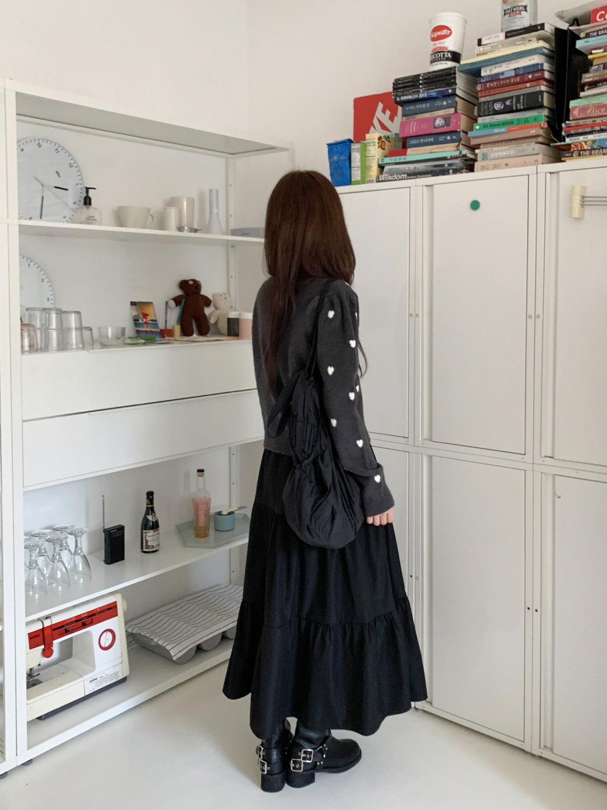 귀여운 캉캉 디자인으로 풍성한 볼륨감을 살린 플레어 롱 스커트