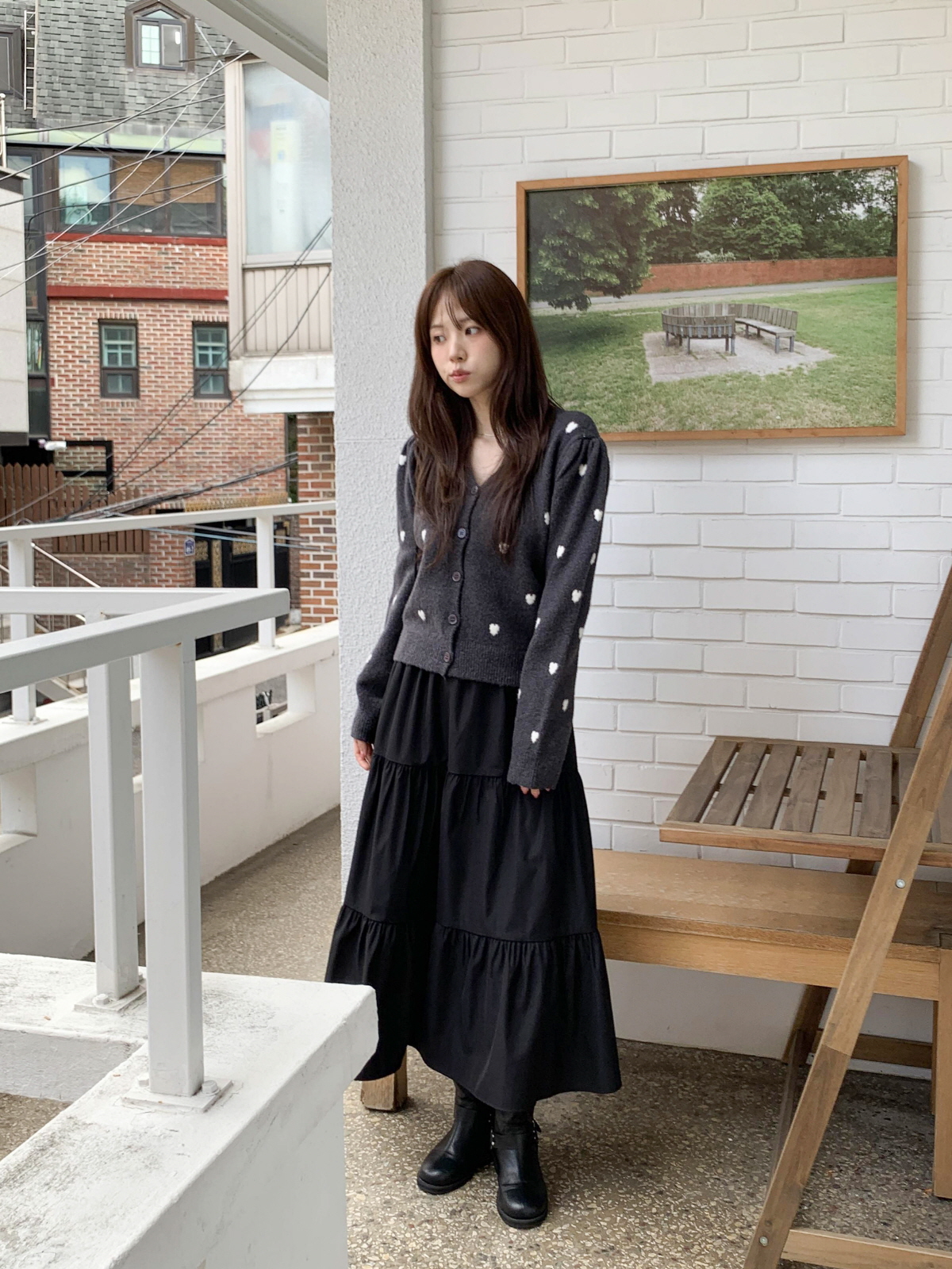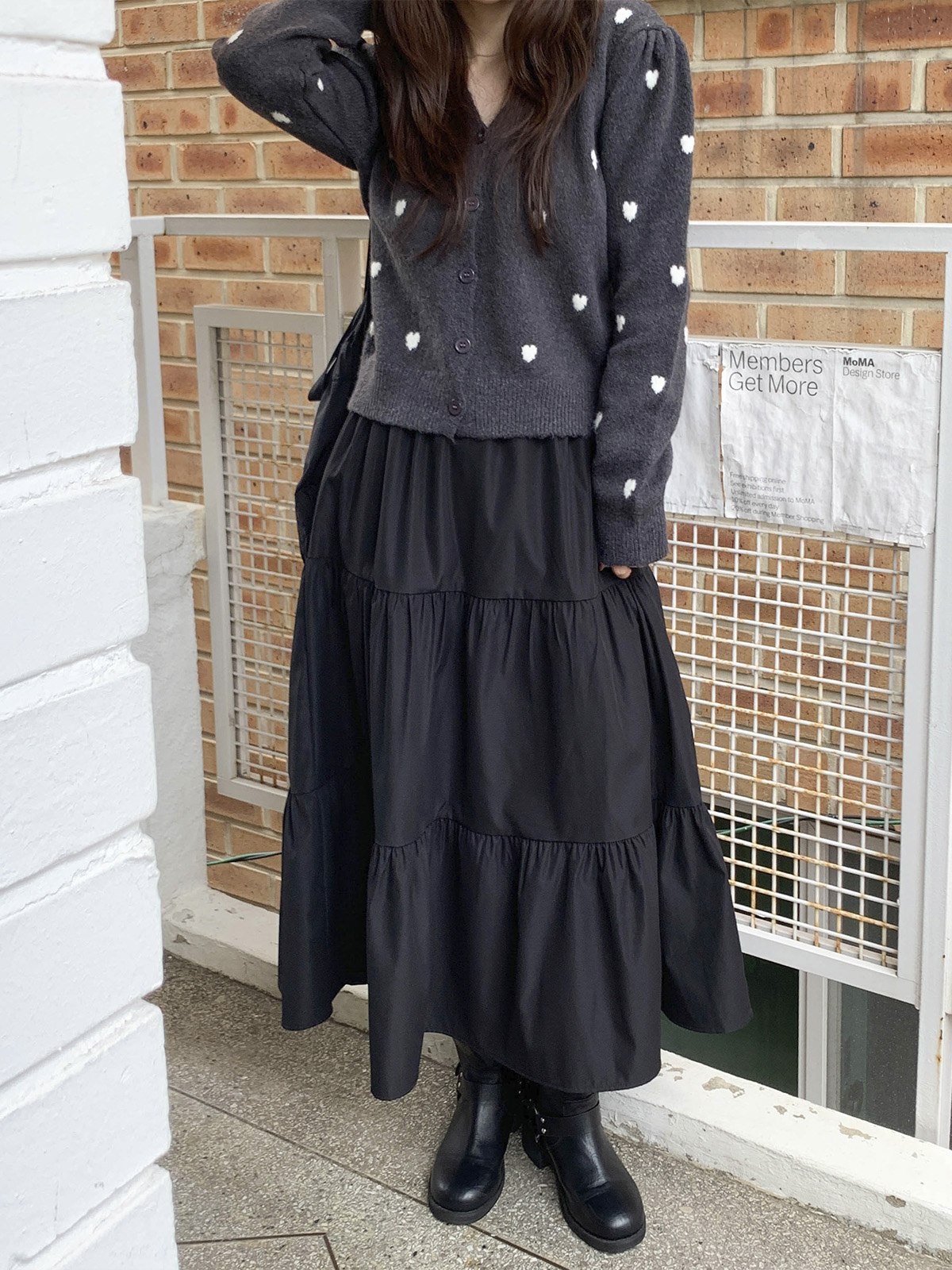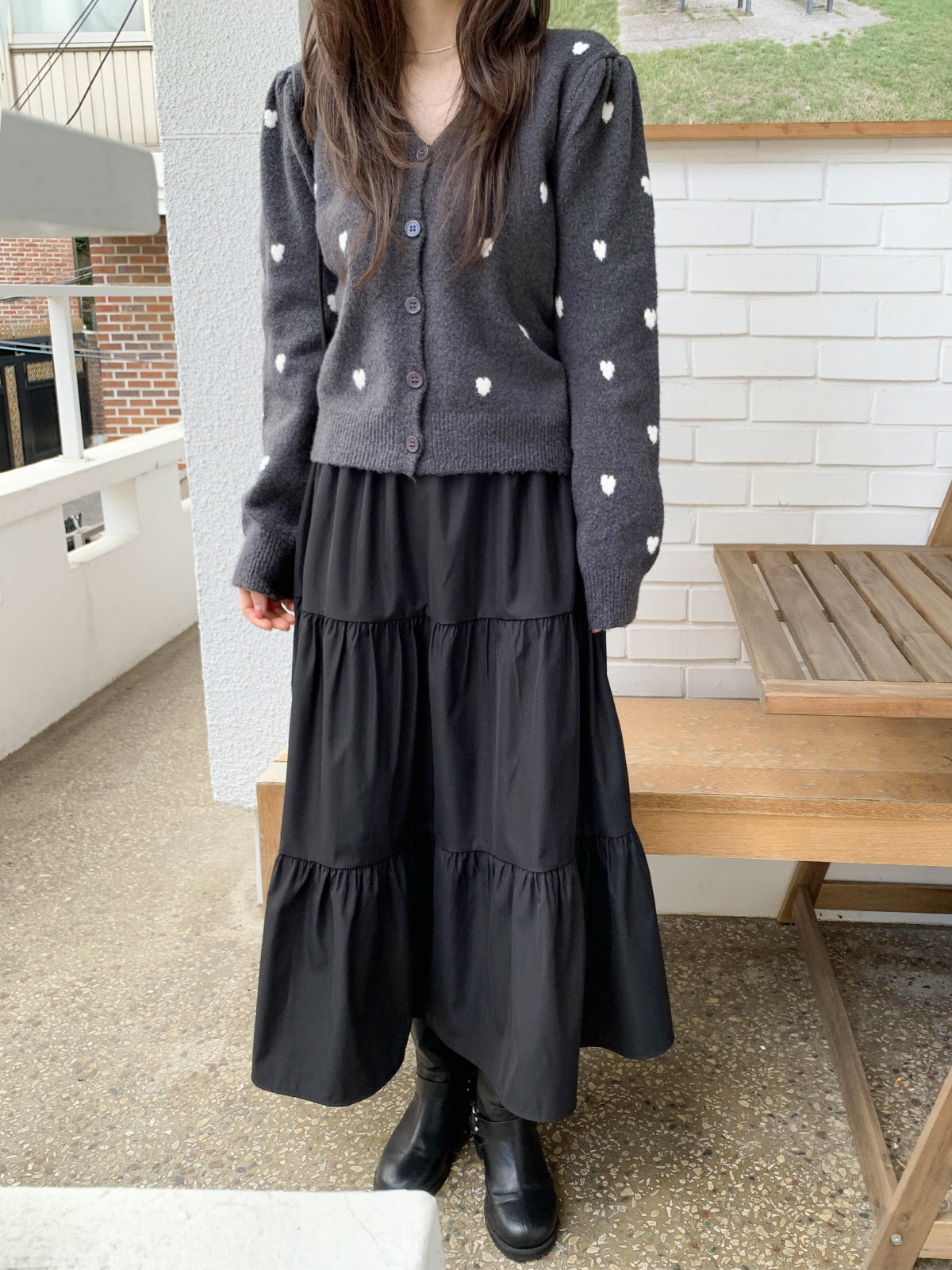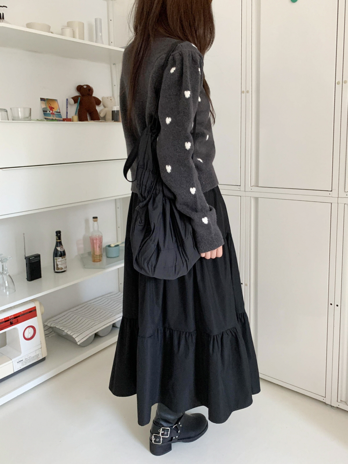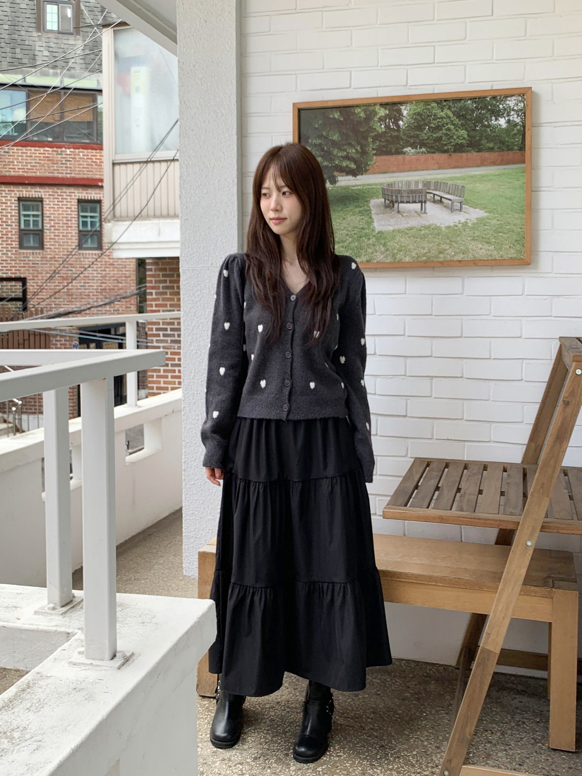 귀여운 캉캉 디자인으로 풍성한 볼륨감을 살린 플레어 롱 스커트