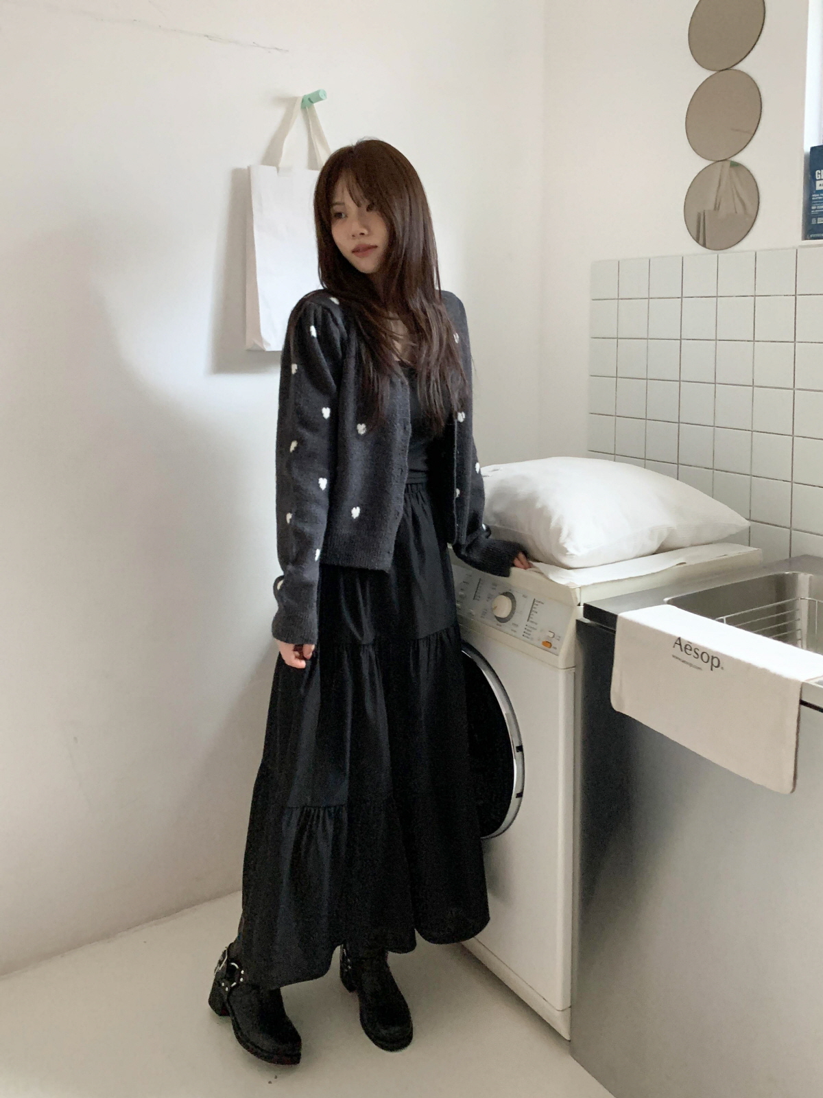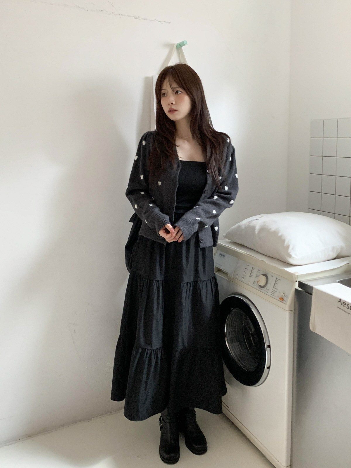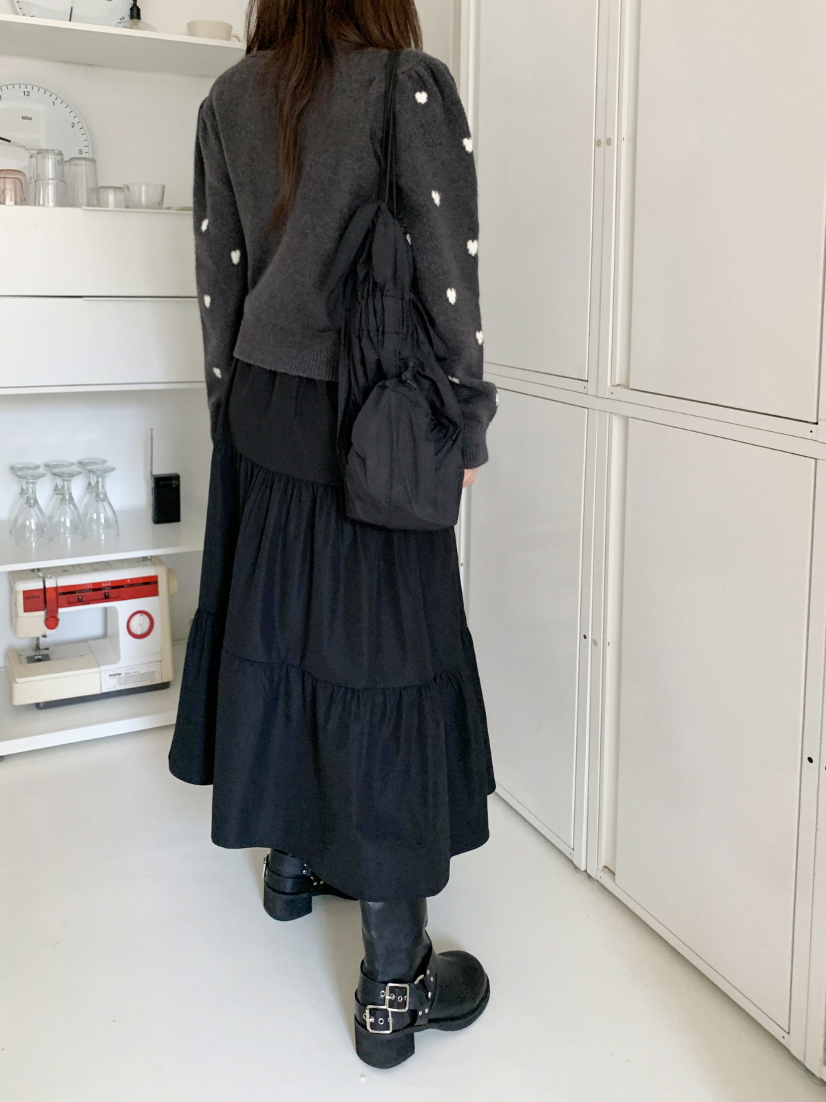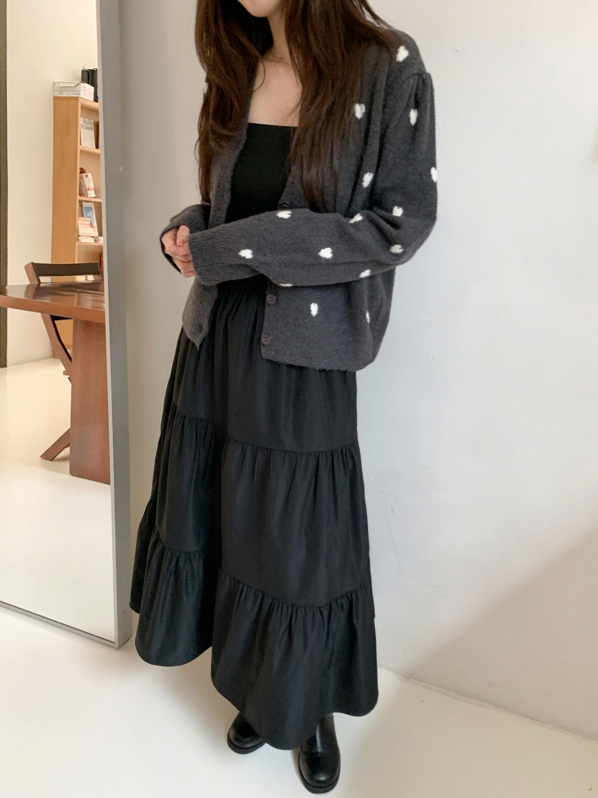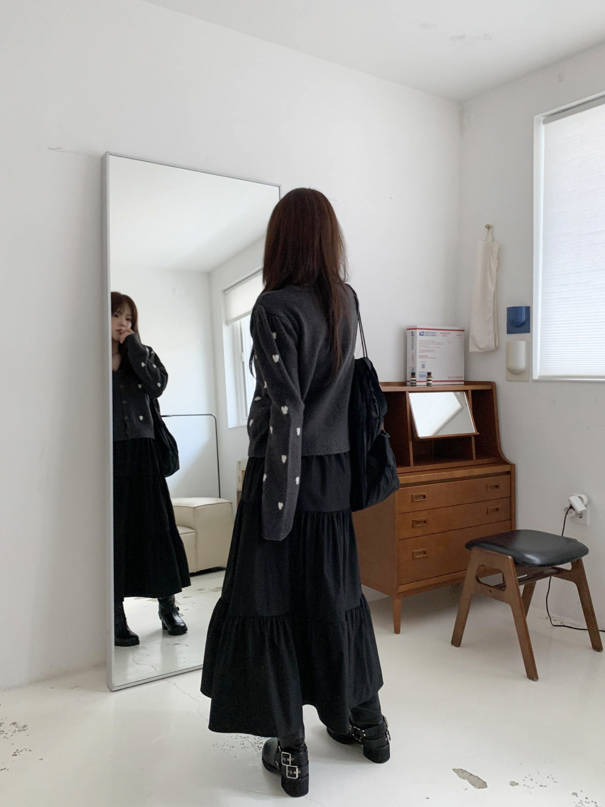 귀여운 캉캉 디자인으로 풍성한 볼륨감을 살린 플레어 롱 스커트