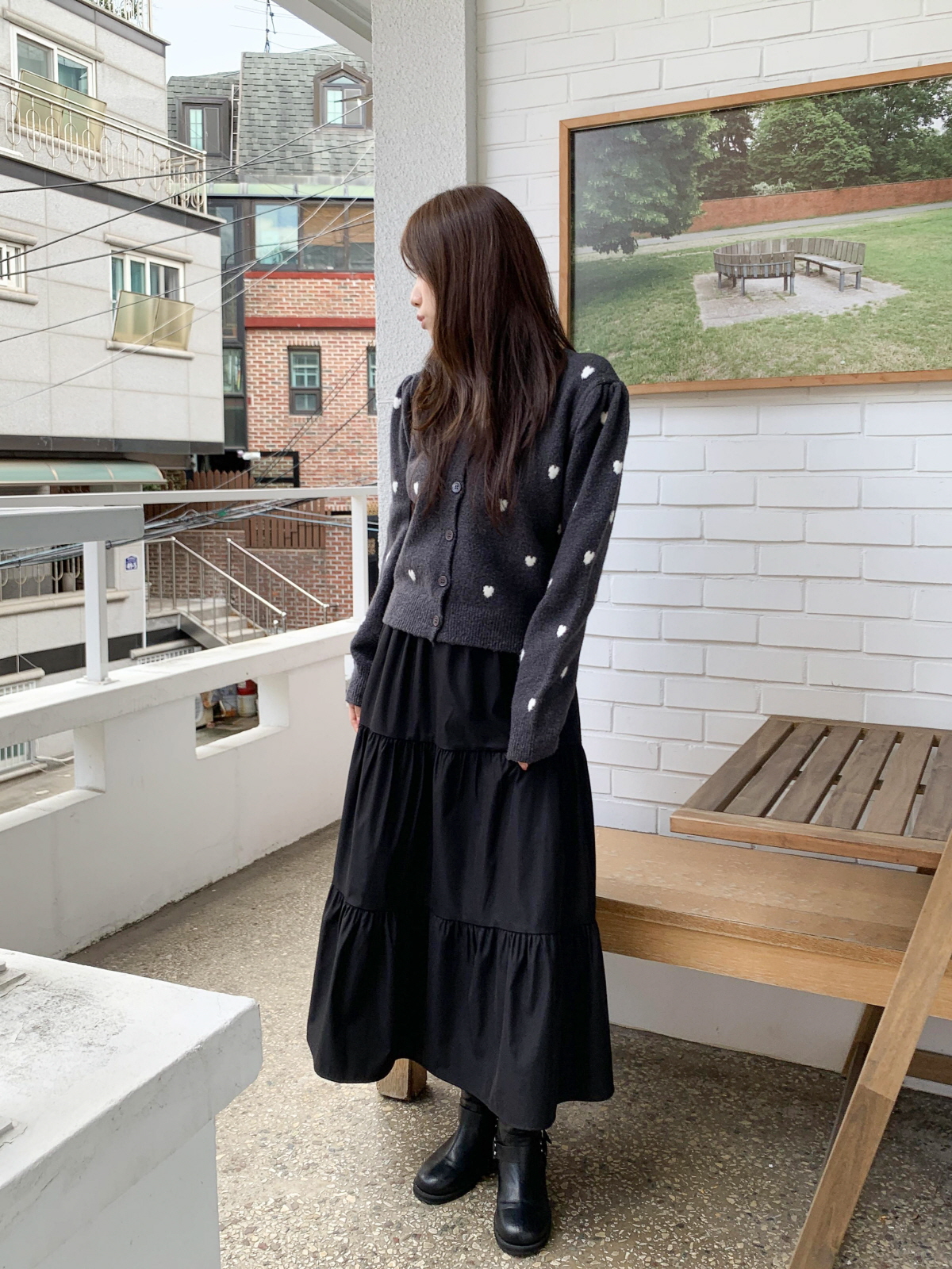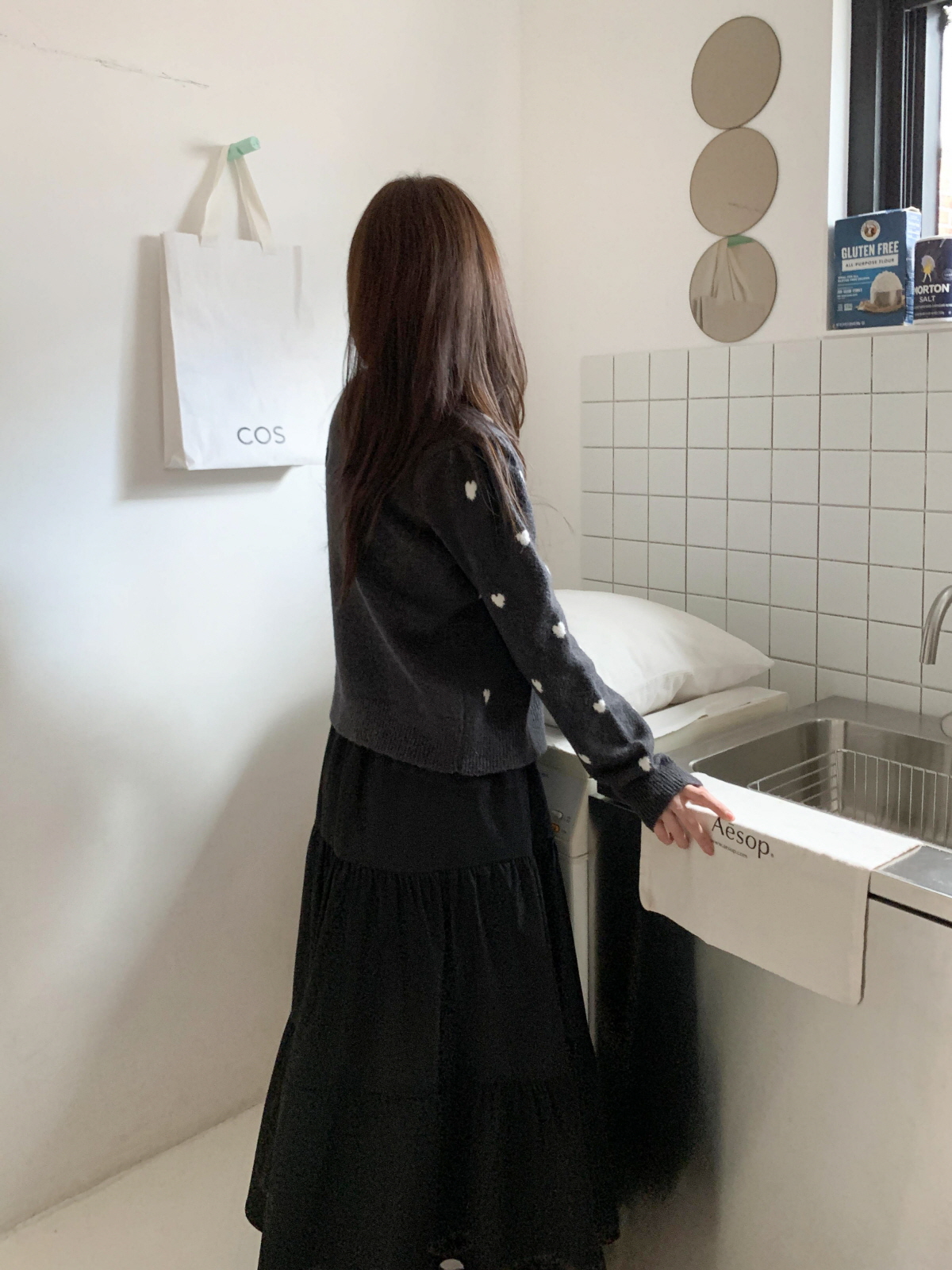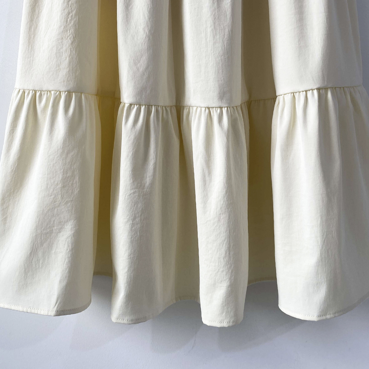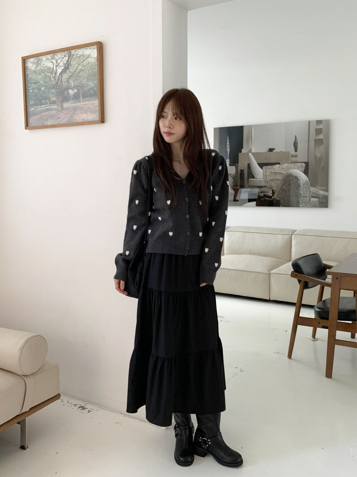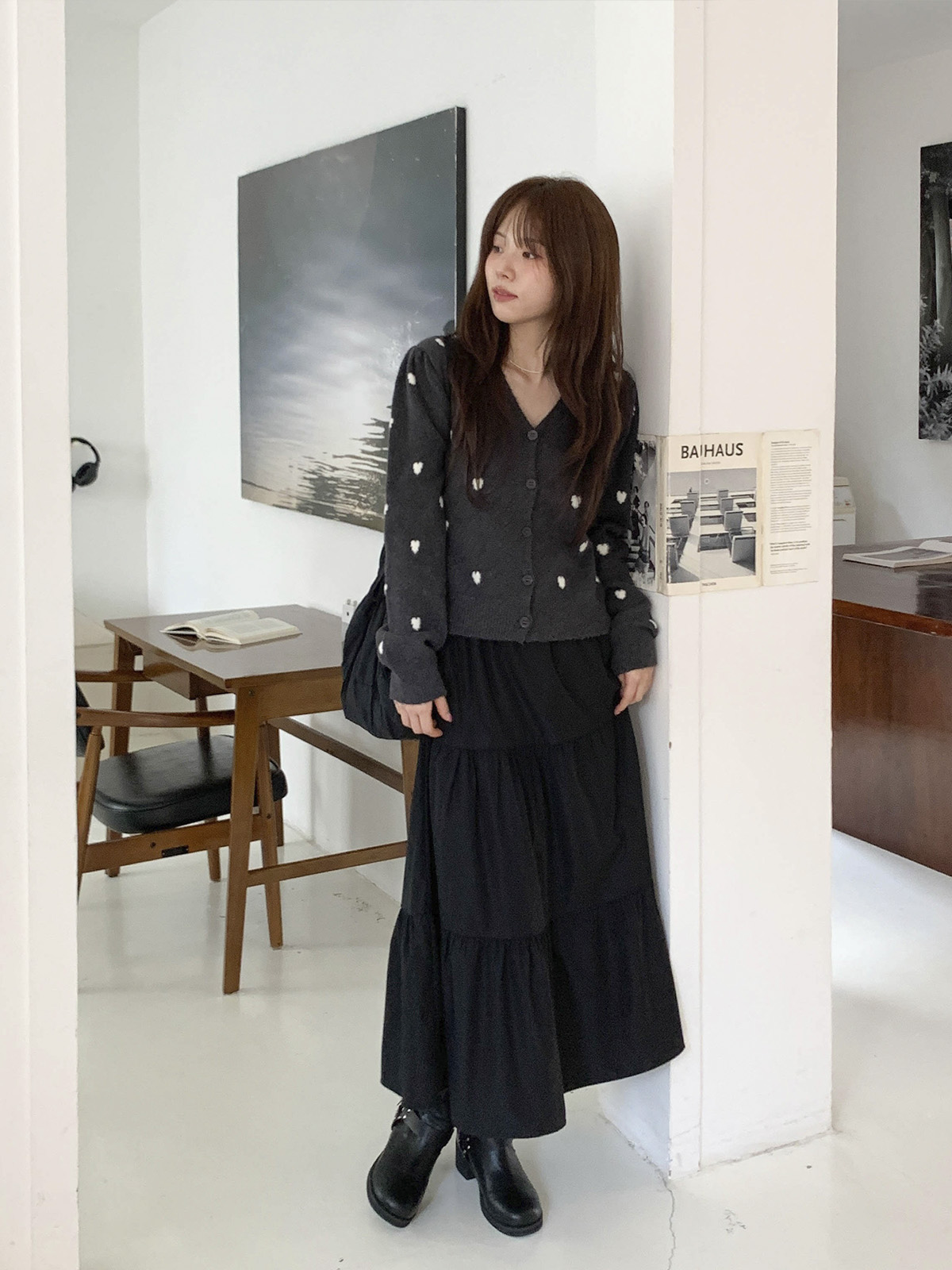 귀여운 캉캉 디자인으로 풍성한 볼륨감을 살린 플레어 롱 스커트