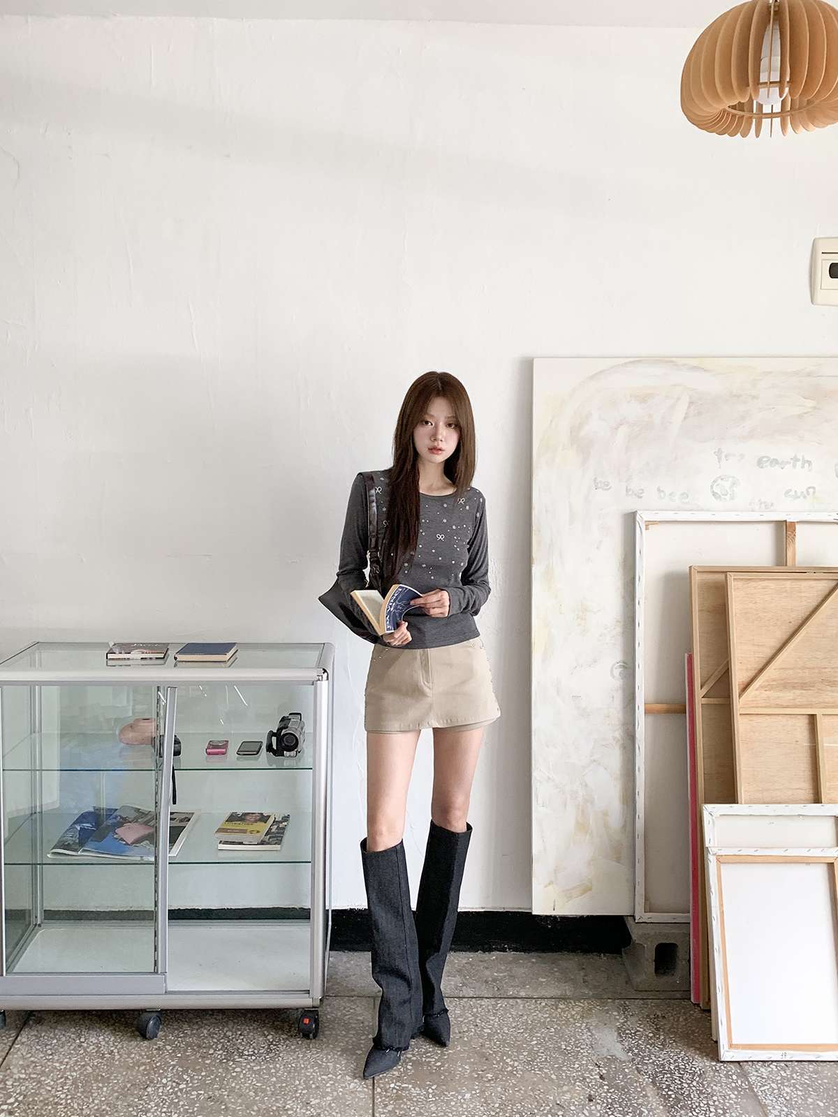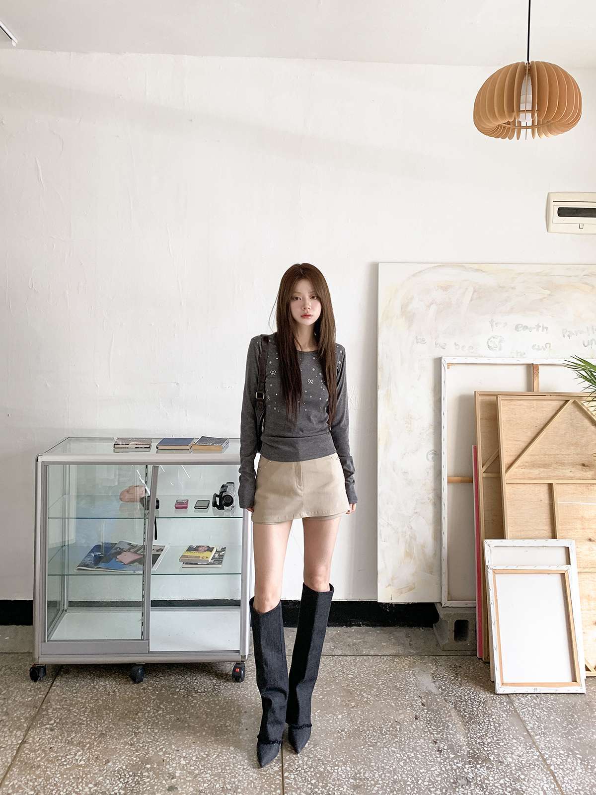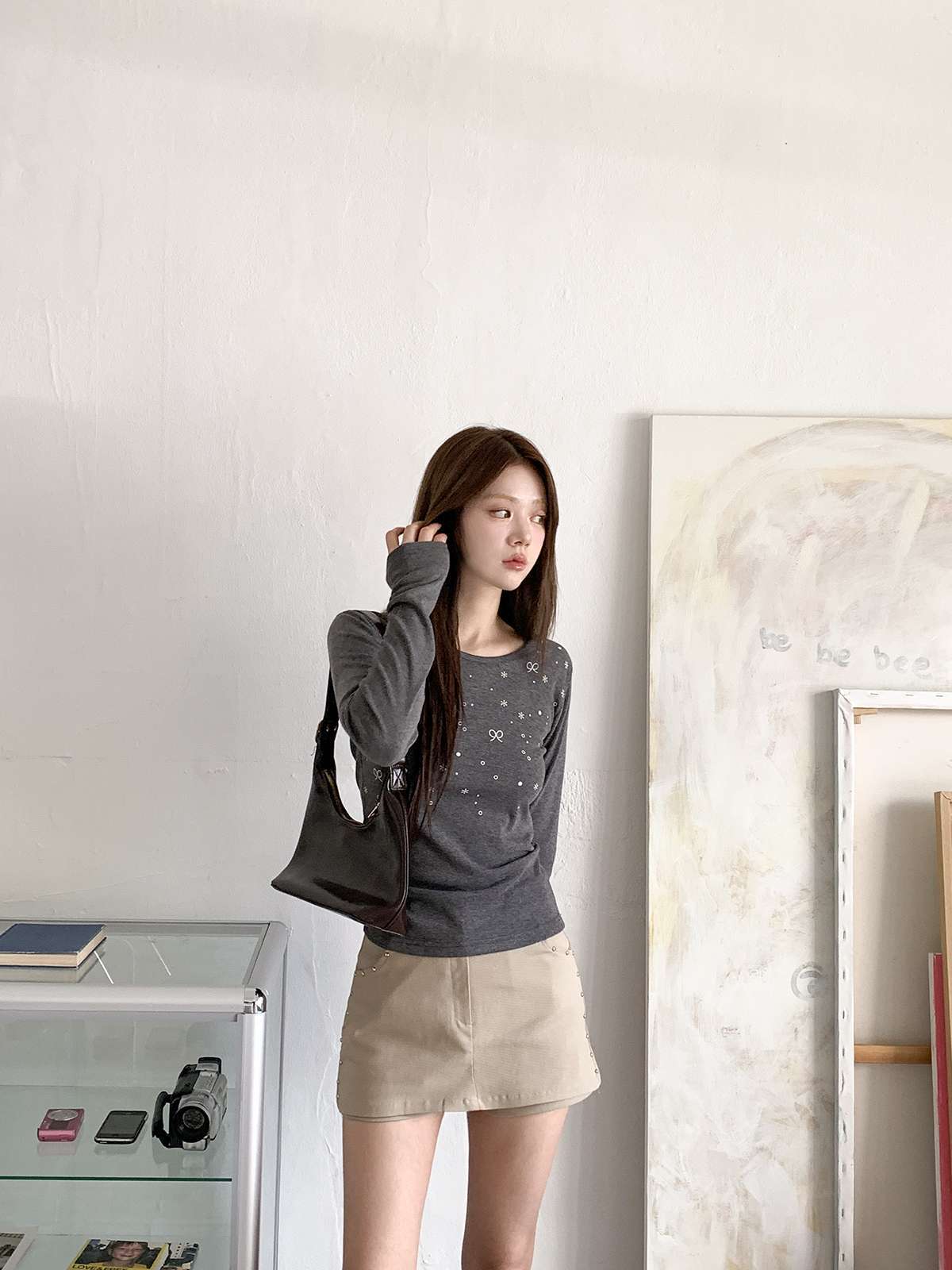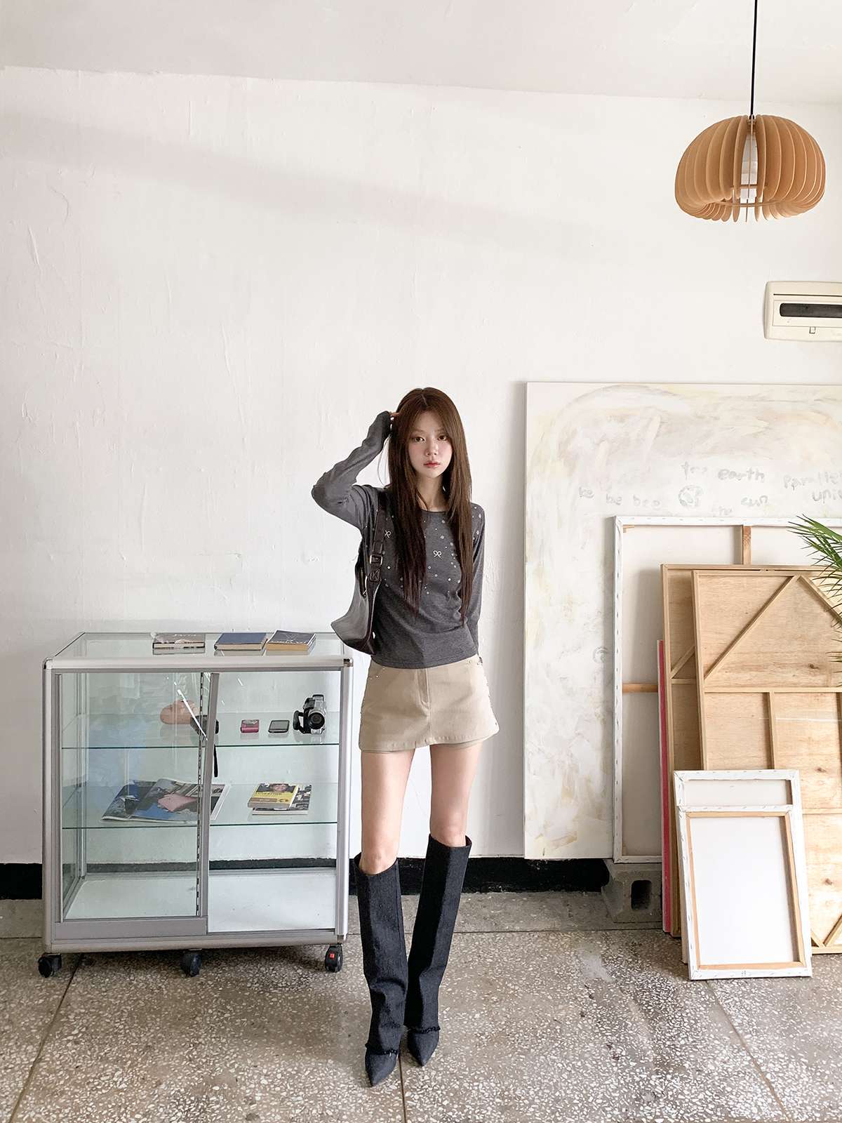 빈티지하고 힙한 무드의 스터드가 들어간 치마바지