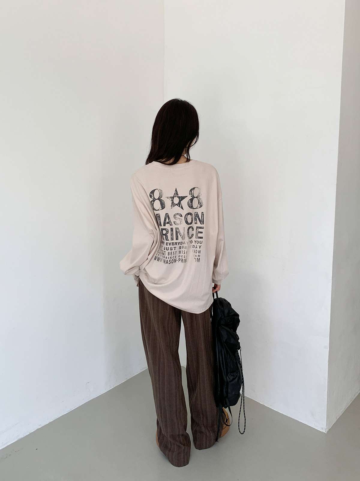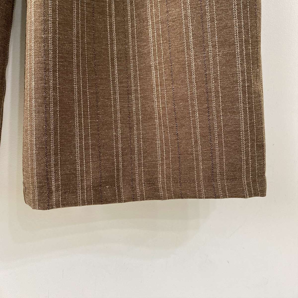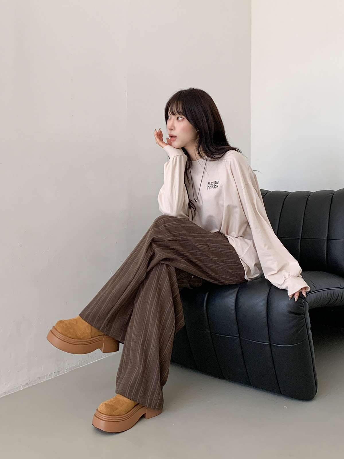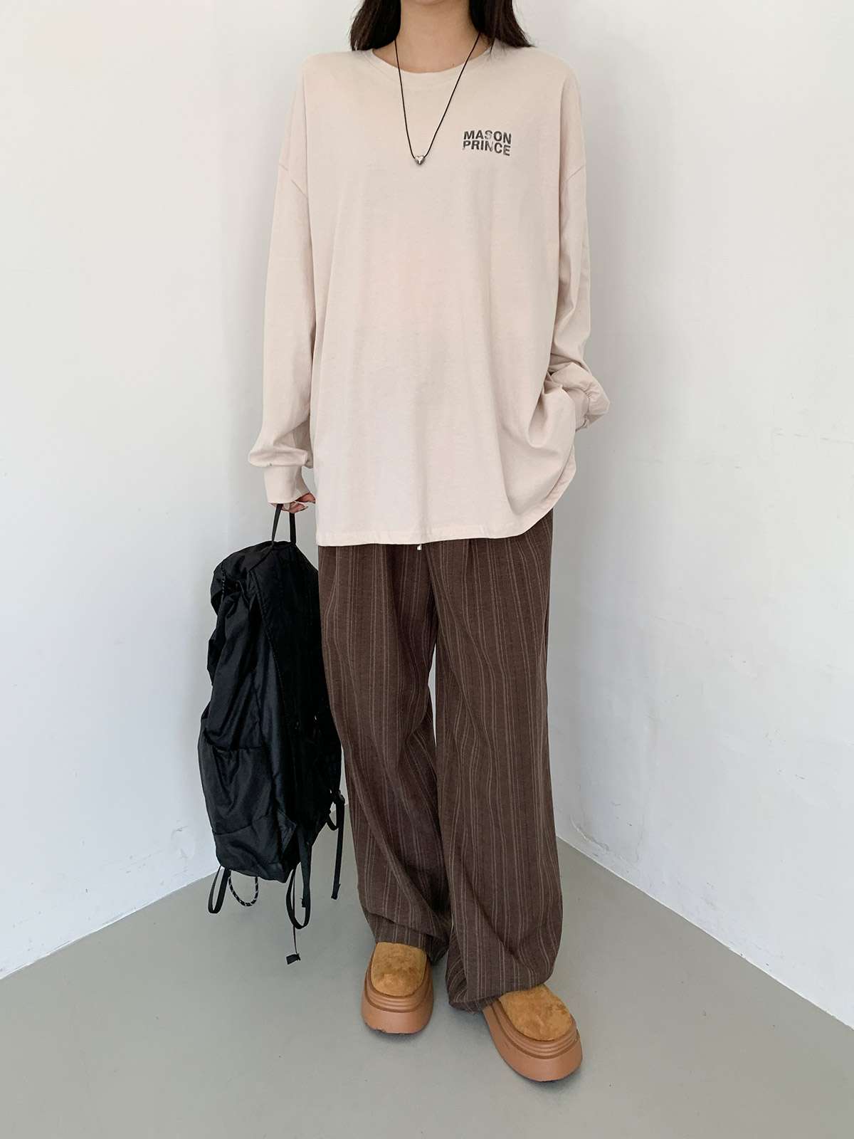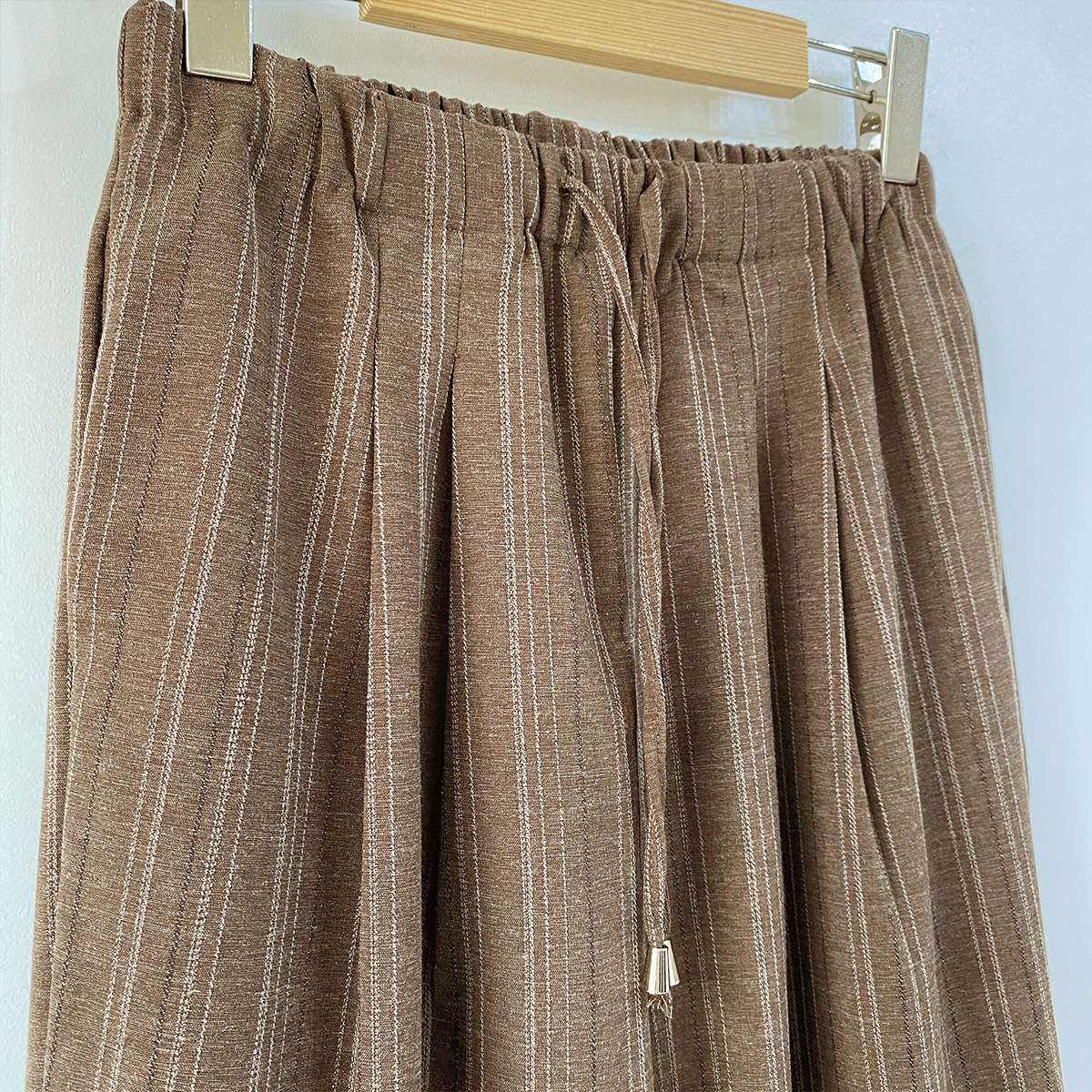 와이드한 핏의 스트라이프 패턴이 포인트인 밴딩 팬츠