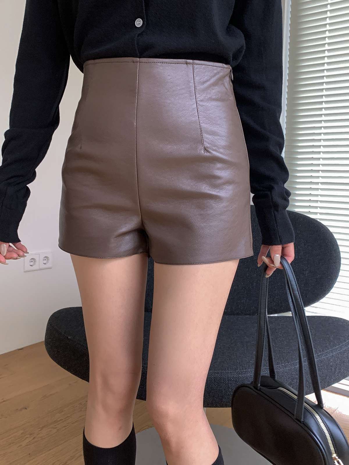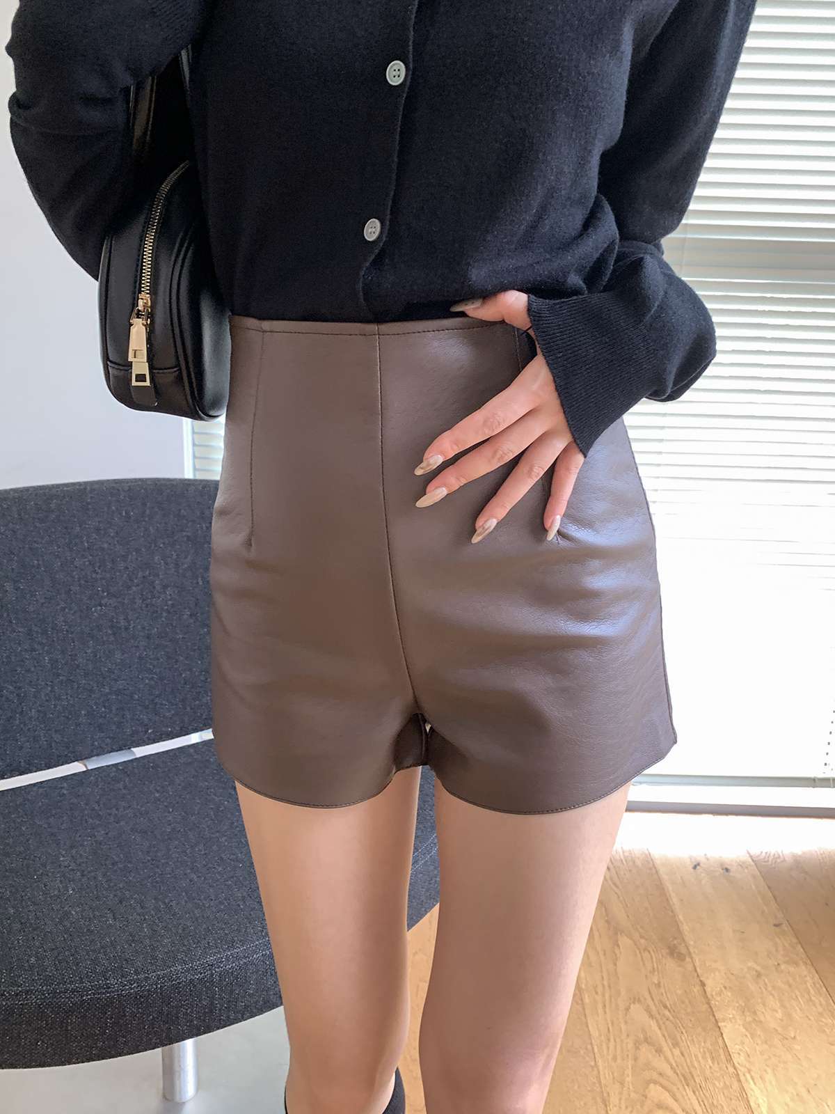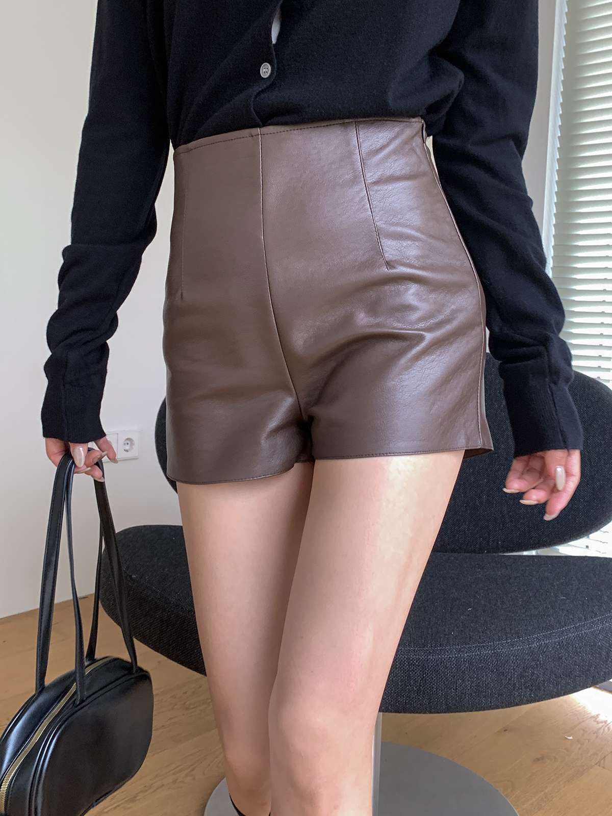 레더 팬츠의 모던하고 트렌디한 매력을 그대로 살린 하프 팬츠로