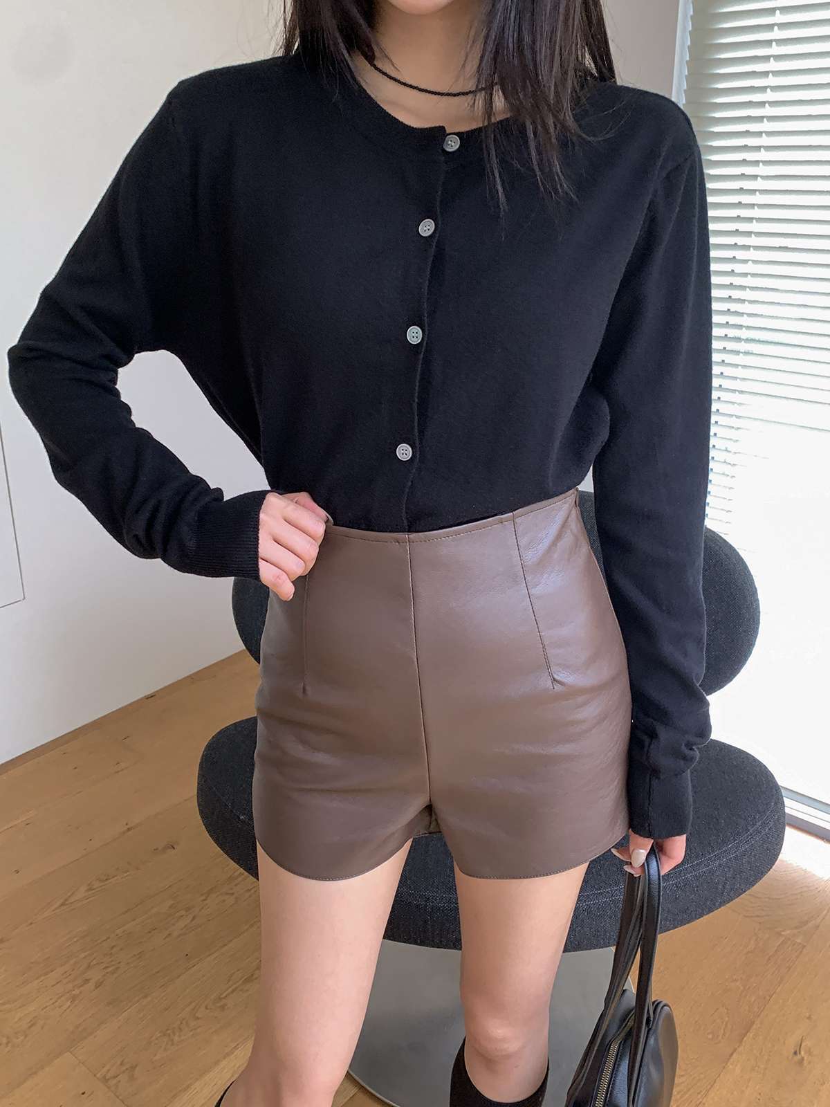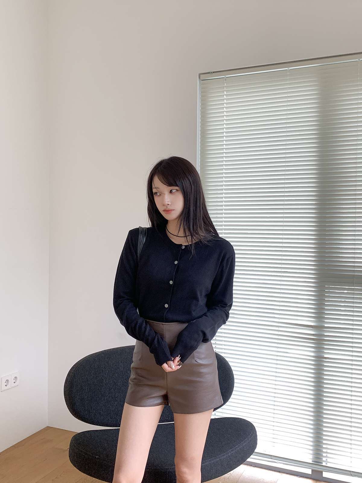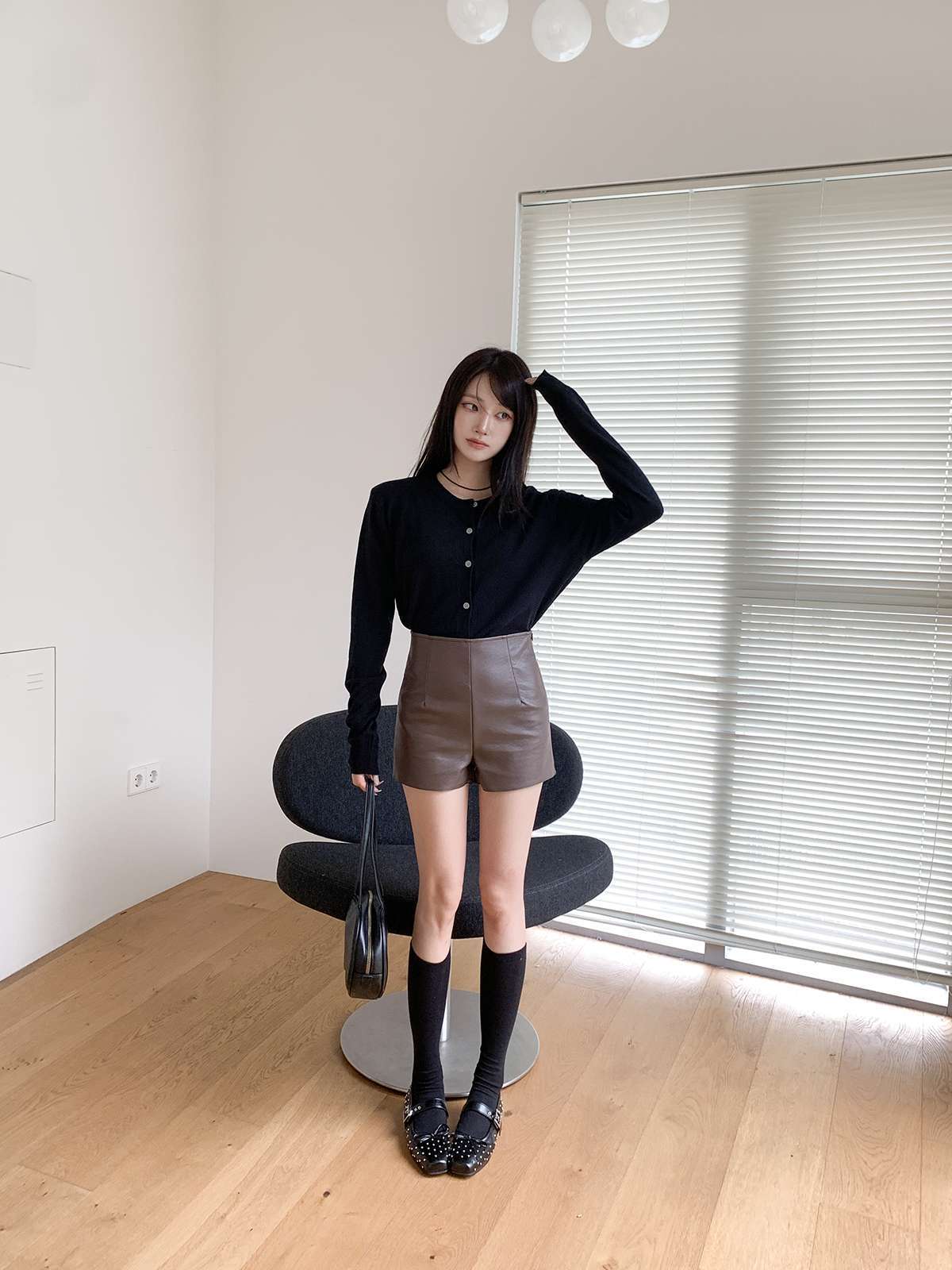 레더 팬츠의 모던하고 트렌디한 매력을 그대로 살린 하프 팬츠로