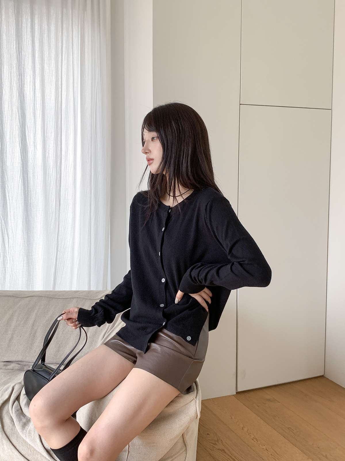 너무 짧지 않은 적당한 길이감의 핀턱 레더 하프 팬츠