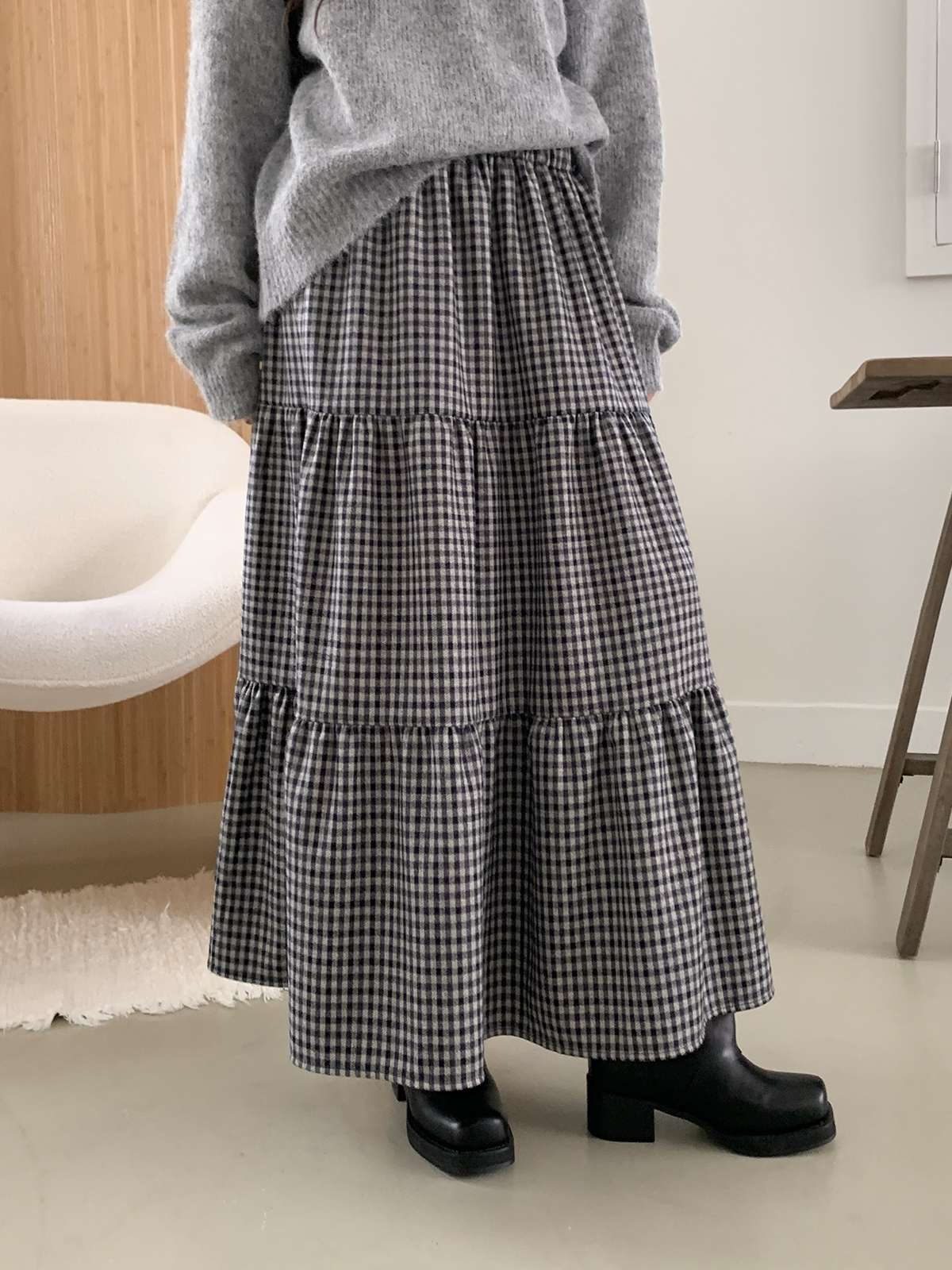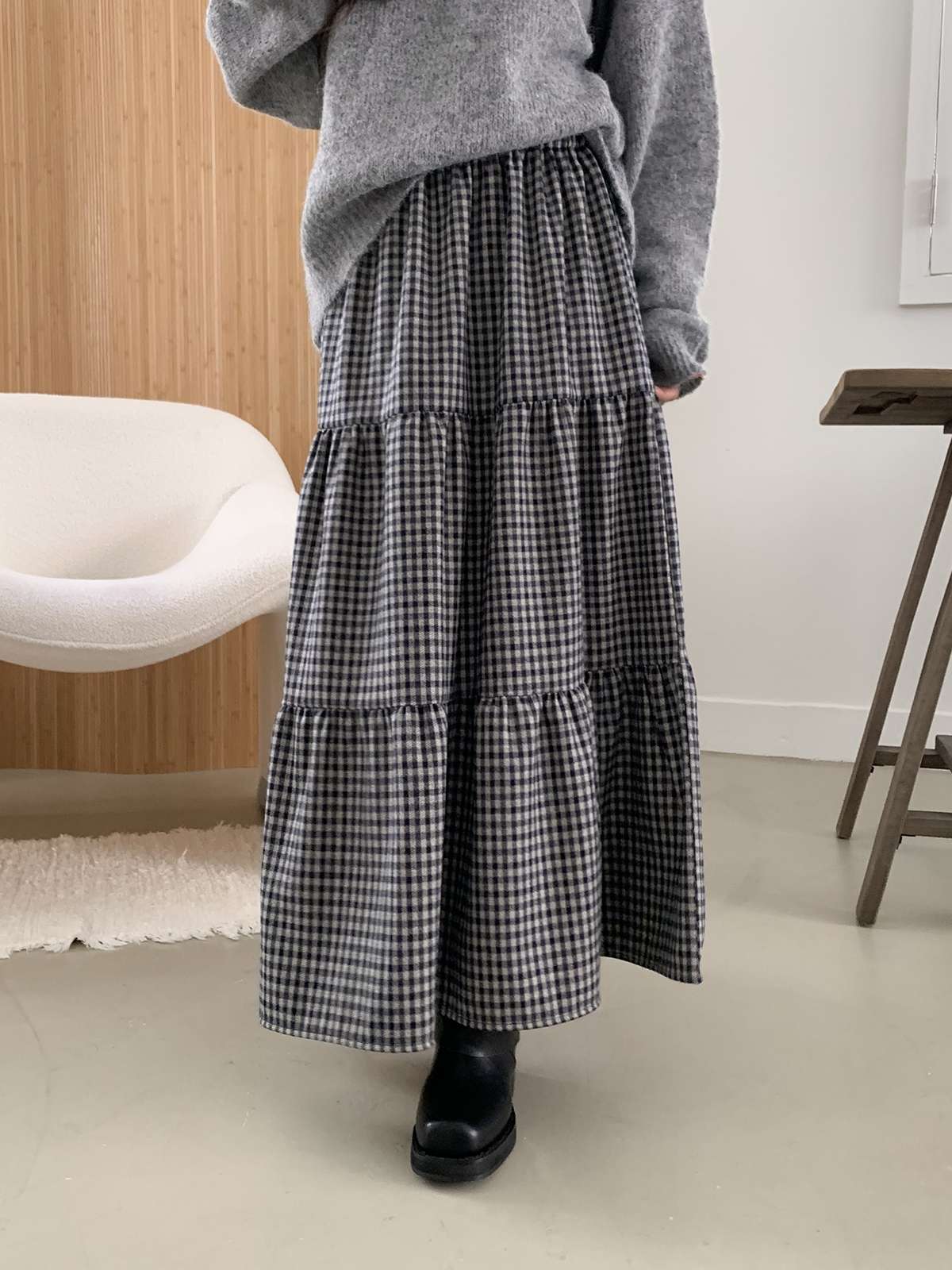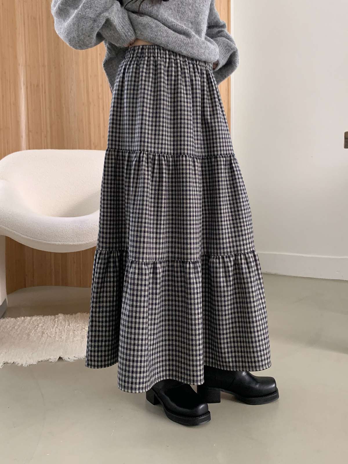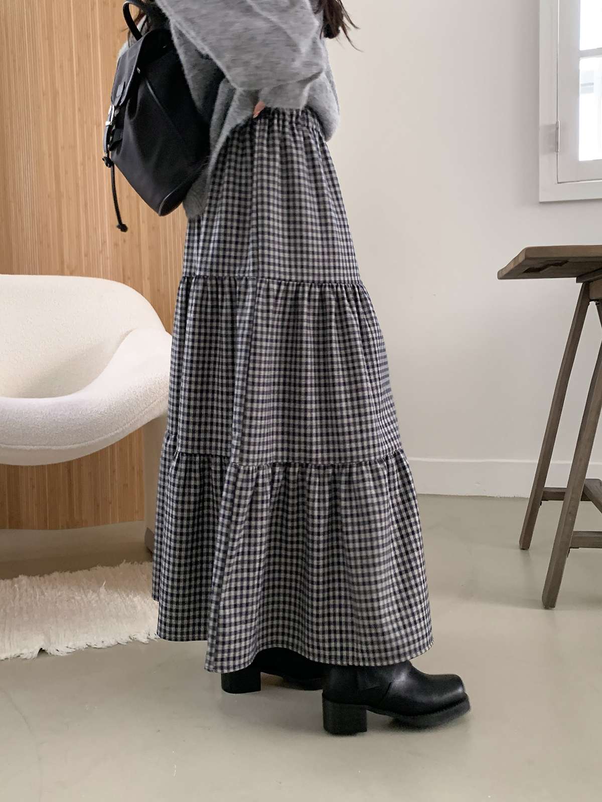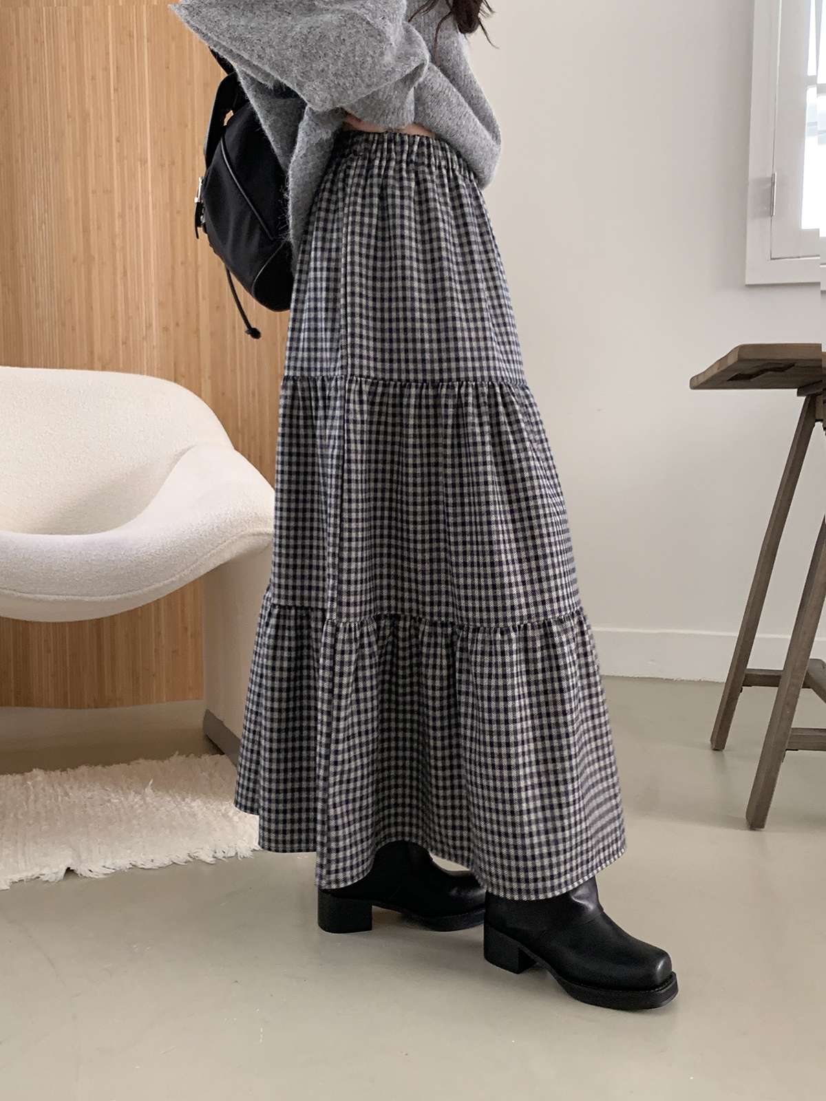 빈티지한 무드의 체크 패턴이 포인트인 데일리 롱 스커트