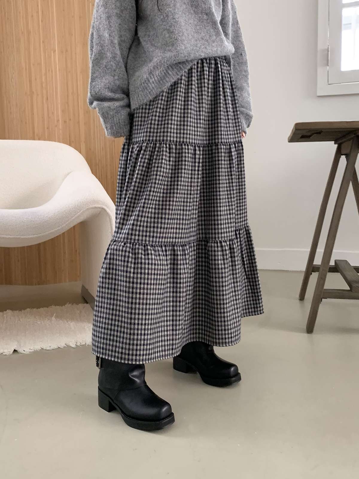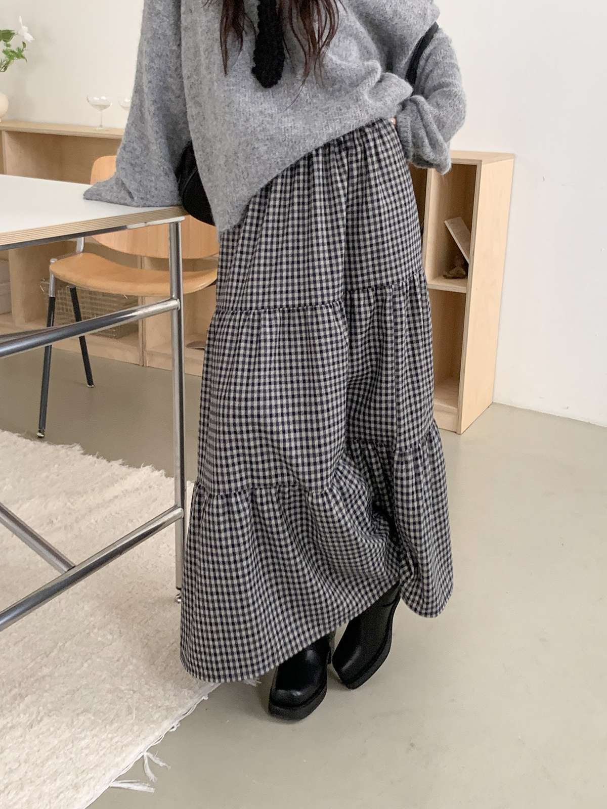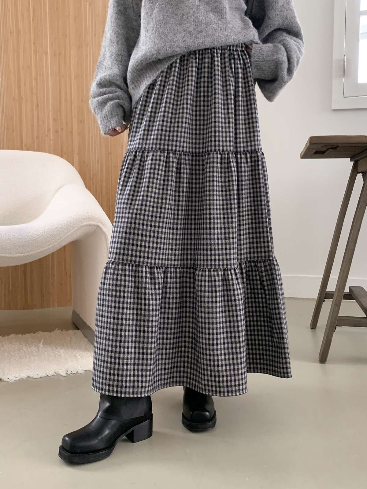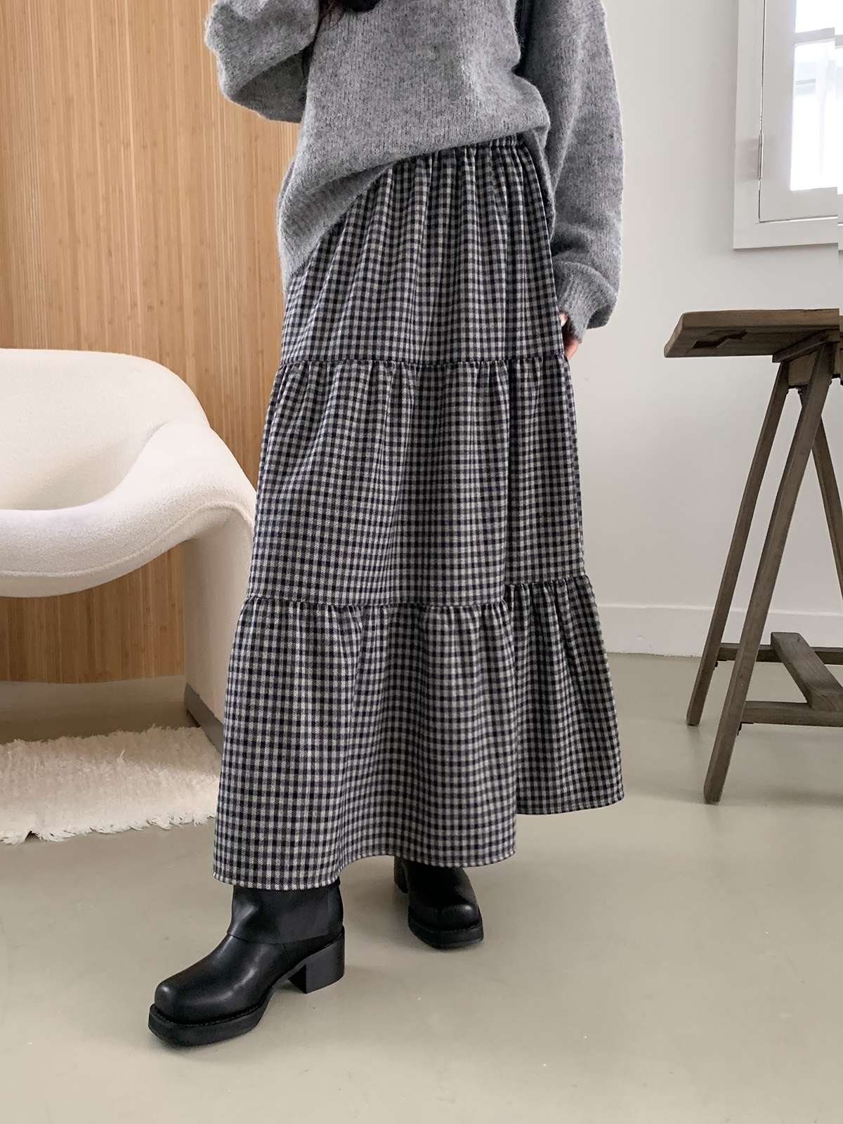 빈티지한 무드의 체크 패턴이 포인트인 데일리 롱 스커트
