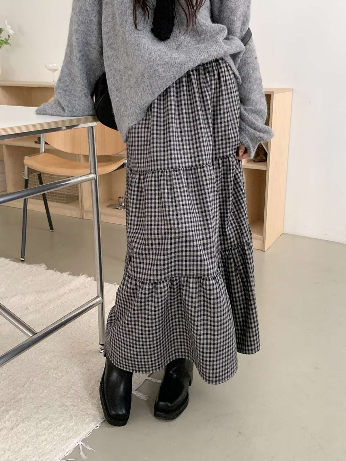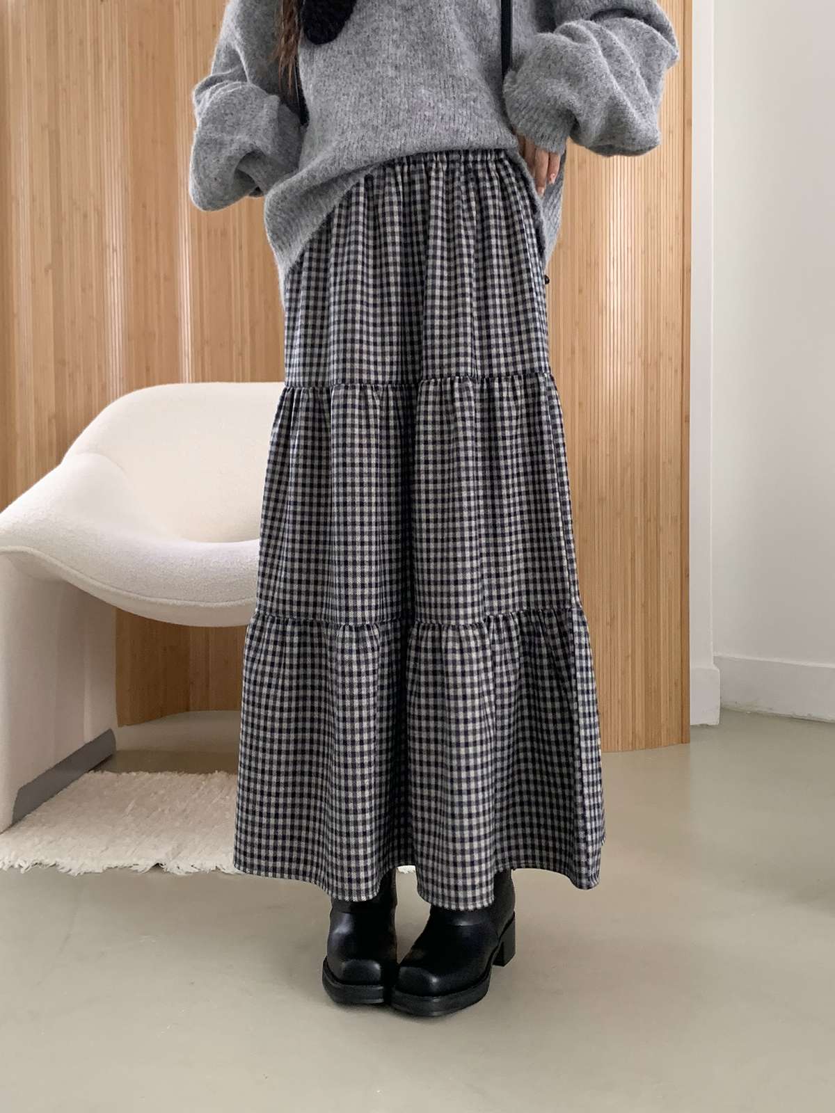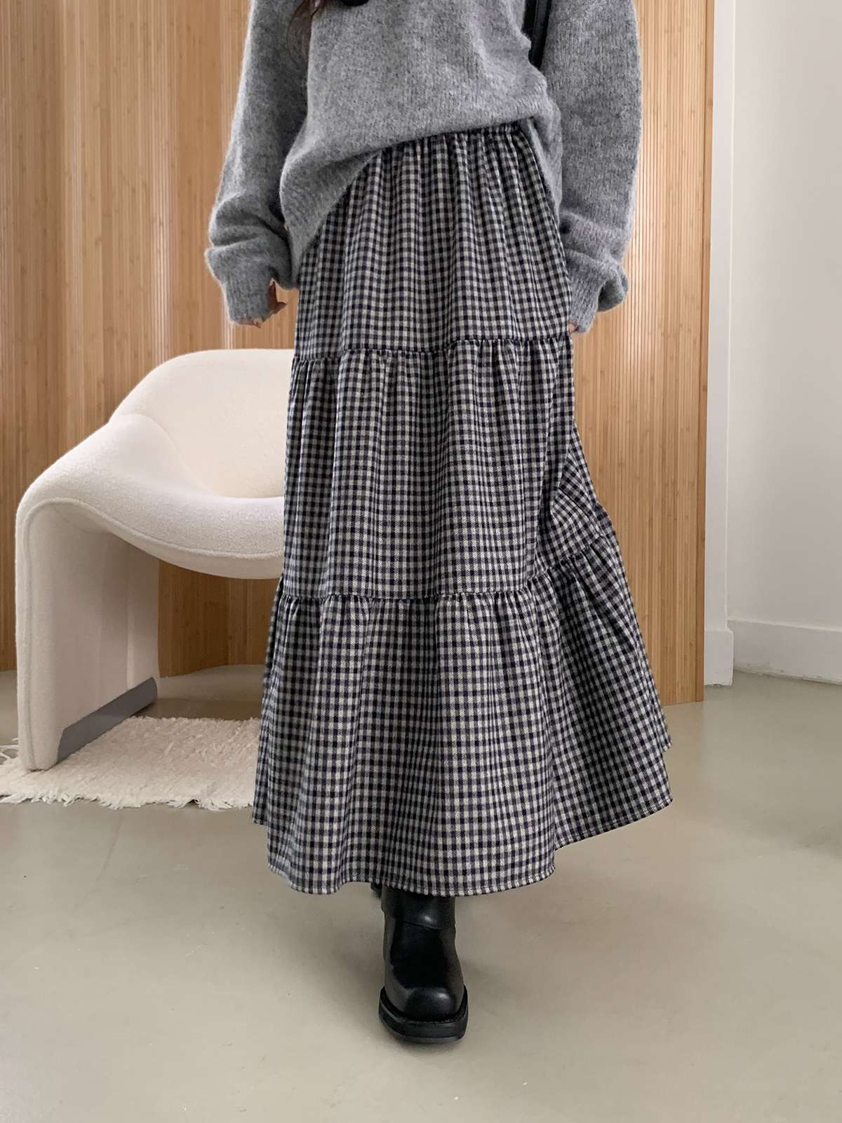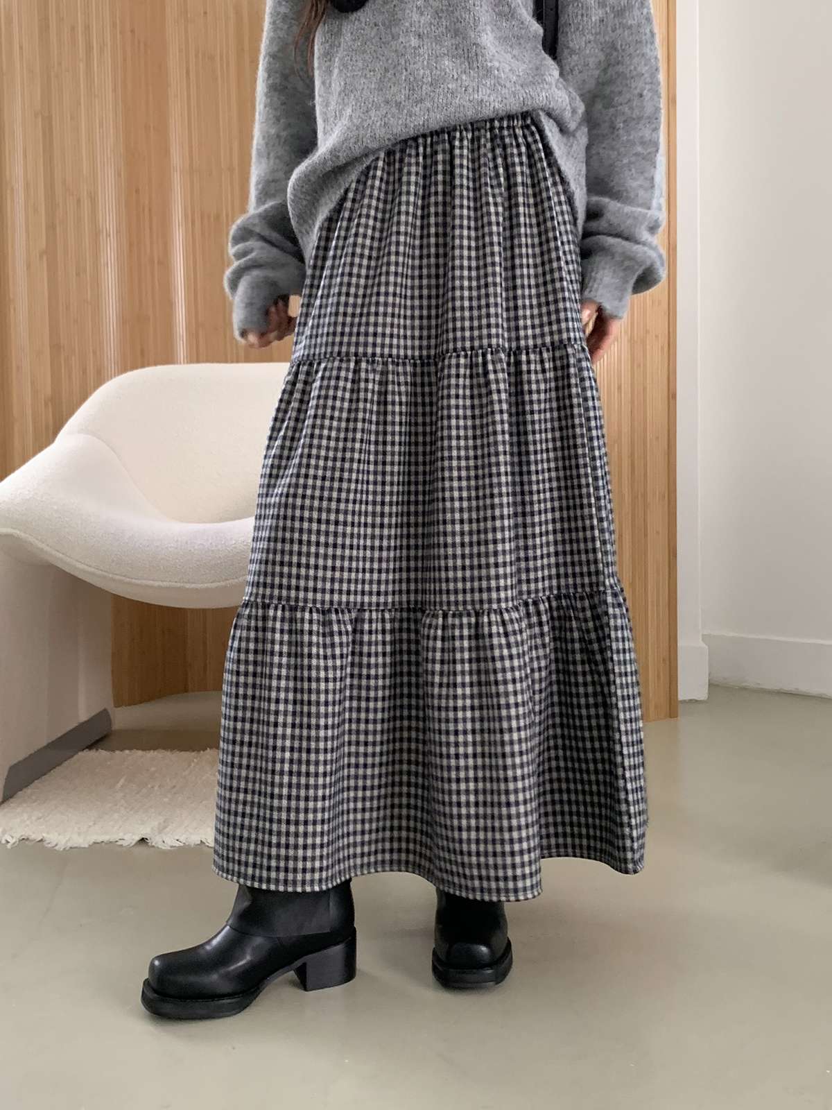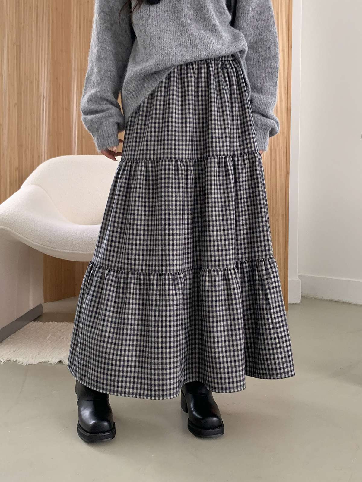 빈티지한 무드의 체크 패턴이 포인트인 데일리 롱 스커트