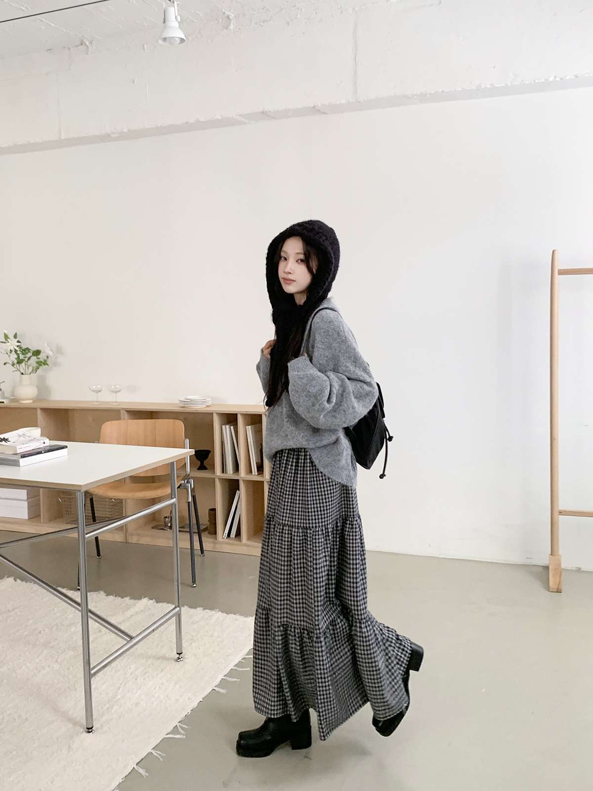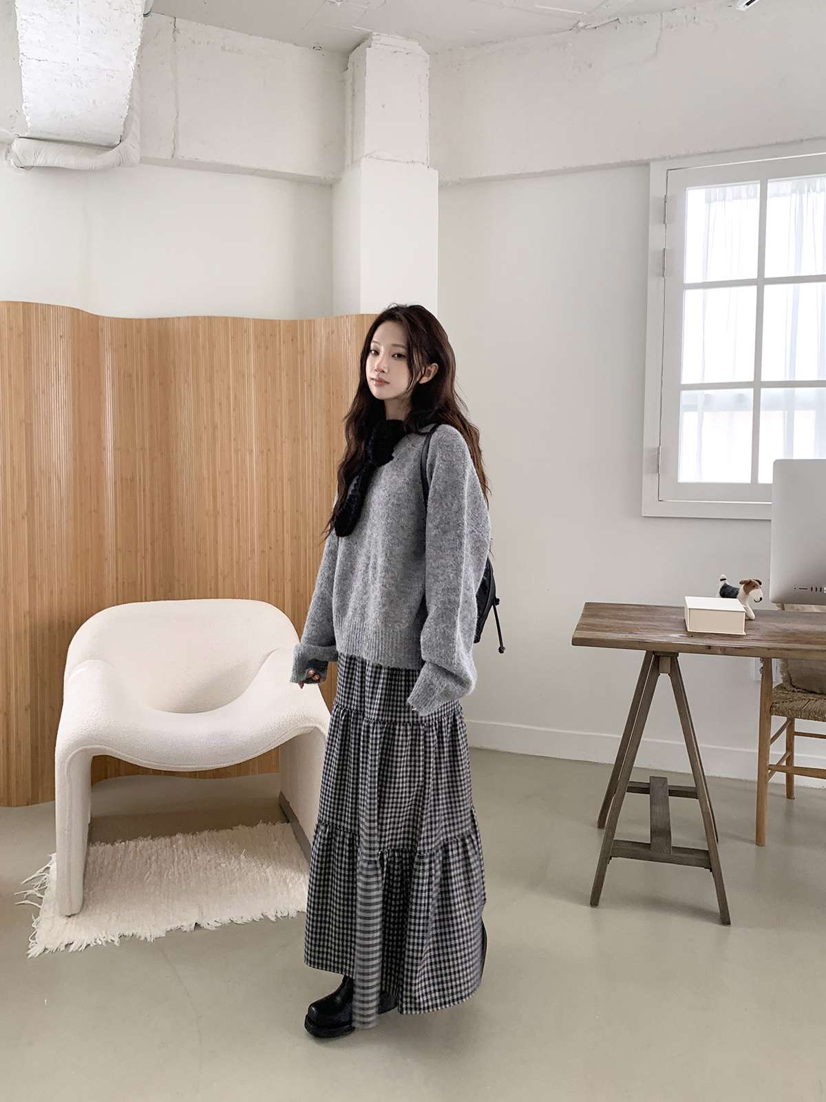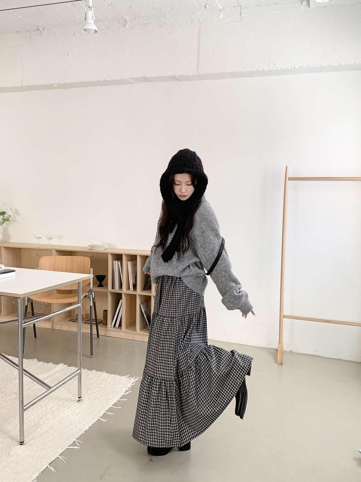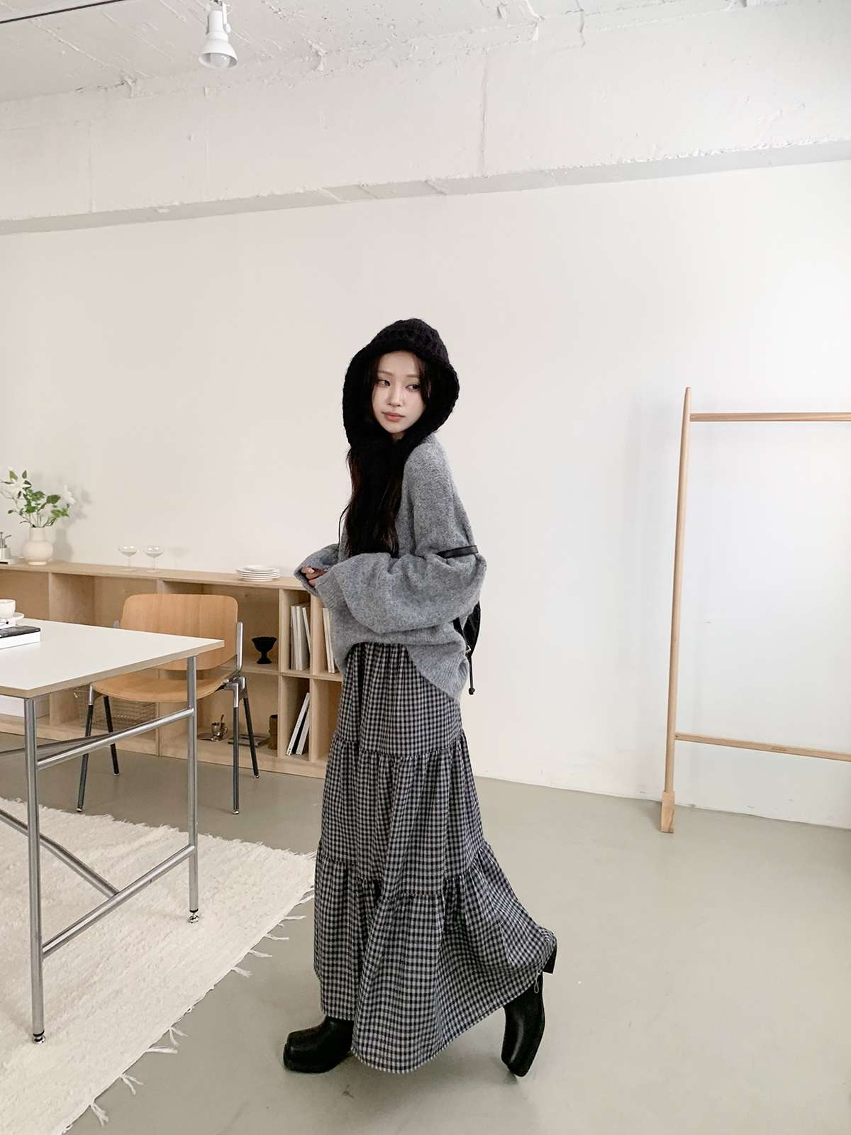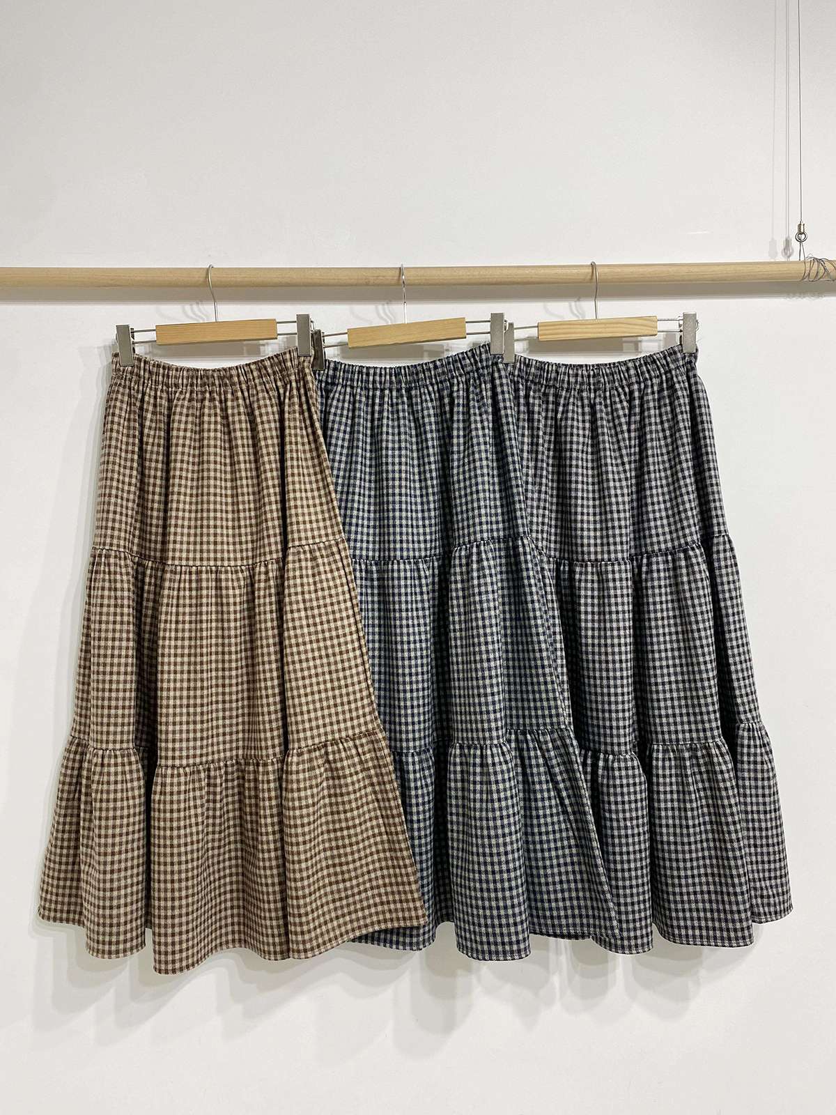 빈티지한 무드의 체크 패턴이 포인트인 데일리 롱 스커트