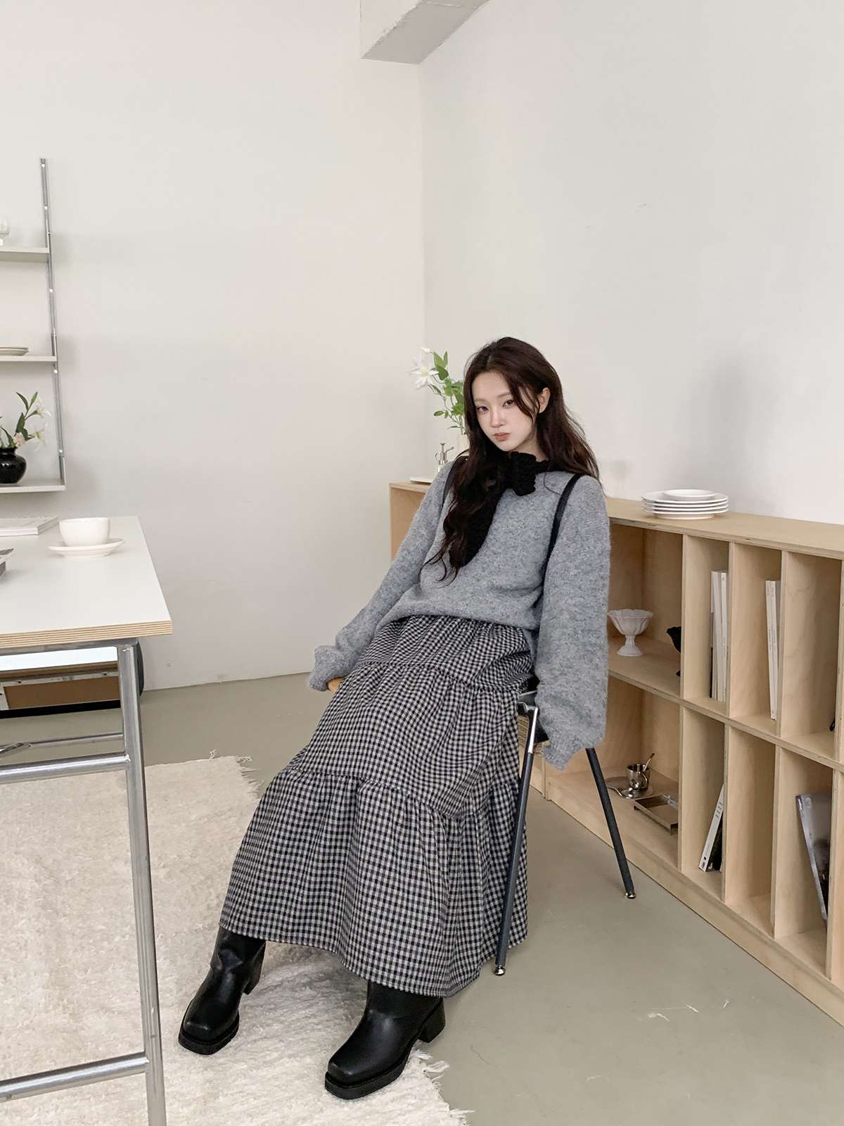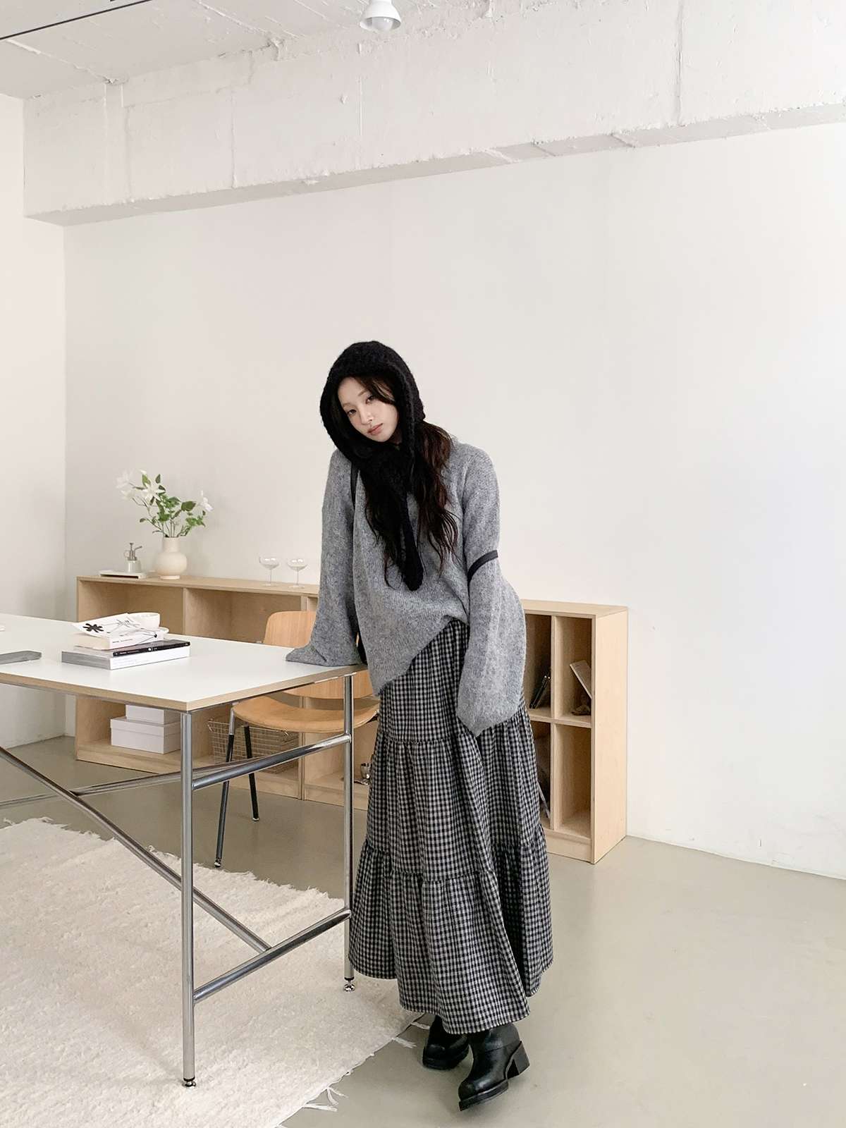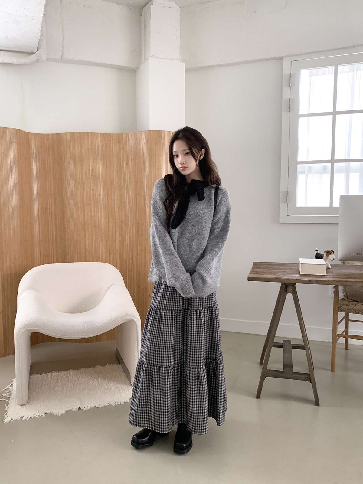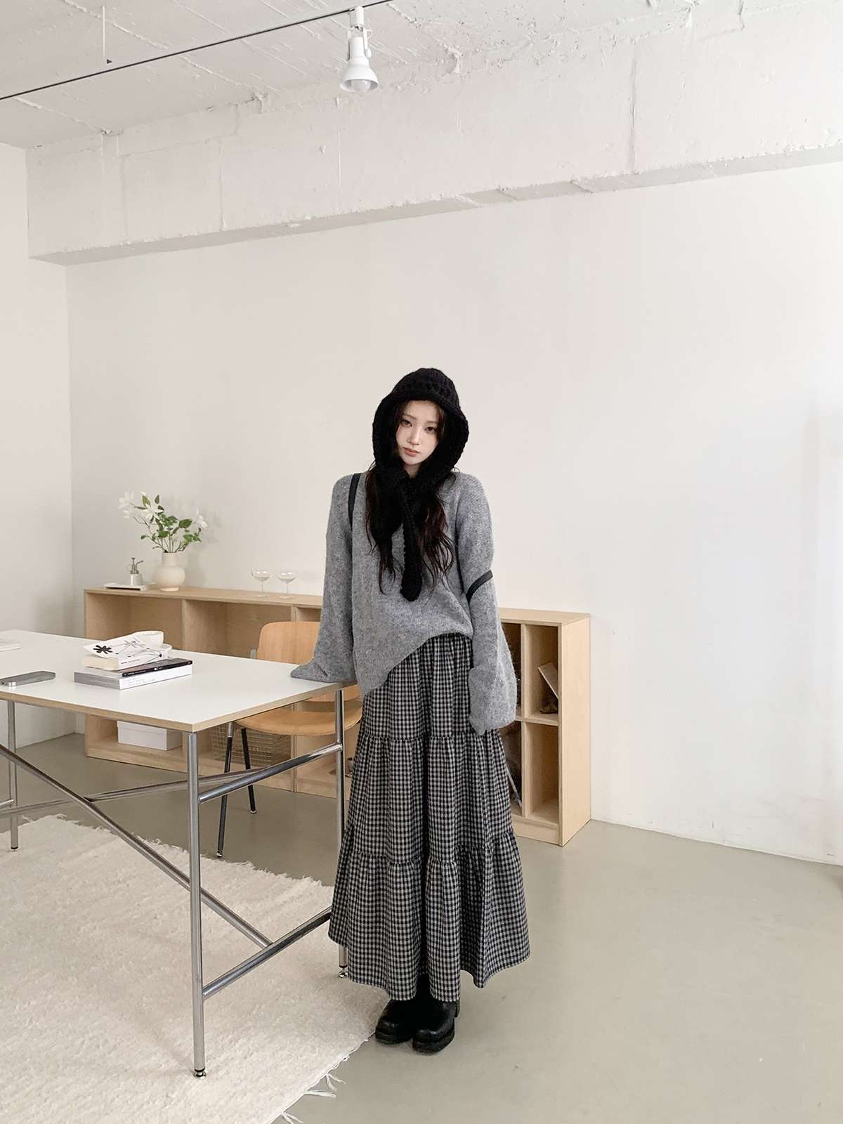 빈티지한 무드의 체크 패턴이 포인트인 데일리 롱 스커트