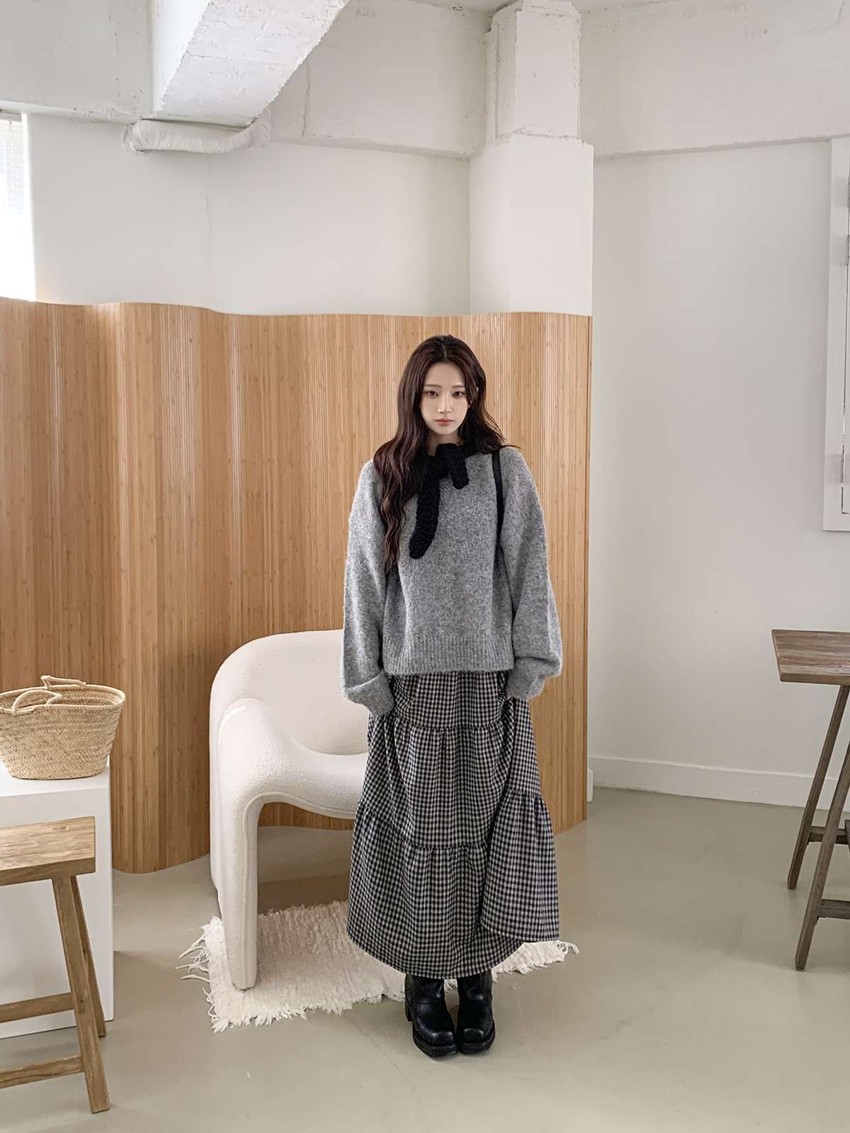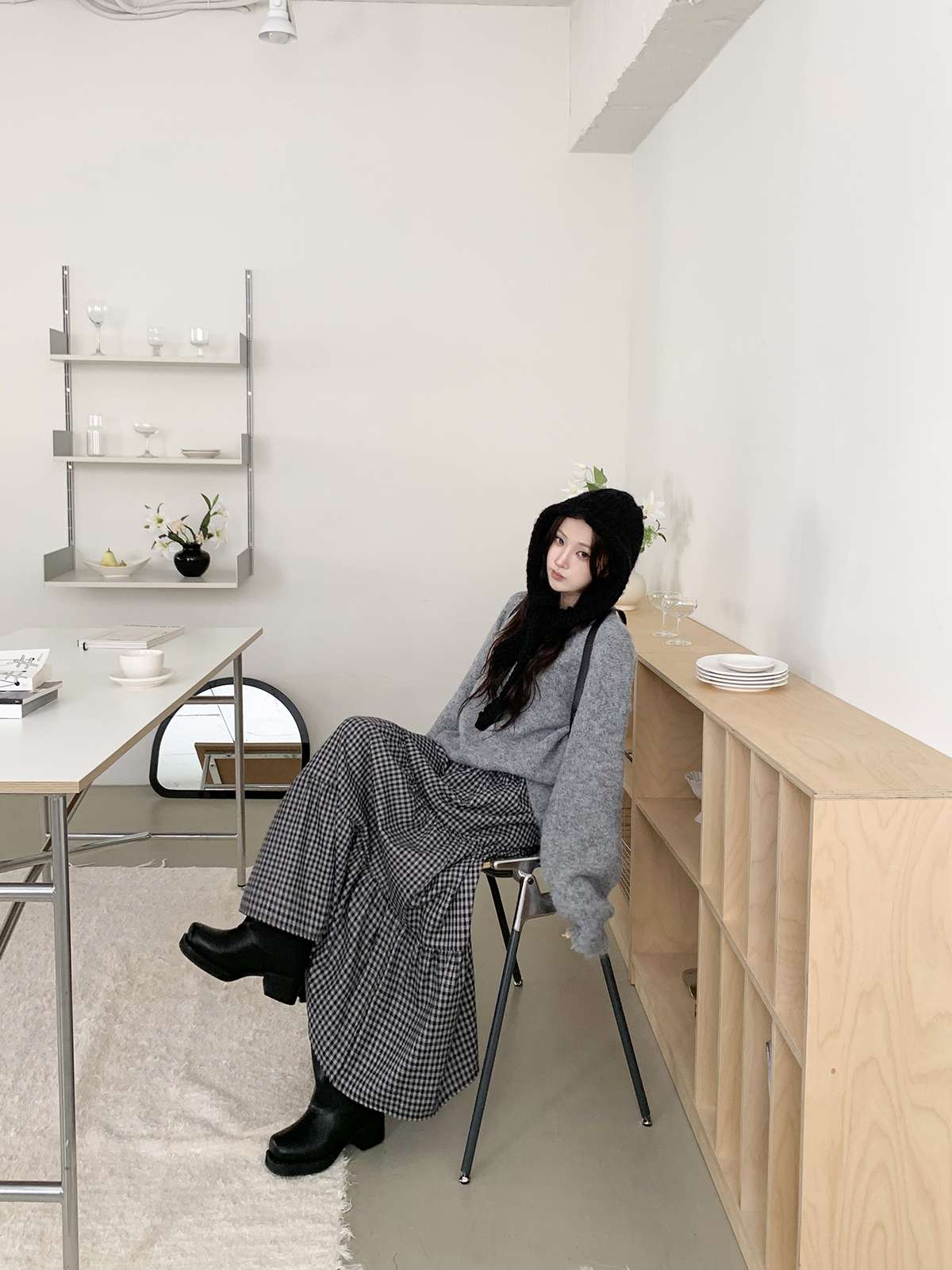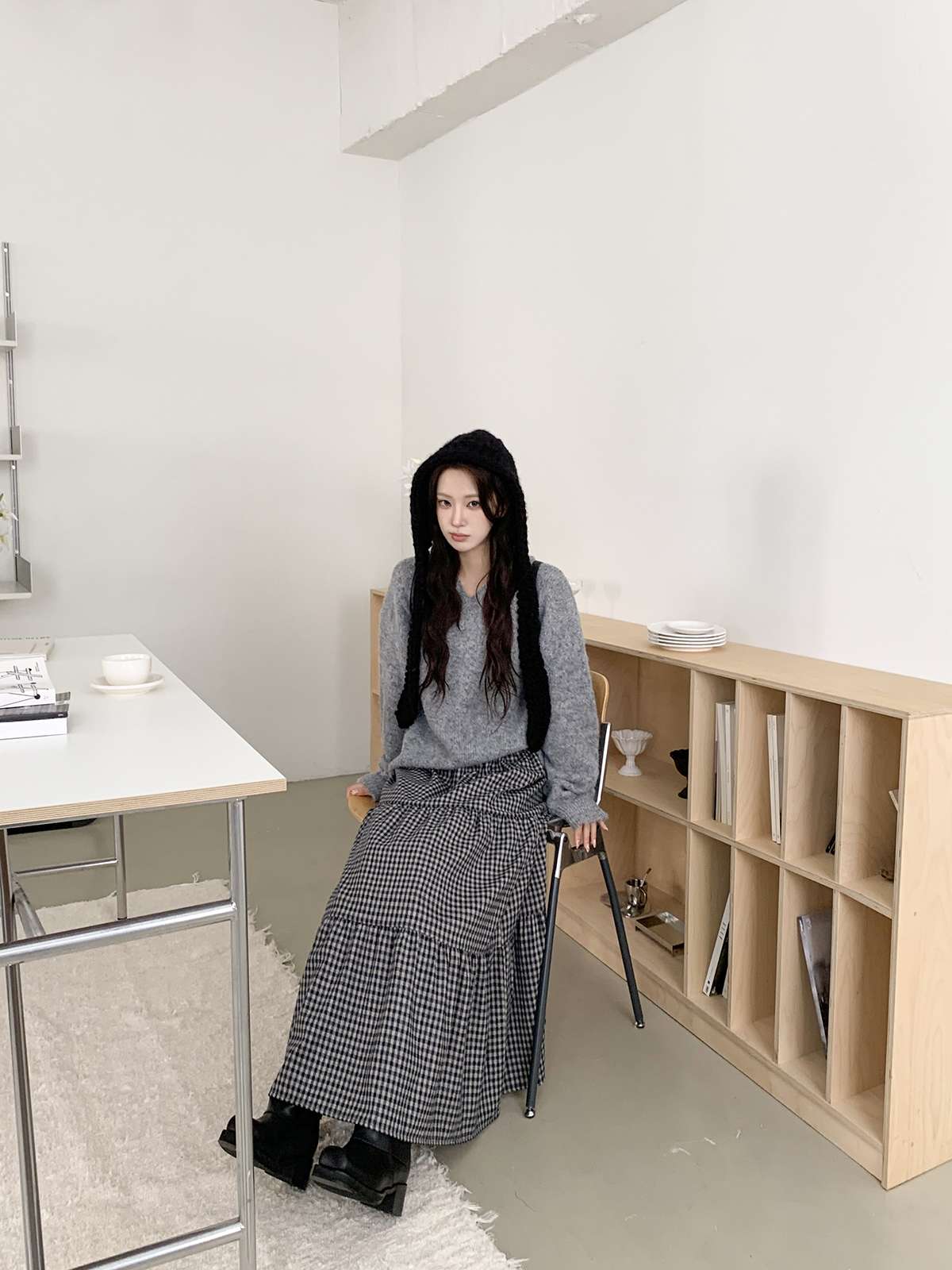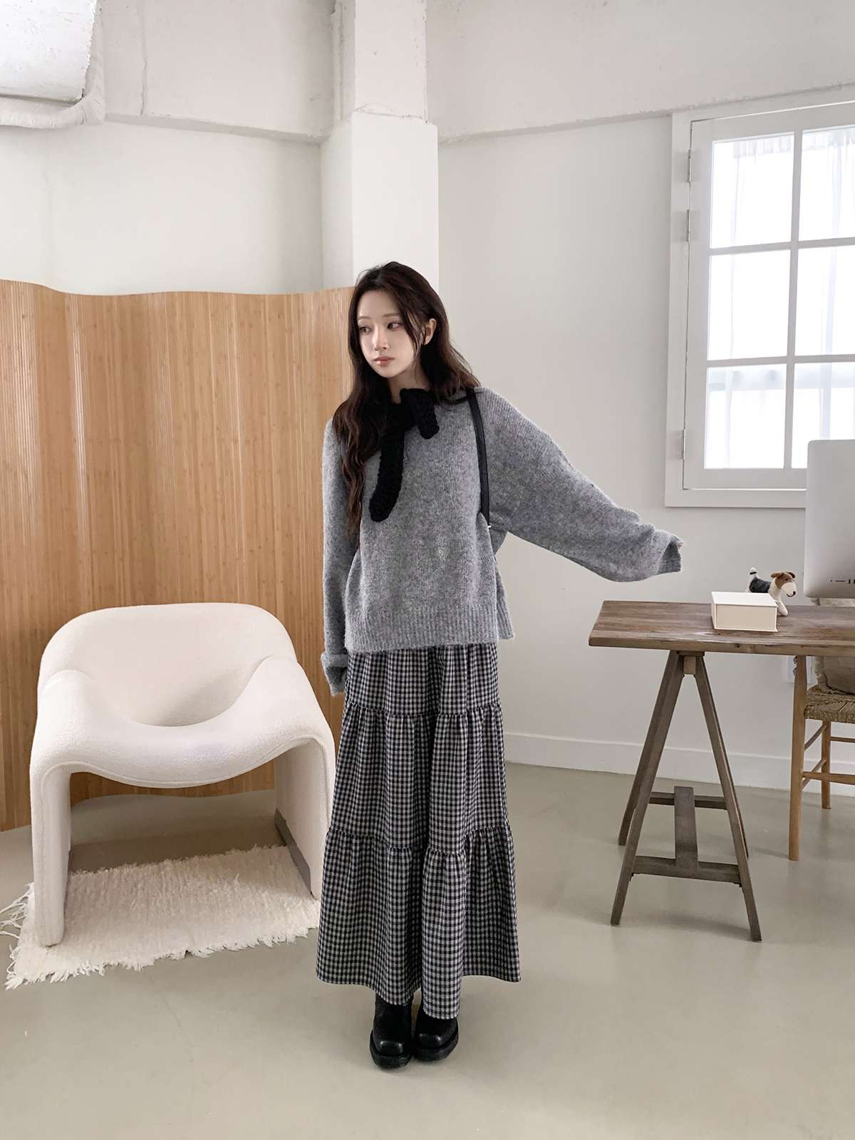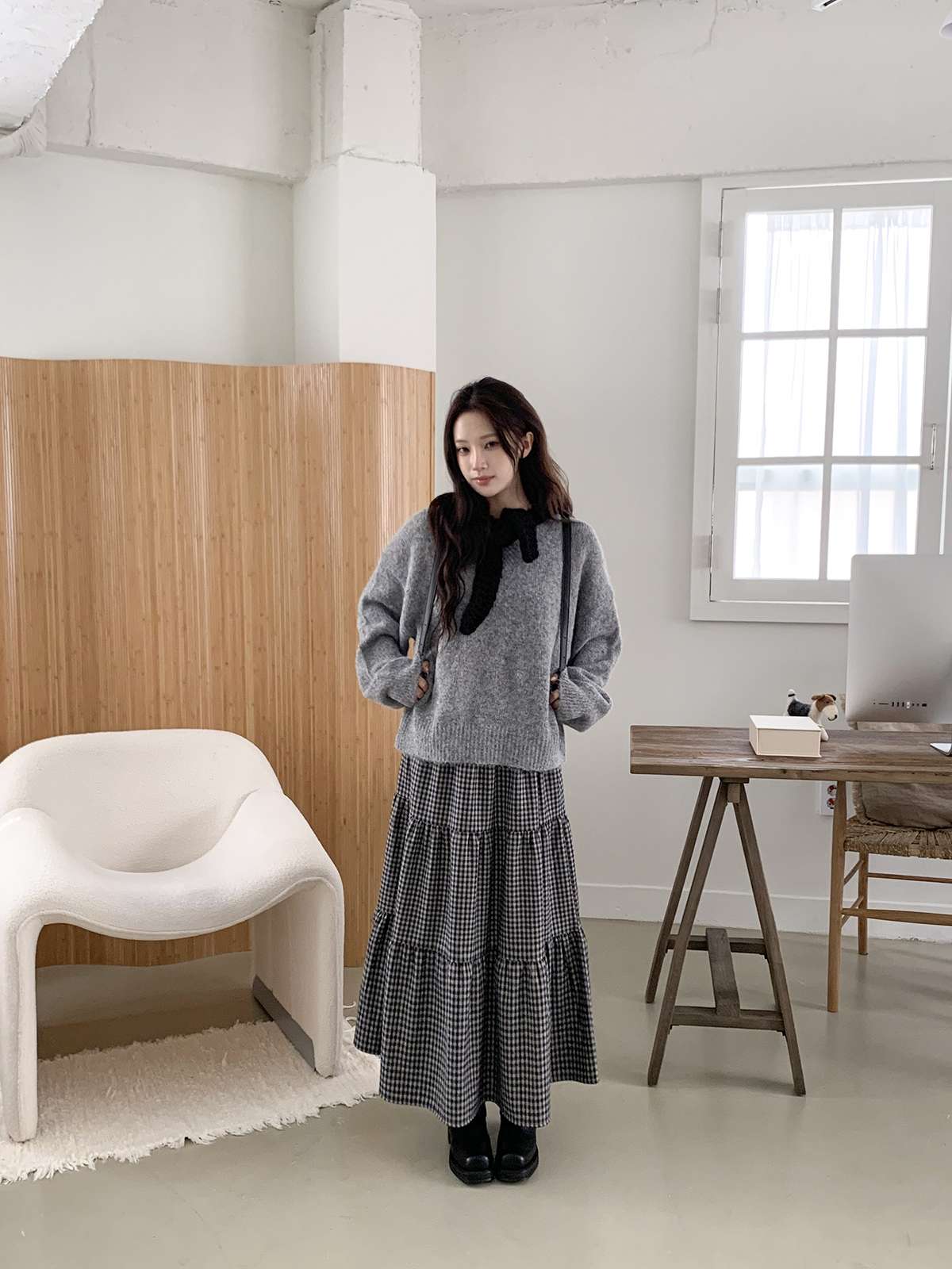 빈티지한 무드의 체크 패턴이 포인트인 데일리 롱 스커트