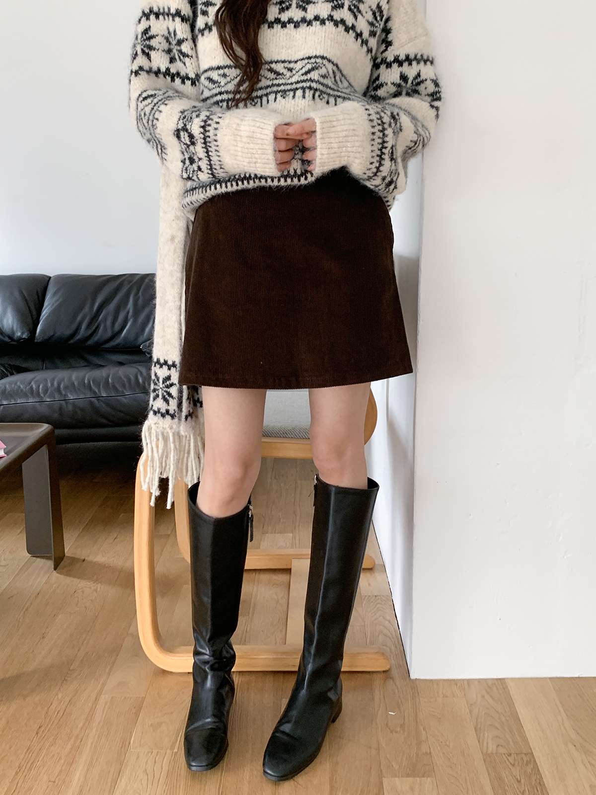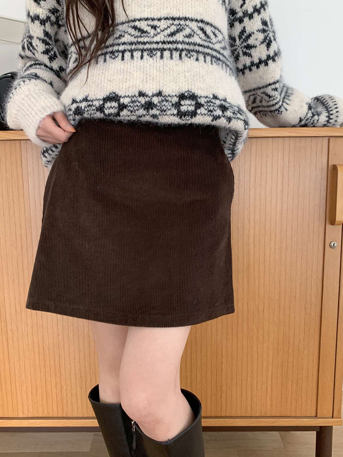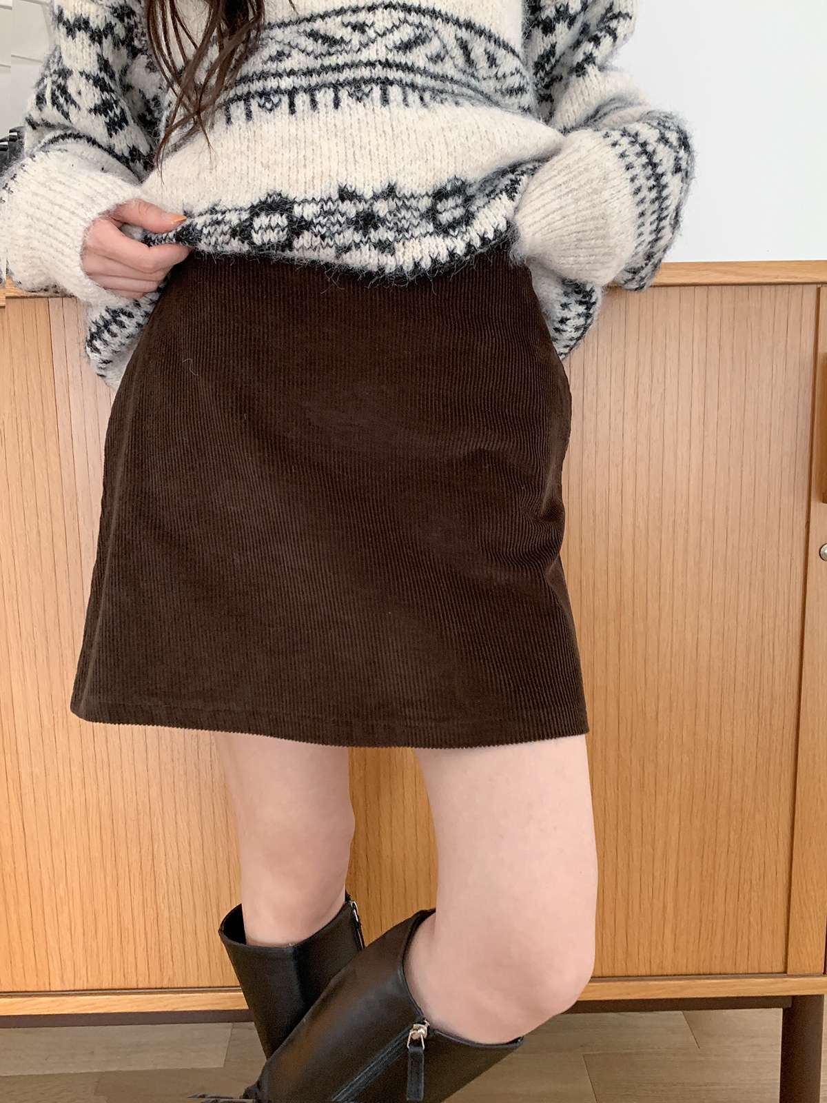 코듀로이 소재가 따뜻하고 포근한 느낌의 골덴 미니스커트