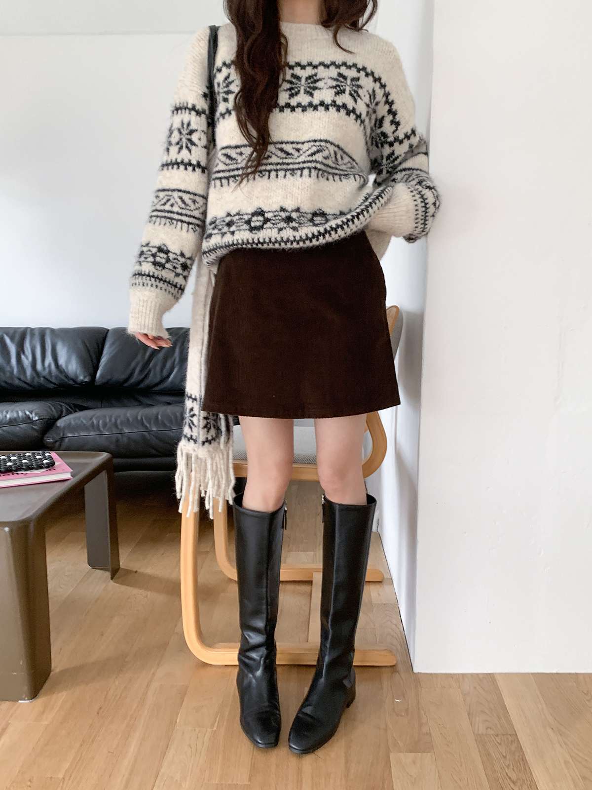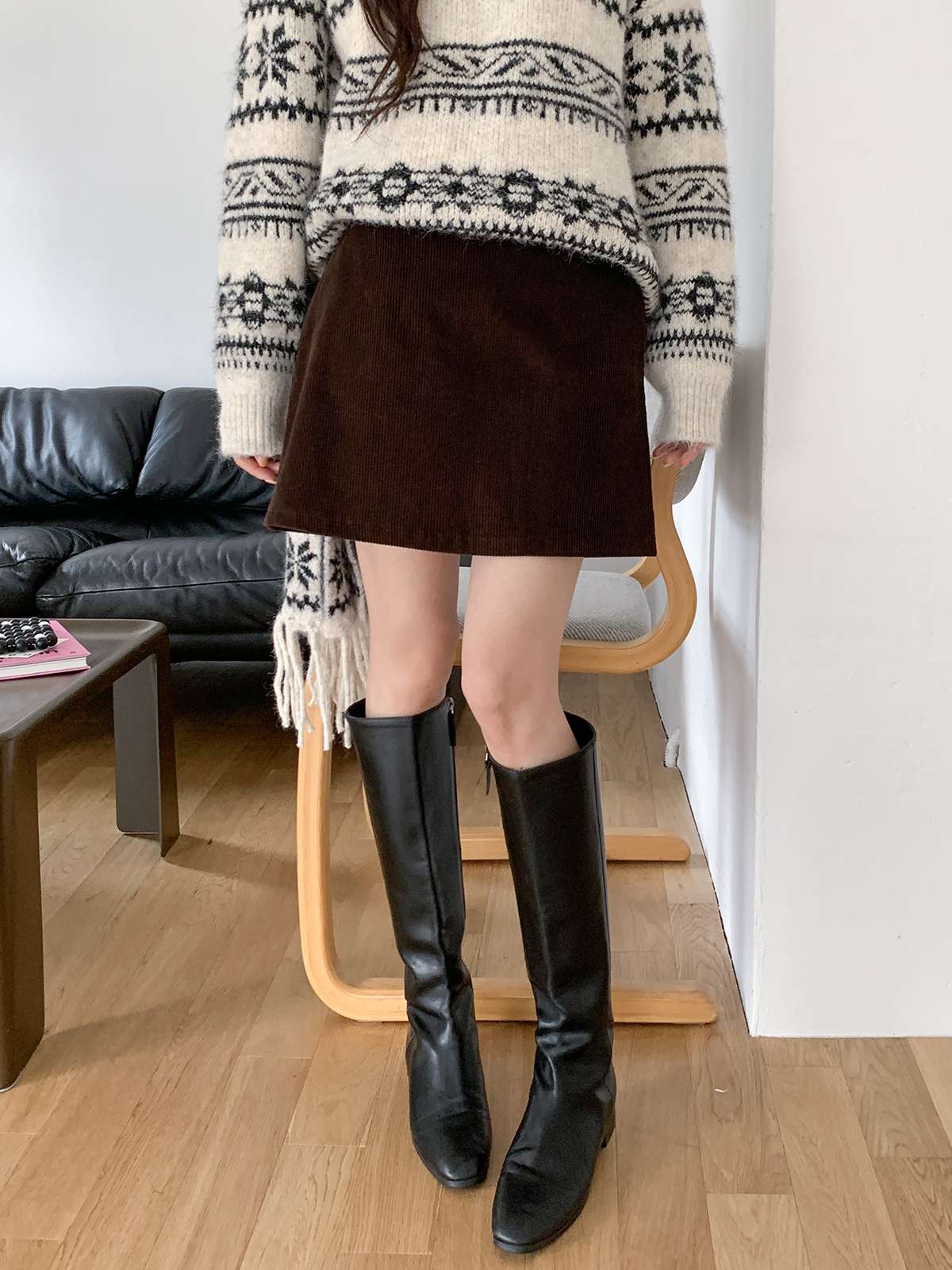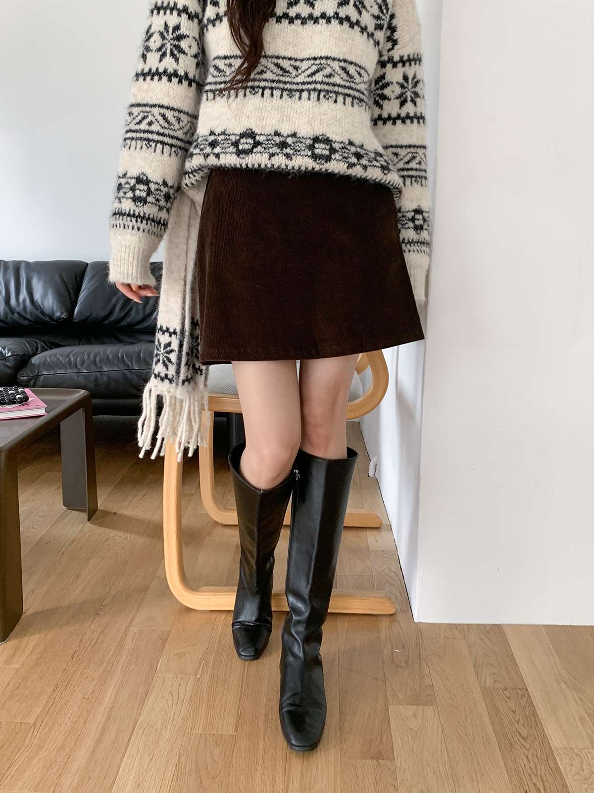 코듀로이 소재가 따뜻하고 포근한 느낌의 골덴 미니스커트