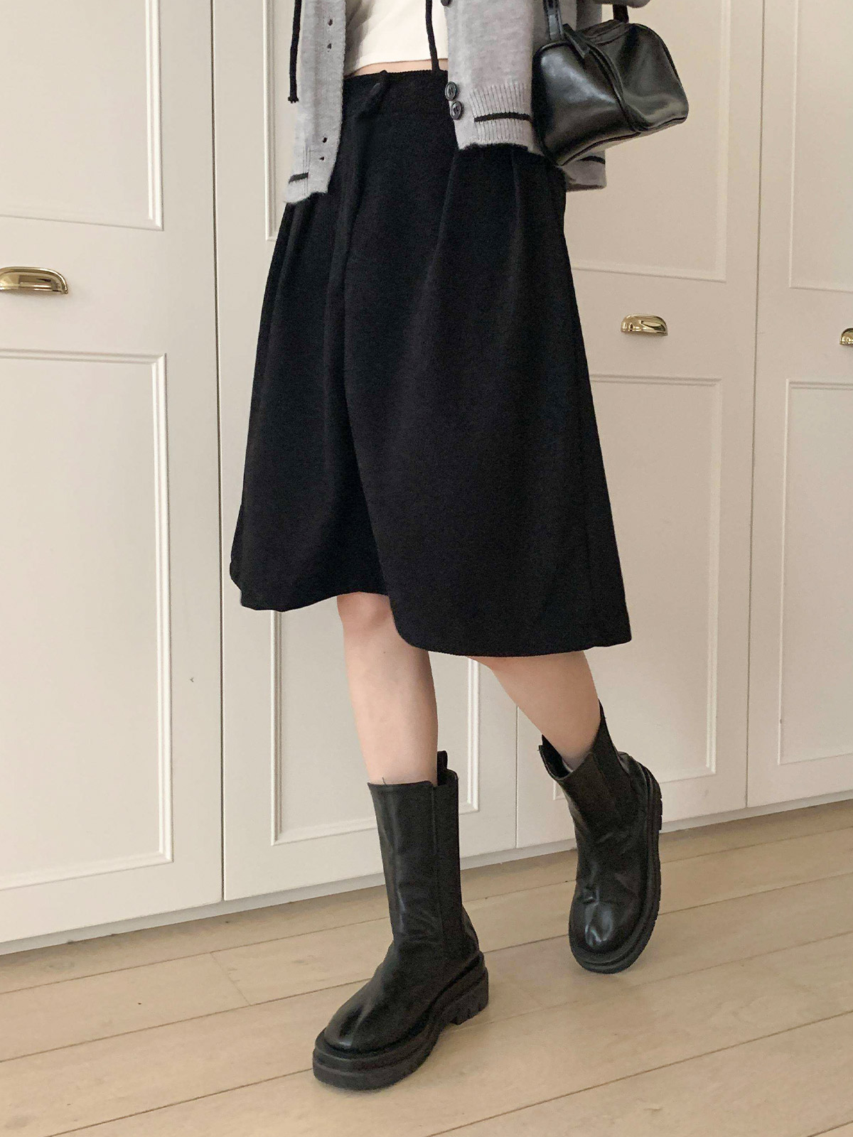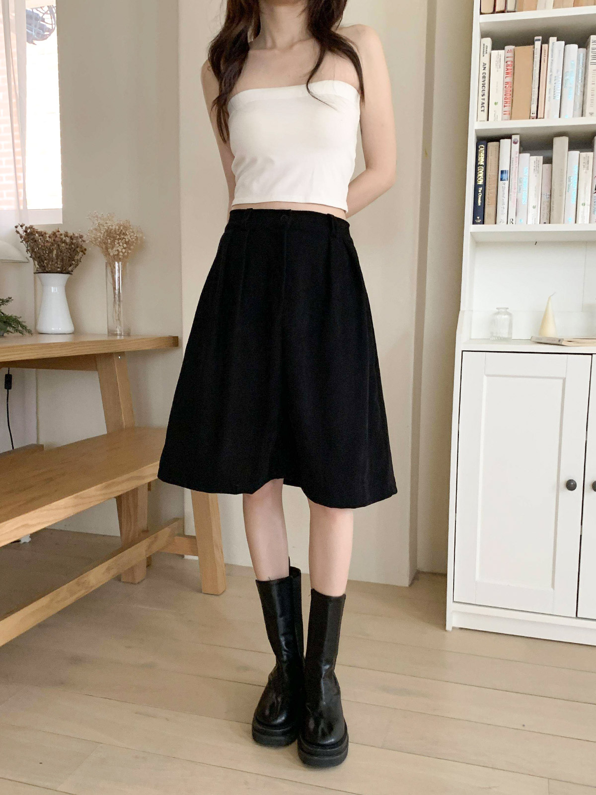 부드러운 밴딩 허리로 편안하게 착용되며 캐주얼하고 발랄한 미디 기장이