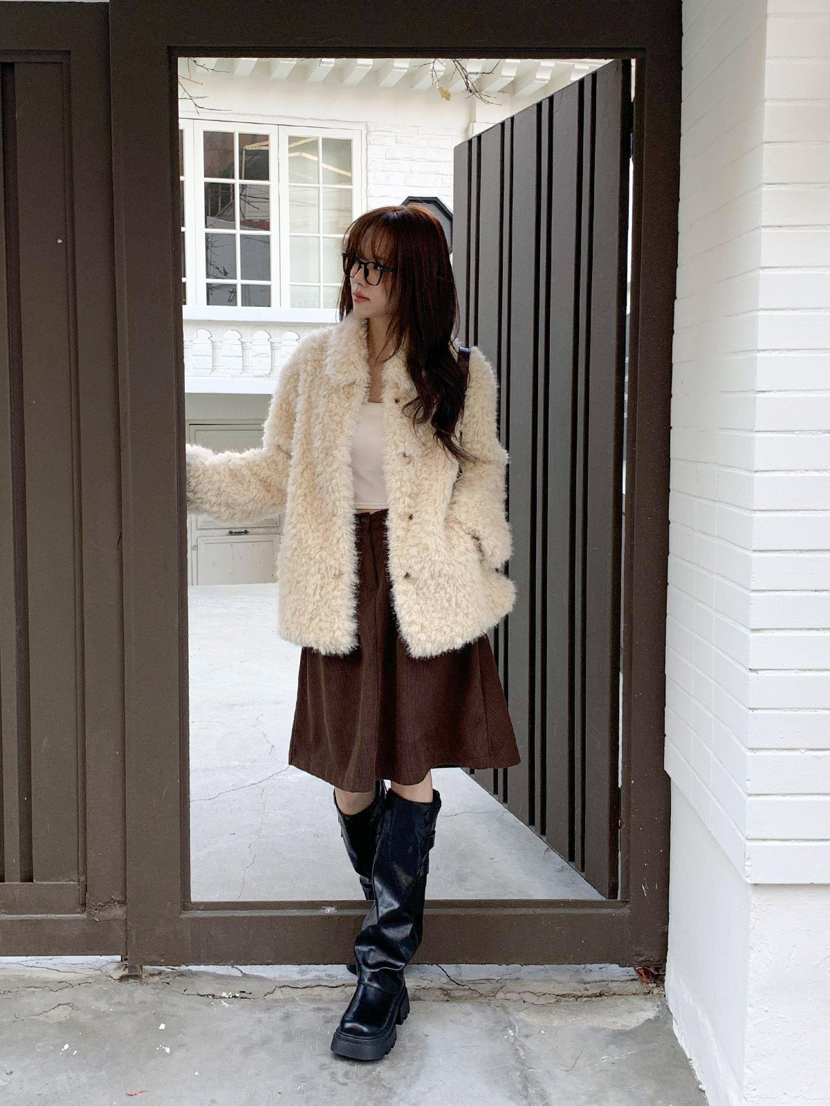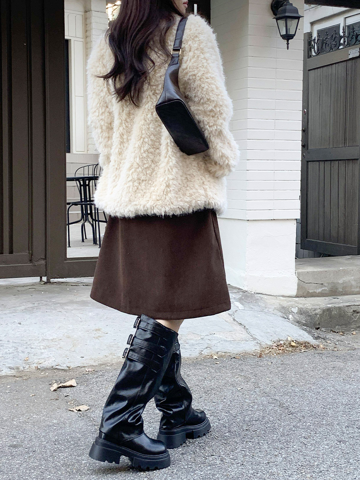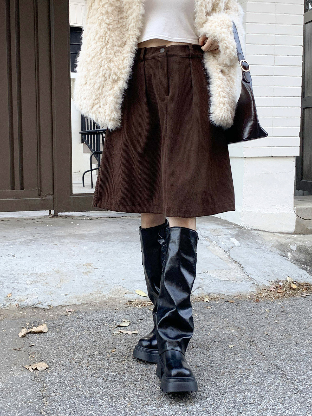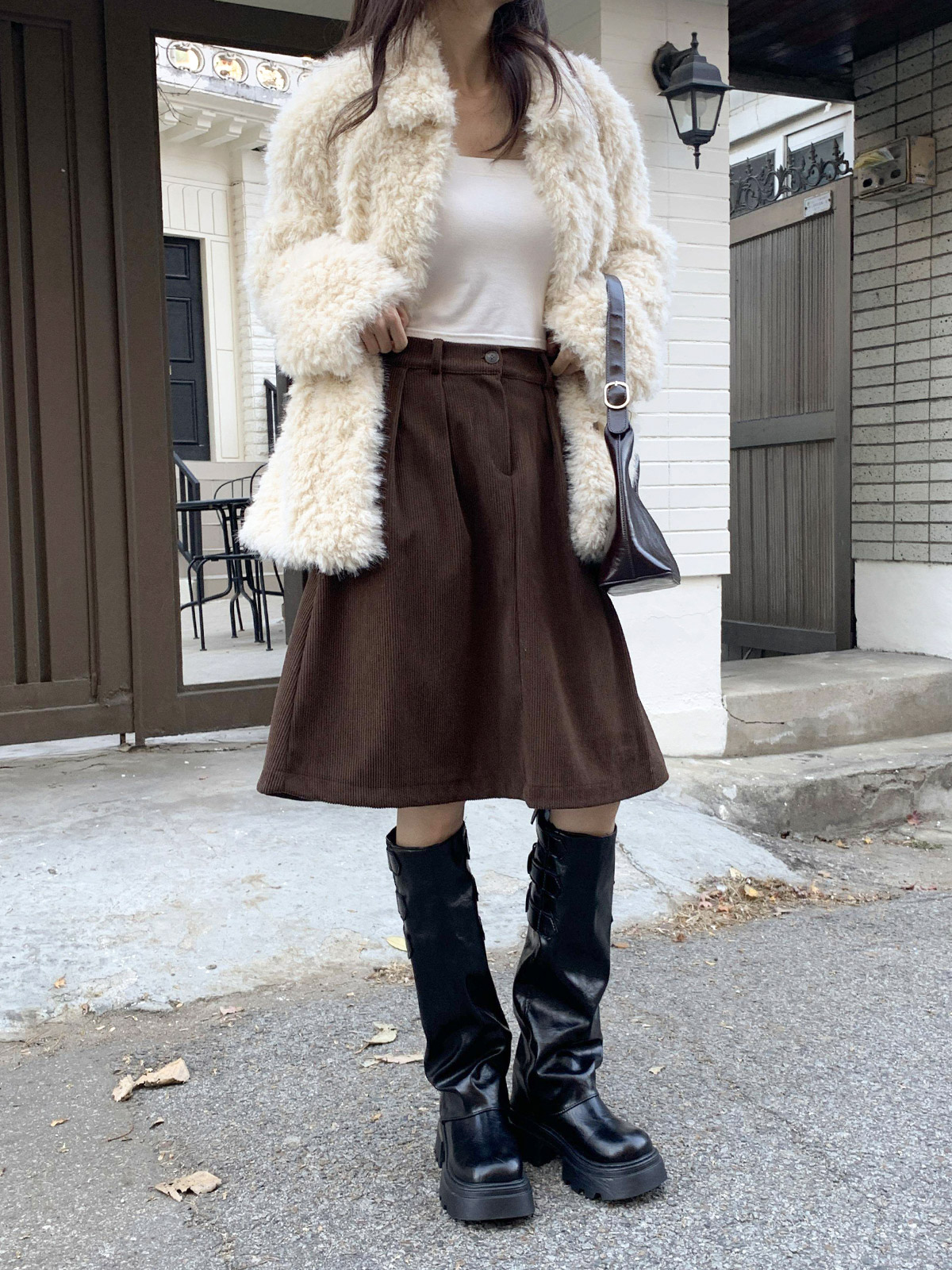 포근한 기모 안감과 코듀로이 텍스처가 겨울 감성을 고급스럽게 더해주는 스커트로