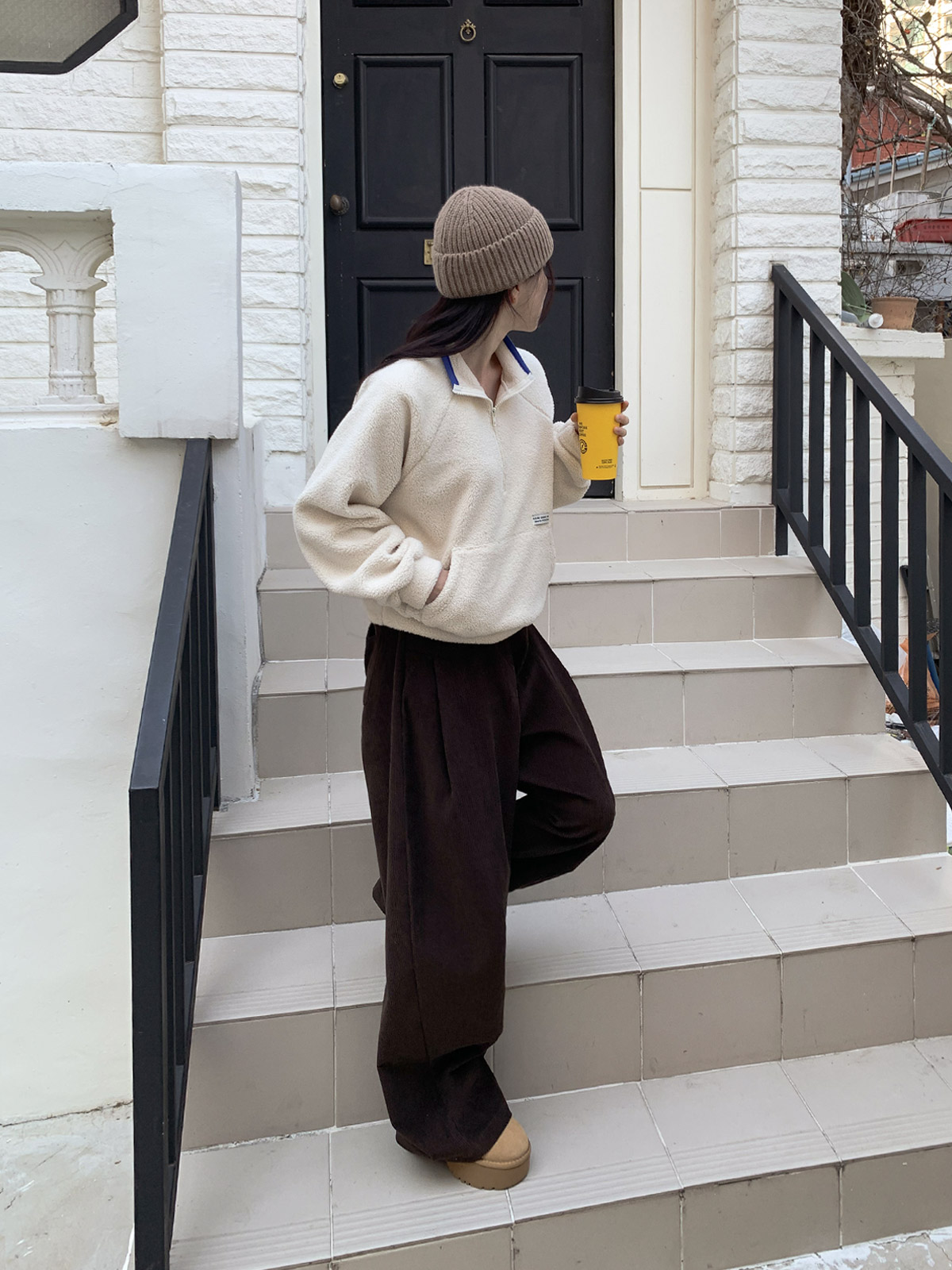 따뜻하고 부드러운 골덴 소재의 일자핏 팬츠