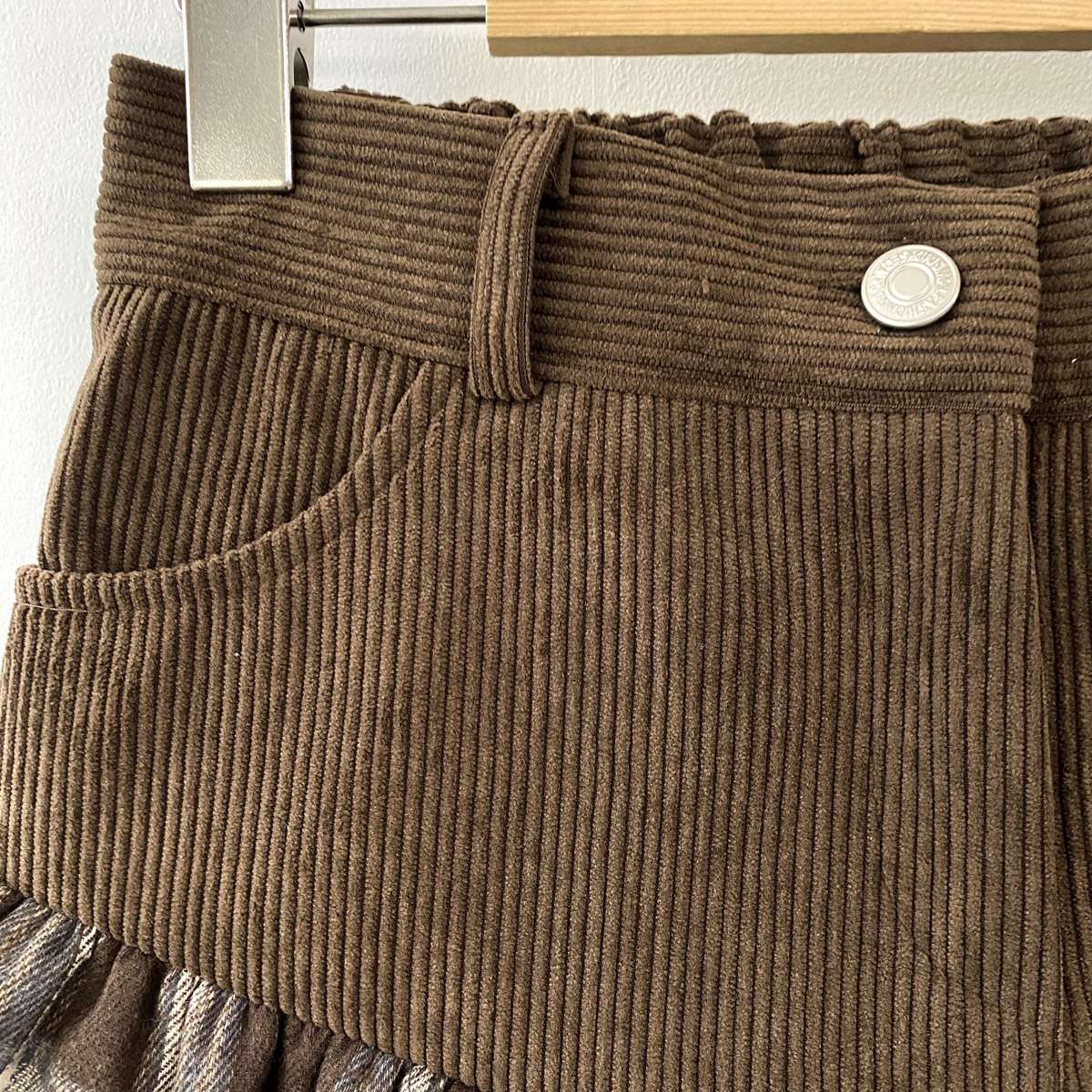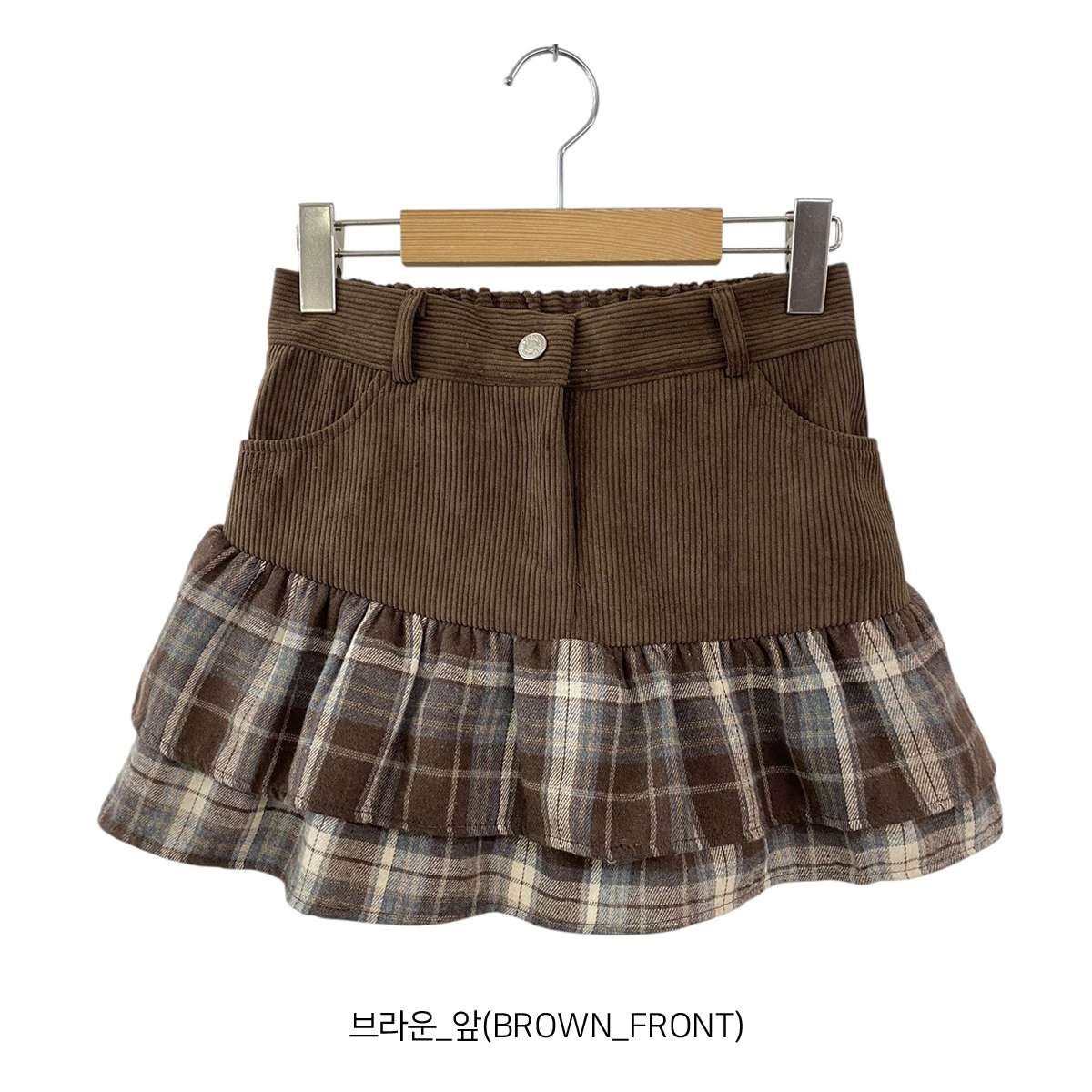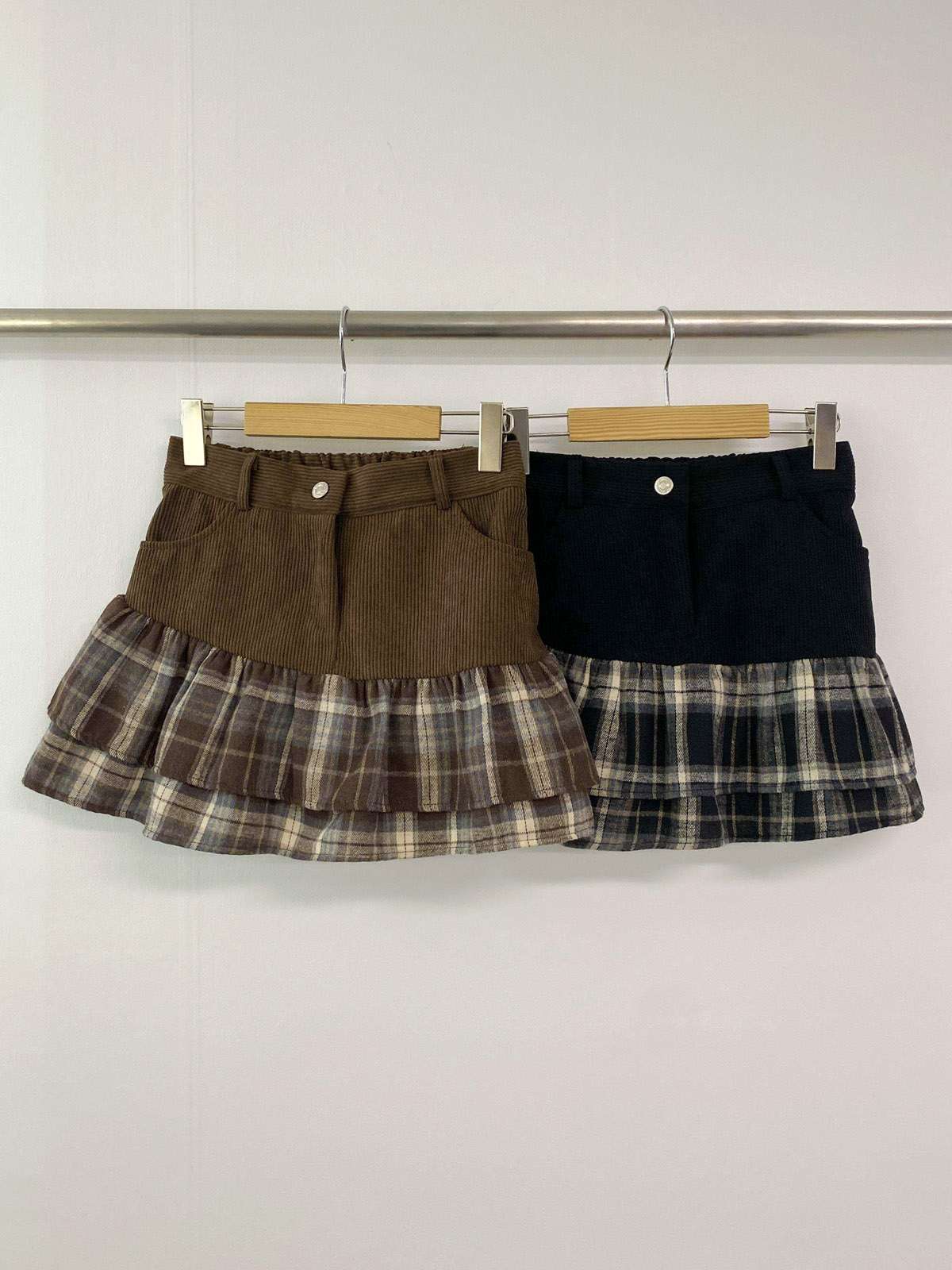 빈티지한 무드의 체크 밑단이 포인트인 코듀로이 미니스커트