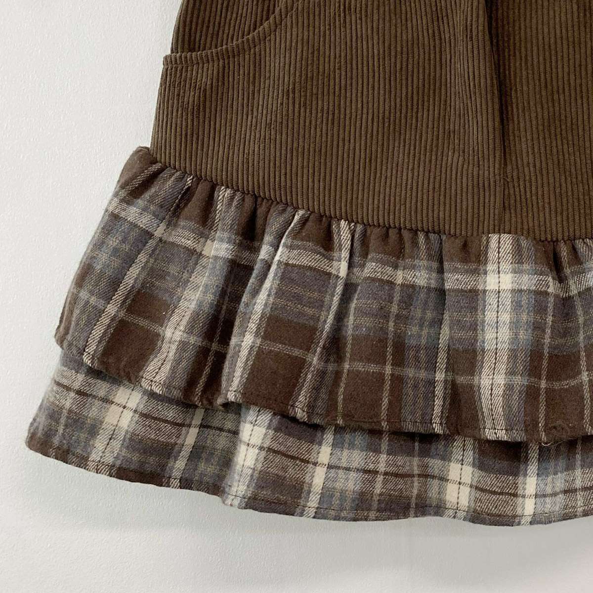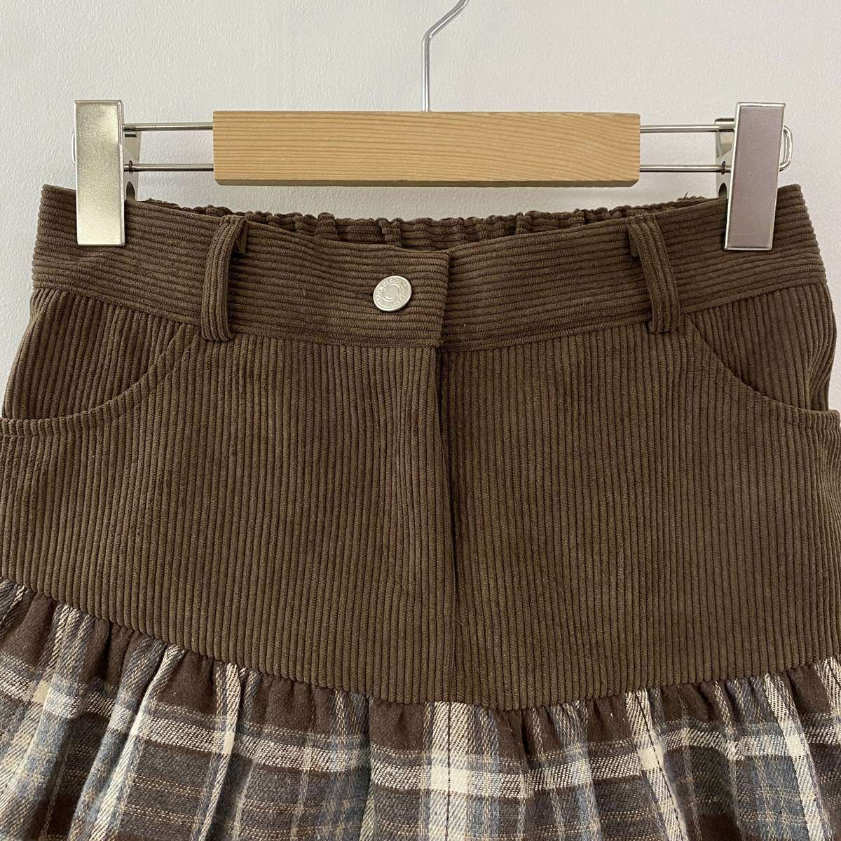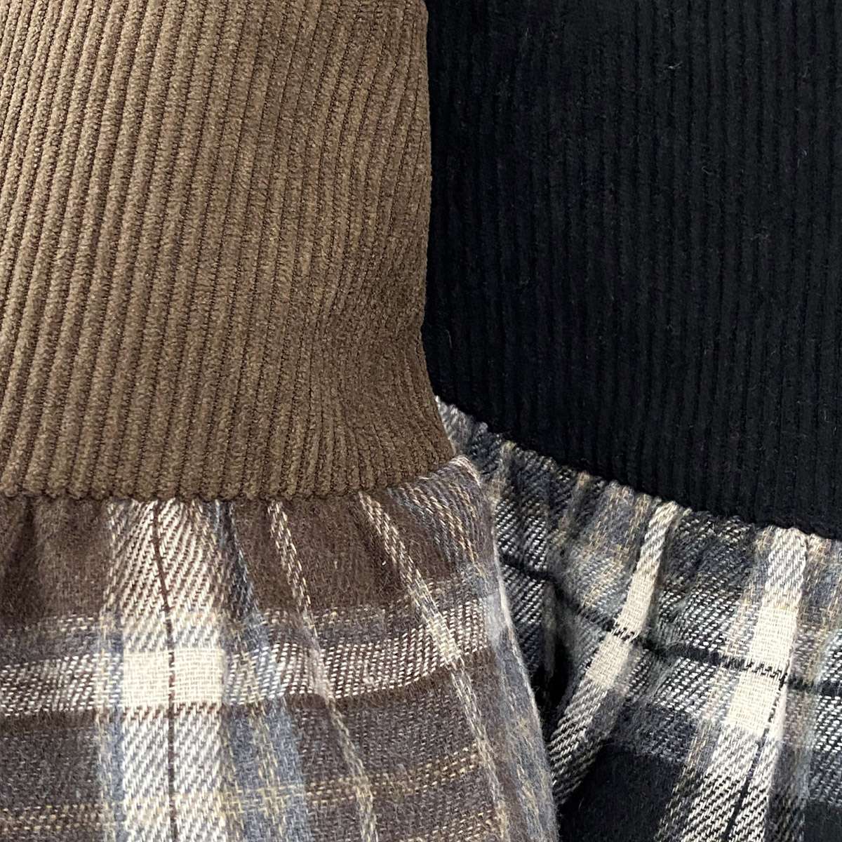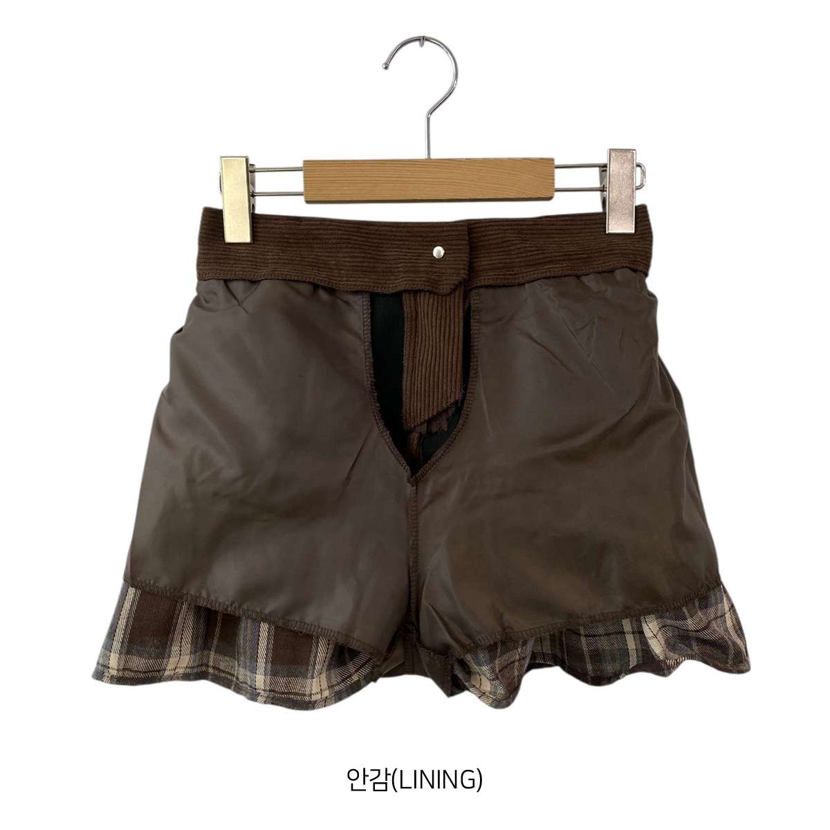 빈티지한 무드의 체크 밑단이 포인트인 코듀로이 미니스커트